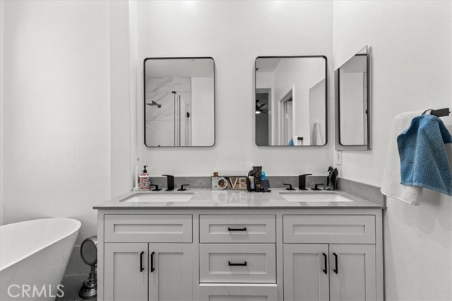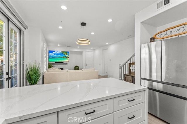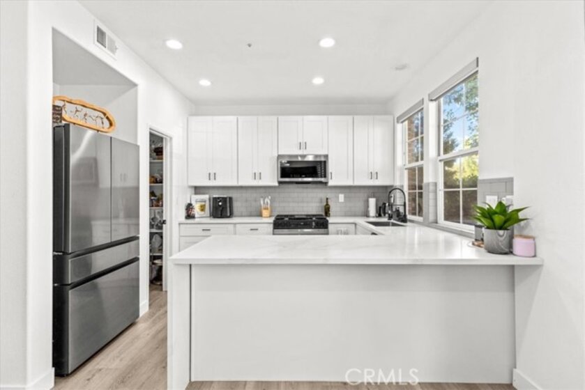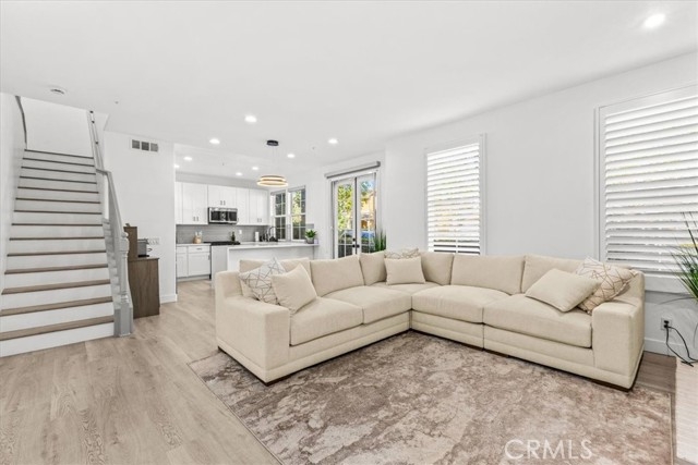 This beautifully updated end-unit is flooded with natural light, giving the whole home a warm and welcoming feel. The upgrades are endless—brand-new luxury vinyl flooring, sleek quartz countertops, all-new cabinets and vanities, and fresh hardware throughout. The kitchen is both stylish and functional with stainless steel appliances, a breakfast bar, and a cozy dining nook. French doors lead you out to a private patio with serene neighborhood views. On the main floor, you’ll find a spacious living area with a fireplace, an open kitchen, and a flex space that could easily be converted into a bedroom for guests or family. There’s also a half bath, making this level perfect for entertaining. Upstairs offers three bedrooms, a large bonus area, and a separate laundry room. The primary suite feels like a retreat with its walk-in closet, dual sinks, soaking tub, and separate shower. Location is everything—and here you’re just a short walk to Mercantile West Shopping Center and Town Square Park, the hub of Ladera Ranch. Grab a coffee, enjoy the farmers market, or catch one of the many community concerts and movie nights. Add in resort-style amenities like hiking trails, sport courts, dog park, pool, spa, picnic and BBQ areas, fire pit, and clubhouse, and you’ve got the perfect blend of convenience and lifestyle.