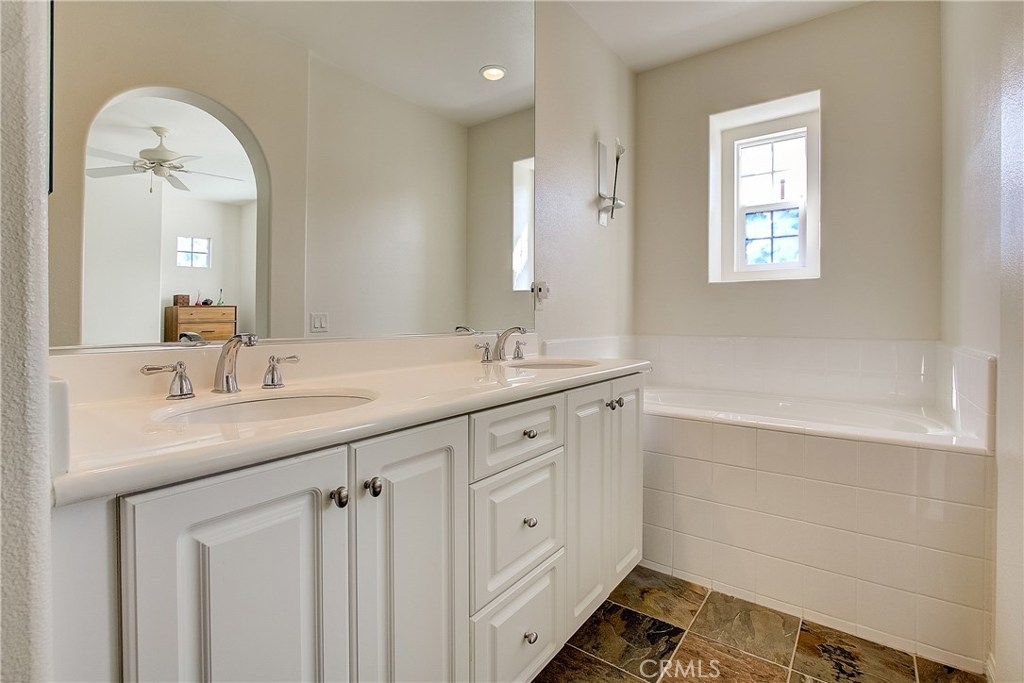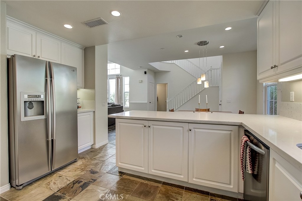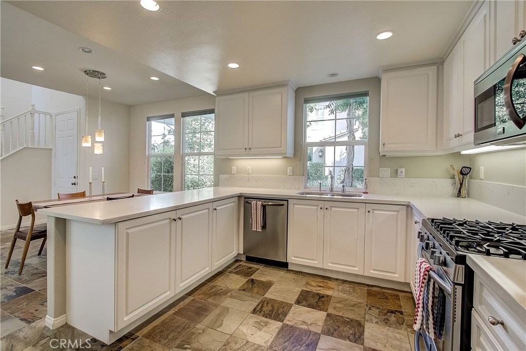 This upgraded townhome located in Atherton Glen in Ladera Ranch is ready for its new owners! Slate flooring, newer paint and vaulted ceilings compliment the bright and open floor plan. The kitchen features fresh white cabinets, large view window, and breakfast bar w seating, and separate eating area. The living room flows seamlessly from the kitchen and features light-catching windows and cozy stone fireplace. The master suite features plush carpet, ceiling fan, ample closet space and an en-suite bathroom with dual sinks and soaking tub. The secondary bedroom is a generous size with private balcony and en-suite bathroom. Convenient indoor laundry room and two car attached garage makes for easy living. Relax on the private patio with room for entertaining. In addition this home has a new water heater and PEX Piping. Enjoy the resort-like amenities of Ladera Ranch which includes high-speed internet, 15 pools, splash parks, a skate park, community garden, clubhouses and hiking and biking trails. Also enjoy concerts in the park, parades, 4th of July fireworks, a spring fair, family campout, holiday tree lightings, and a secure dog park.