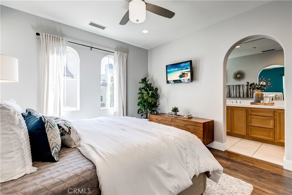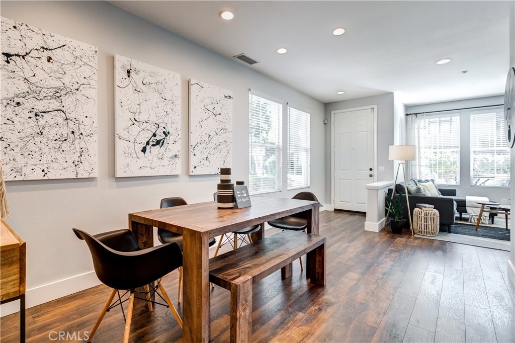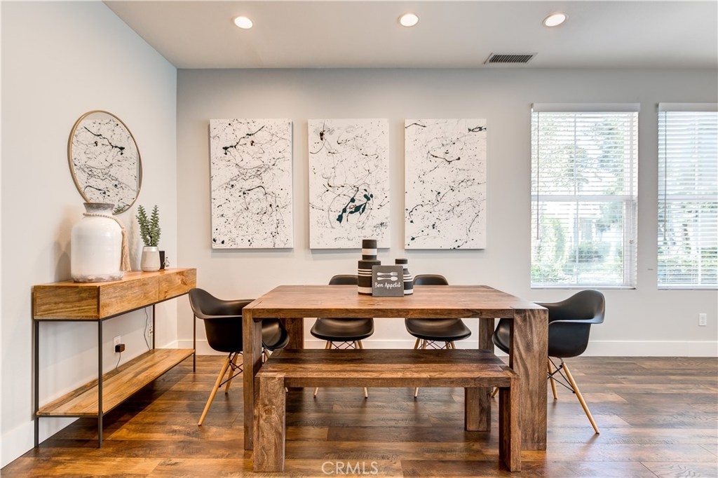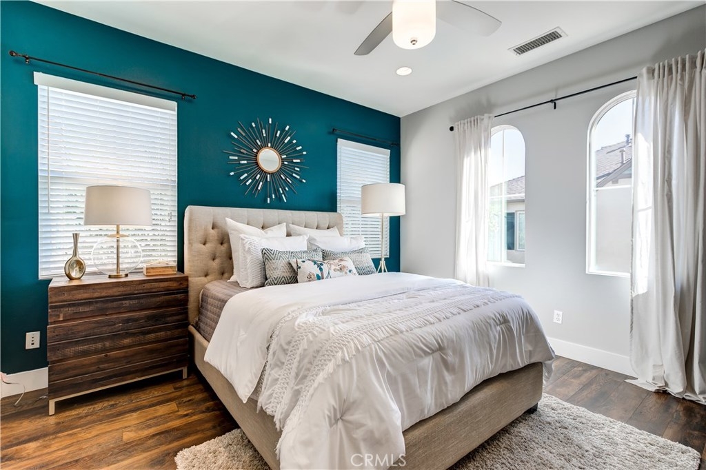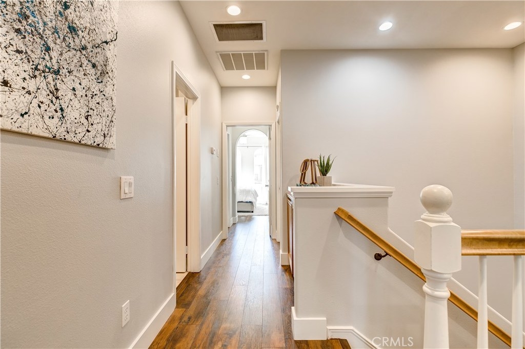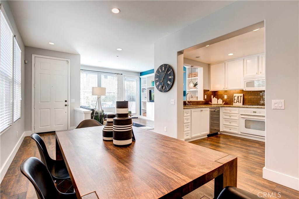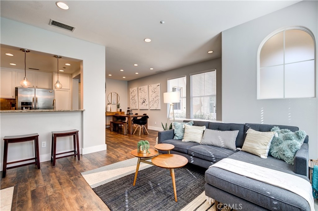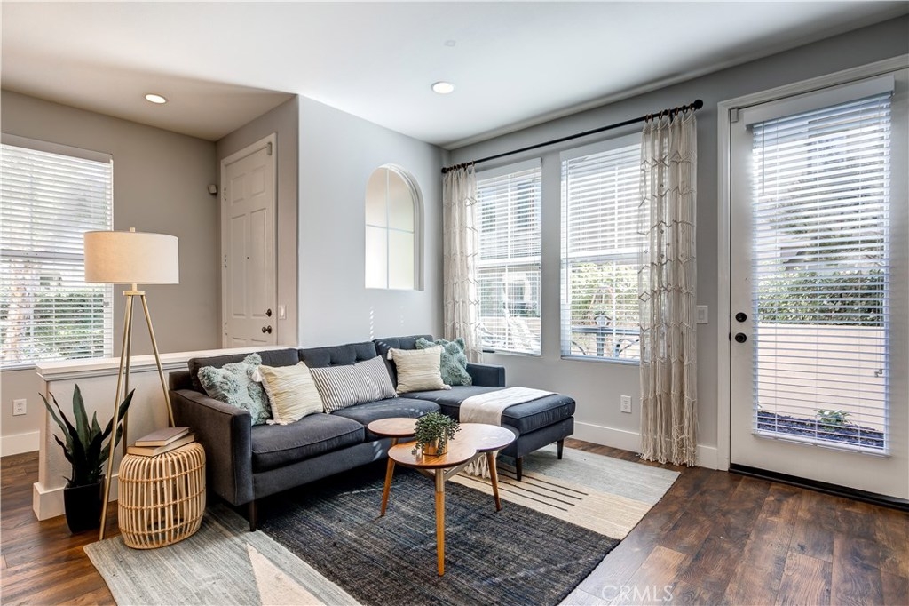 **JUST-LIKE-A-MODEL** Located in the village of Echo Ridge, Ladera Ranch this corner positioned Town Home boasts 1,682 sq feet, 3 bedrooms, 2.5 baths and 2 car direct access garage. As you enter, you’ll notice the recently upgraded home with new laminate wood style flooring, recently painted throughout, a bright spacious kitchen, white cabinetry, and granite counters. The dining room opens to the cozy family room with fireplace, with direct access to your private patio for outdoor enjoyment. The offset corner location of this unit has plenty of windows allowing natural light to flood in keeping it bright and airy. As you head upstairs, you’ll notice the wood laminate flooring continues up the stairs and all throughout the upper level. The oversized master bedroom offers plenty of space to help you unwind, a master bathroom with dual vanities, large deep soaking tub, separate shower, and large walk-in closet. Down the hall you find two generously sized secondary bedrooms, (a Juliet balcony off one of them), and an individual laundry room. Come see why this is the best interior location offering privacy, a resident only pool and hot tub, all within close access to founder’s park (4th of July firework shows, community events and concerts in the park) schools, pools, and trails.