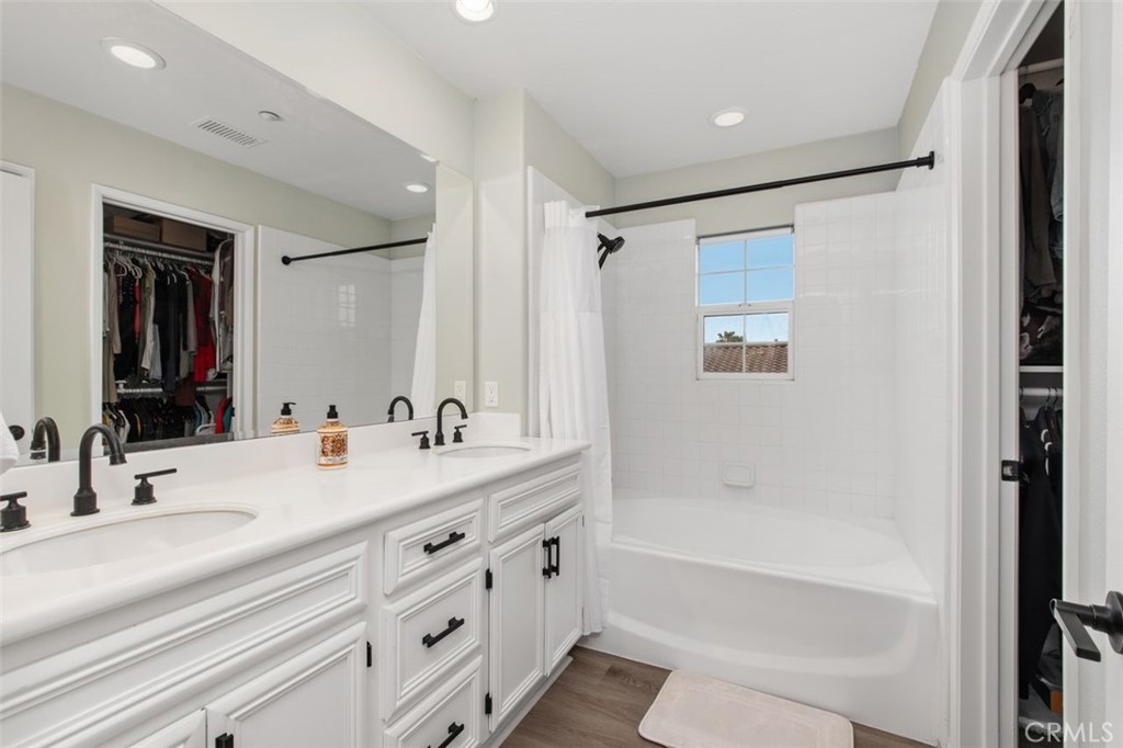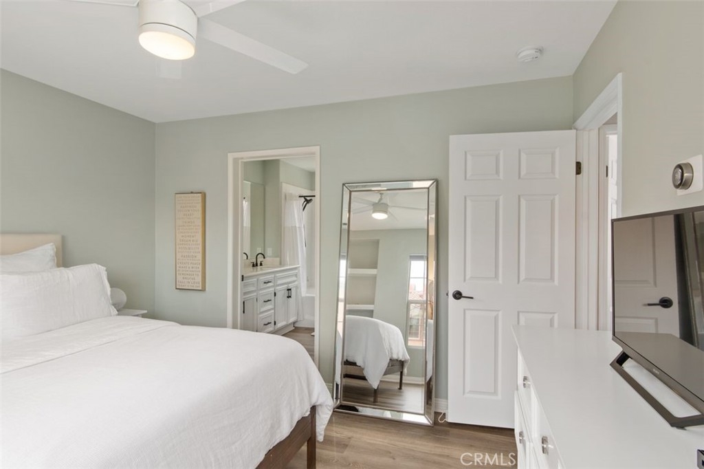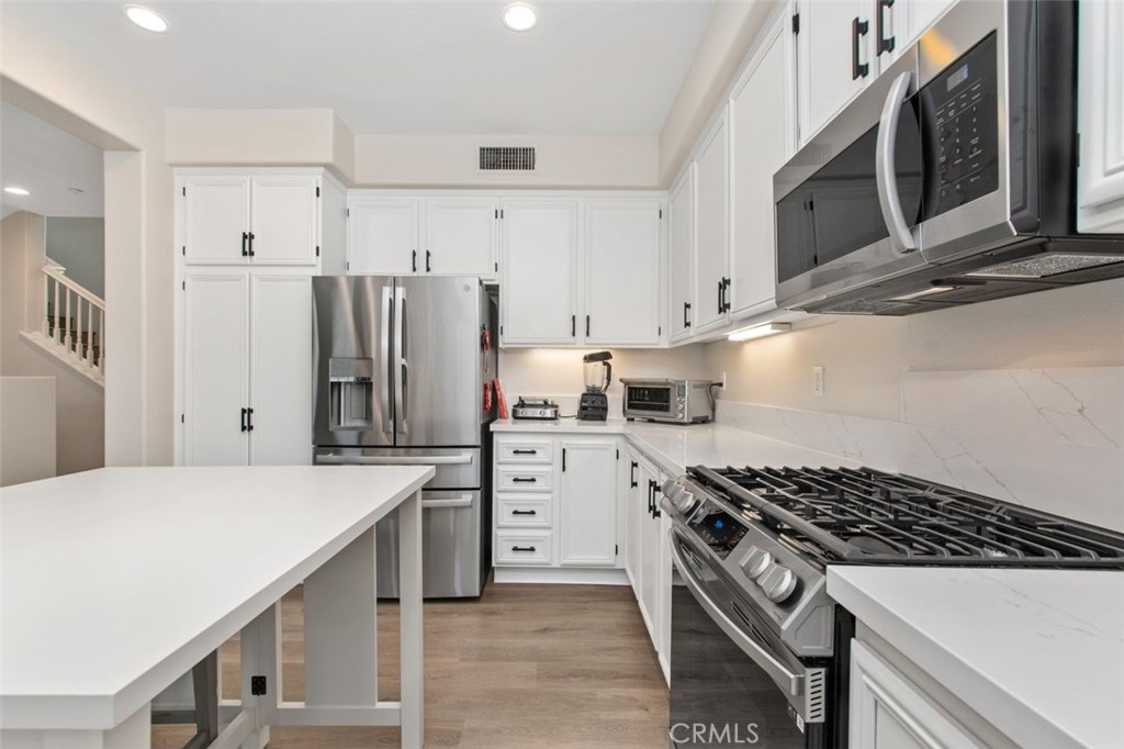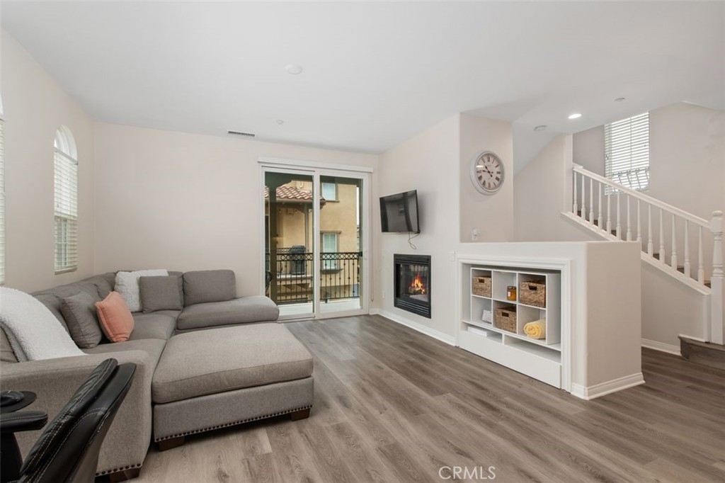 Welcome to a meticulously maintained, sparkling tri-level gem in the Berkshire neighborhood, Ladera Ranch. As you enter, the palpable pride of ownership immerses you in a realm of refined living. This end unit home is as splendid as it is functional. The living area is equipped with a one-touch operation gas fireplace, adding a dash of coziness to the ambiance. The sliding doors lead to a private balcony, perfect for BBQ enthusiasts. The kitchen is a chef's dream with its Corian counter-tops, shining stainless-steel appliances, ample counter space, and a spacious island. Imagine savoring the sight of your personal chef preparing delicious meals right before your eyes! The expansive master suite features tasteful built-in shelves, a walk-in closet, a deep oval bathtub, and double vanities for your convenience. The second bedroom, complete with an en-suite bathroom and generous closet space, is conveniently located on the same floor as the master suite. The home is adorned with stunning vinyl flooring throughout, including the steps, and there's not a trace of carpet in sight. Ceiling fans grace both bedrooms and recessed lighting adds a contemporary touch. The home also boasts a two-car garage with direct access, epoxy flooring, EV charger, large overhead storage bins, and a wall of closets for your storage needs. A sauna, available for purchase, is situated within the garage, adding to the luxury of the property. Nestled in the foothills of Orange County's Saddleback, the Ladera Ranch community offers an enriching lifestyle. With 18 community parks, a dedicated dog park, six pools, green belts, and shopping centers, it is an idyllic haven for families. Outdoor enthusiasts will appreciate the miles of hiking and biking trails connecting to Doheny Beach. Experience the best of suburban living in this master-planned community.