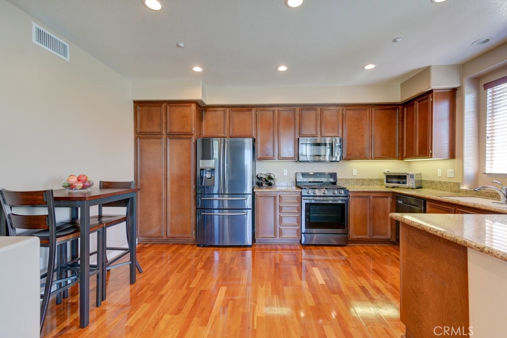 Gorgeous and highly upgraded Berkshire home located in the heart of Ladera Ranch. Great end unit location with a beautiful view and 2 car attached garage. This well-maintained home offers 2 master bedrooms, 2.5 bathroom and 2 car attached garage! Bright and open floor plan with a large gourmet kitchen featuring upgraded cabinets, granite counter tops, stainless steel appliances and recessed lighting. Large living room with built-in entertainment center, upgraded fireplace and sliding glass door to a relaxing balcony. Spacious master suite includes a walk-in closet, dual vanity, oval bath tub and shower. Spacious guest bedroom with upgraded mirrored closet doors and it's own bath. Upgraded ceiling fans. Wood flooring in family room, dining area and kitchen. Beautiful Italian ceramic tile in entry and baths. Two car attached garage with a large storage area. Extra parking on the street close to the property. Great location, steps away from the community pool. Close to Ladera Ranch amenities such as parks, award winning schools, tennis and basketball courts, water park, pools, spas, skate park, hiking& biking trails and community events. HOA includes trash and free internet!