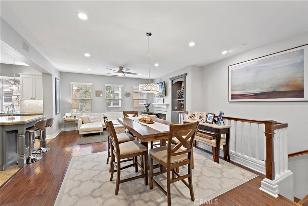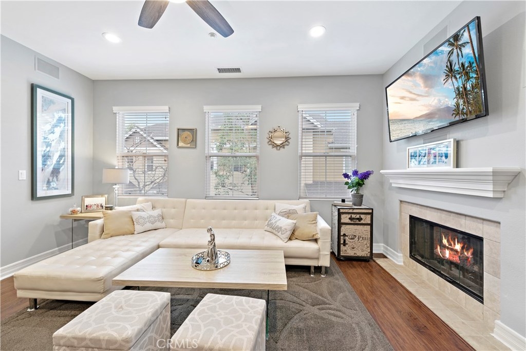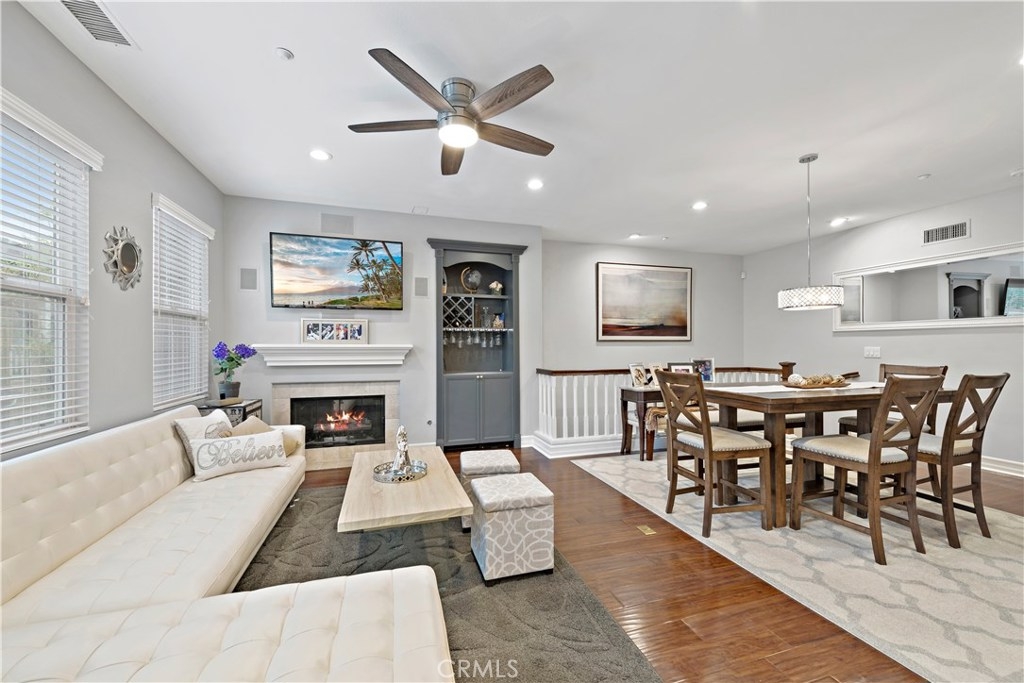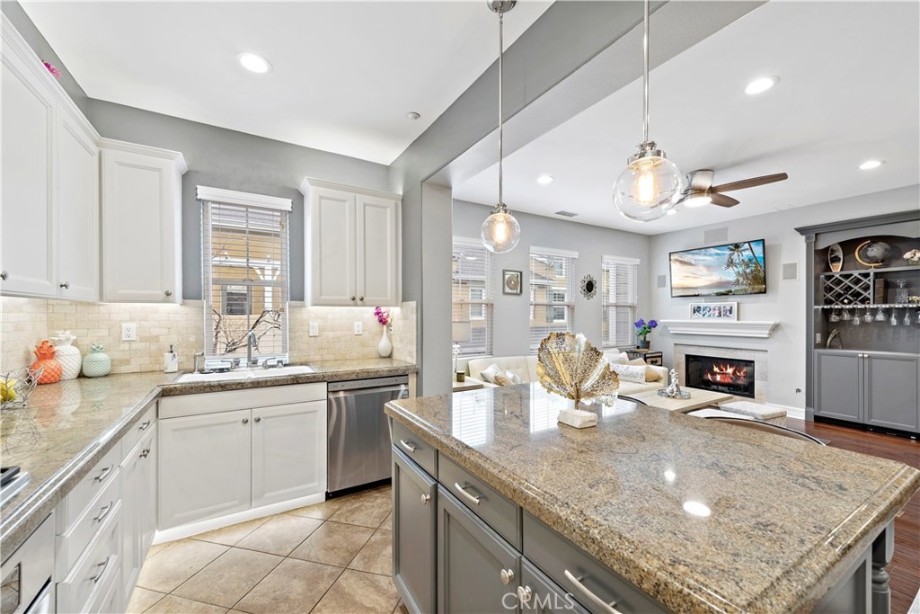 This 2144 sq ft 3 bed, 2 1/2 bath, Live/Work home located in Ladera Ranch features Remodeled Kitchen & Bathrooms; repainted interior; expanded/enlarged custom Master Closet; custom LED lighting & surround sound throughout; 2 car attached garage w/Epoxy floors & Tesla charger; new hot water heater & circulating water pump; & est 450 sq ft of separate, commercial-zoned, office space. Remodeled Kitchen is open to family room w/ tons of natural light, granite counters, custom backsplash, custom lights, & island/breakfast bar which opens to family room w/ cozy fire place & built in wine rack. 2 secondary bedrooms on the main floor are both spacious and the remodeled full bathroom includes granite counters, custom lighting, & new hardware. Master bedroom gets great natural light & includes a custom built, enlarged walk-in Master Closet. Remodeled master bathroom includes barn door, built-in vanity makeup counter, granite counters, custom lighting, glass shower & separate soaking tub. Ground floor includes a completely separate est 450 Sq ft commercial zoned office space (recently rented for $1400/Mnth) w/ its own entrance, half bath (could be converted to full), & is currently separated into 3 rooms but walls could be easily removed creating one large space while maintaining existing flooring. Enjoy all Ladera has to offer including short walk to highly rated Oso Grande Elementary School, Red Bucket Water Park, Skate Park, numerous pools, parks, & the Paseo walking trail.