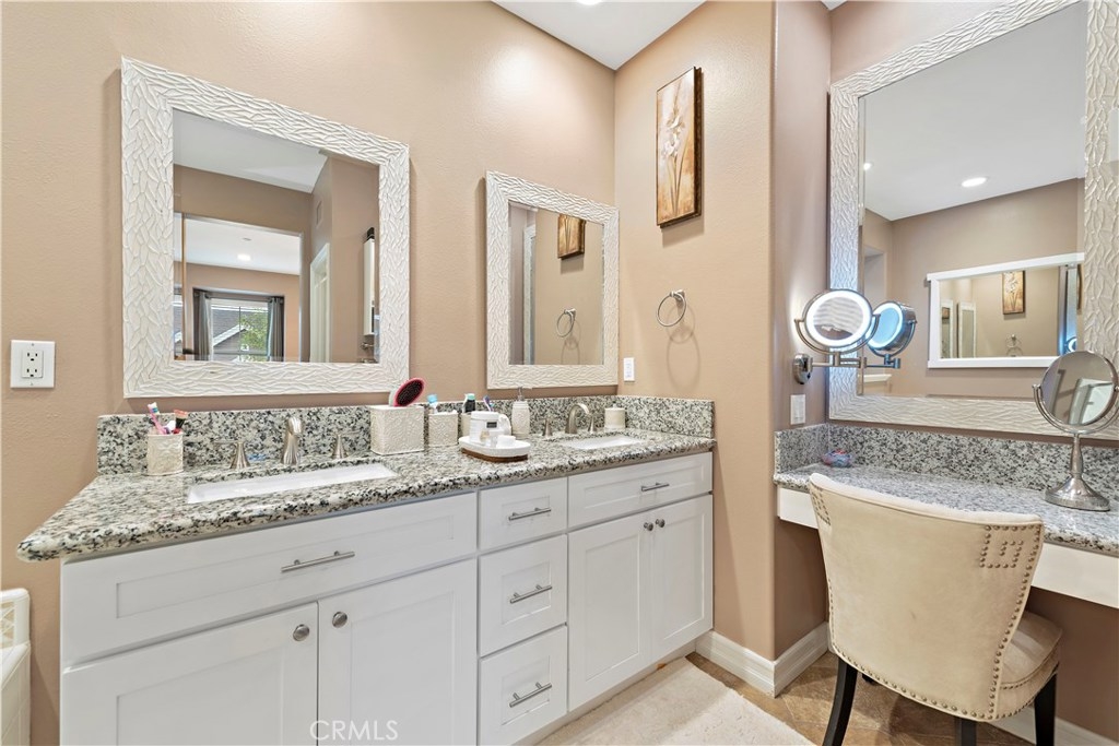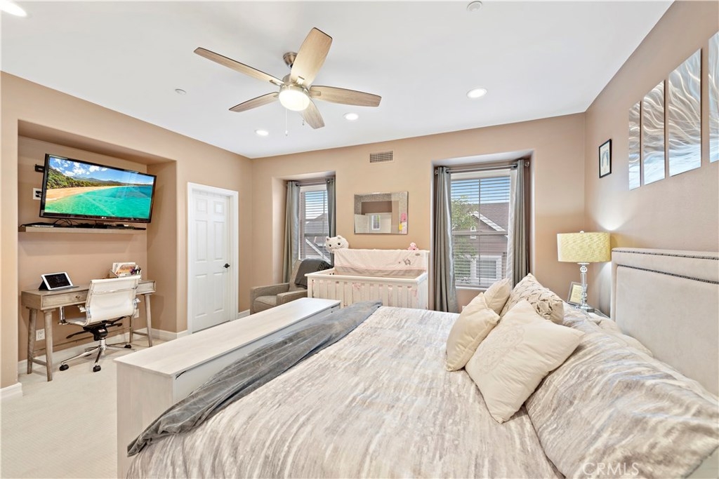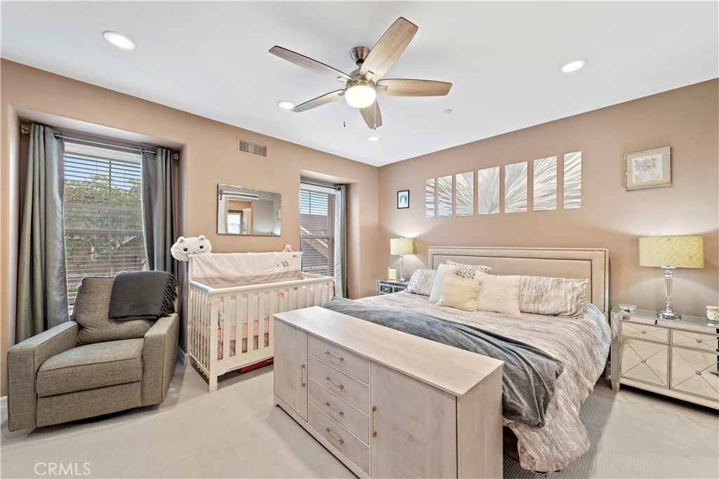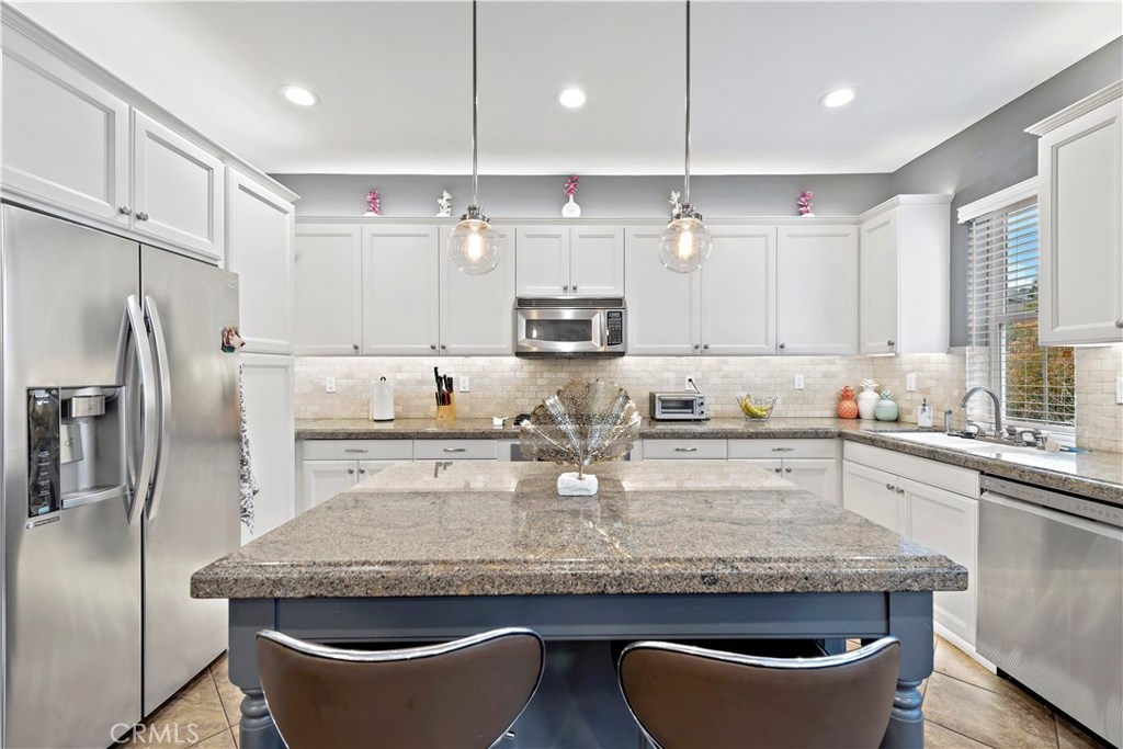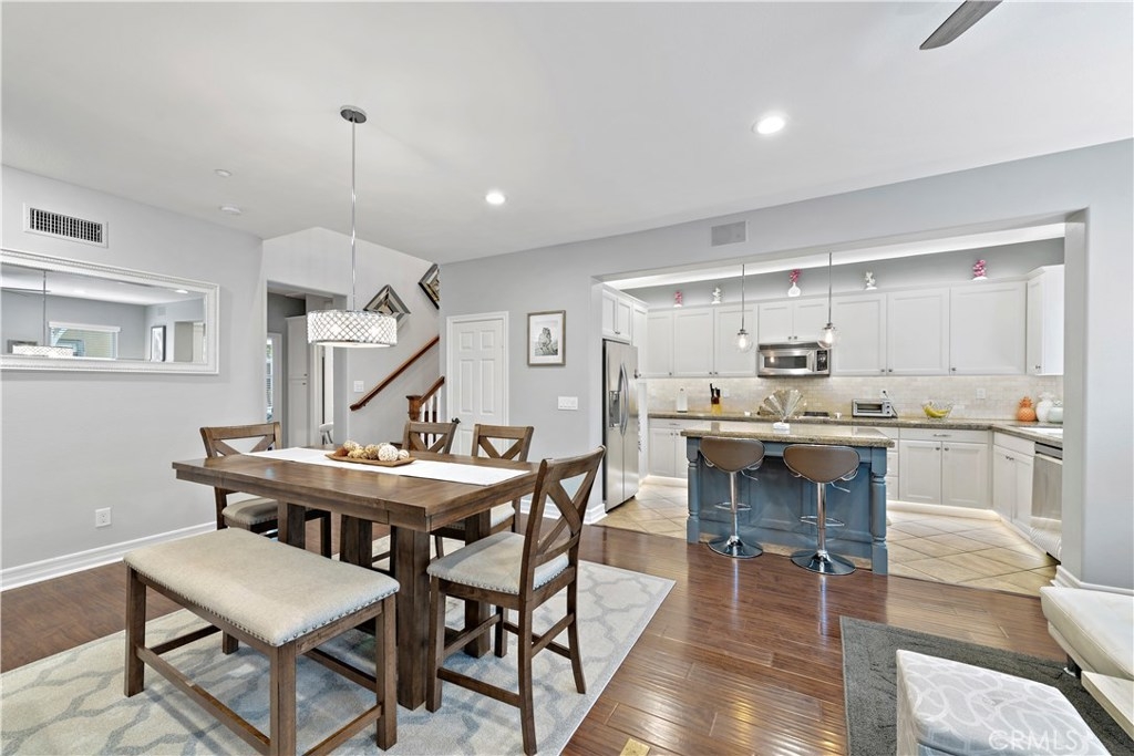 This 2144 sq ft 3 bed, 2 1/2 bath, Live/Work home located in Ladera Ranch features Remodeled Kitchen & Bathrooms; repainted interior; expanded/enlarged custom Master Closet; custom LED lighting & surround sound throughout; 2 car attached garage w/Epoxy floors & Tesla charger; new hot water heater & circulating water pump; & est 450 sq ft of separate, commercial-zoned, office space. Remodeled Kitchen is open to family room w/ tons of natural light, granite counters, custom backsplash, custom lights, & island/breakfast bar which opens to family room w/ cozy fire place & built in wine rack. 2 secondary bedrooms on the main floor are both spacious and the remodeled full bathroom includes granite counters, custom lighting, & new hardware. Master bedroom gets great natural light & includes a custom built, enlarged walk-in Master Closet. Remodeled master bathroom includes barn door, built-in vanity makeup counter, granite counters, custom lighting, glass shower & separate soaking tub. Ground floor includes a completely separate est 450 Sq ft commercial zoned office space (recently rented for $1400/Mnth) w/ its own entrance, half bath (could be converted to full), & is currently separated into 3 rooms but walls could be easily removed creating one large space while maintaining existing flooring. Enjoy all Ladera has to offer including short walk to highly rated Oso Grande Elementary School, Red Bucket Water Park, Skate Park, numerous pools, parks, & the Paseo walking trail.