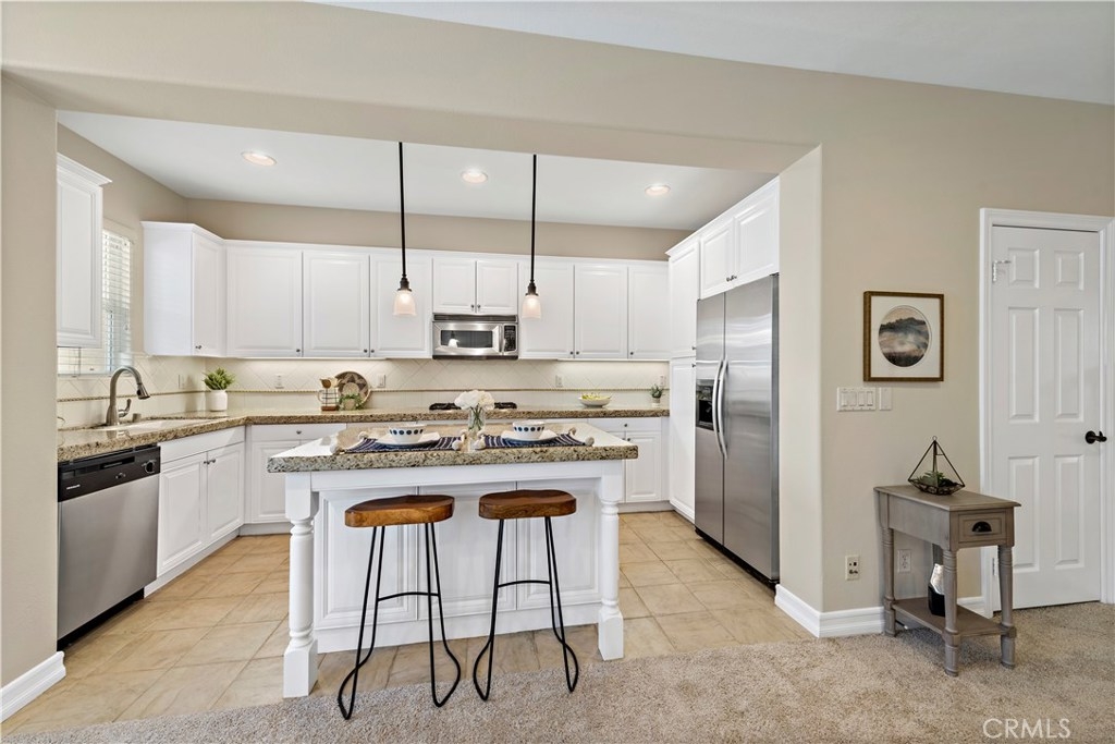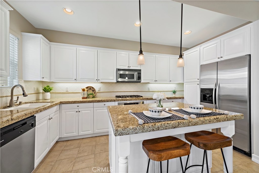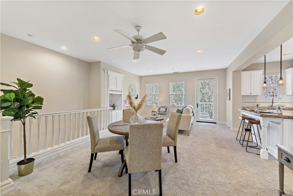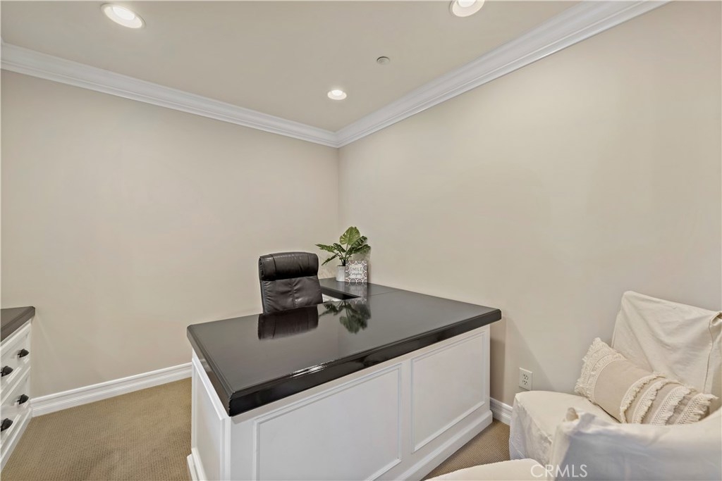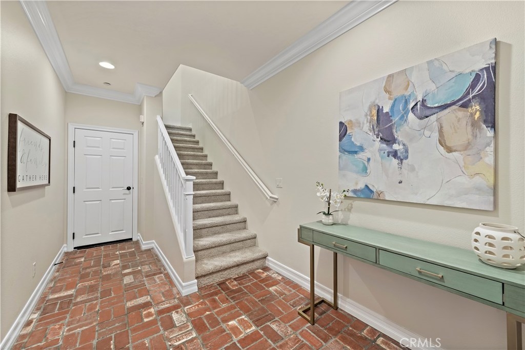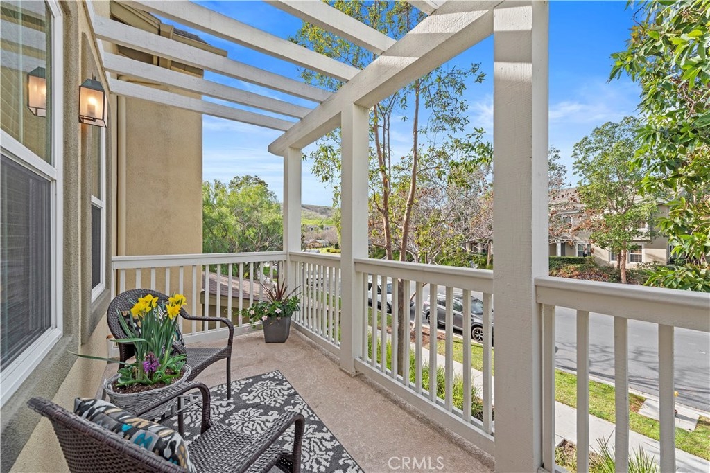 Positioned on the front row of Banister Street Development in the coveted Ladera Ranch Community, this former Model will meet all your expectations. Pristine property surrounded by lush trees is the much desired location of this Live/Work Condo offering 3 Bedroom, 2.5 Bath Living Space, and additional Commercial Zoned Space on the first floor. Large Brick Front Patio greets you upon entry to the front door. Open and Inviting Formal Entry w/ Custom Brick Flooring, Upgraded Baseboards, Brand new paint. First Floor features Commercial Zoned Space w/ separate entry to 2 Offices, brick flooring entry, custom office built-in’s and desks, and half bath. Living Space of the Condo features vaulted ceilings, dining room, living room w/ fireplace, built-in entertainment center. Kitchen opens to the Living Room w/ a Large Granite Island, White Cabinets, Stainless Steel Appliances. French Door out to a private Balcony. Main level also features 2 large bedrooms, bath w/ dual sinks, shower w/ soaking tub, laundry room, new paint, new carpeting, recessed lighting, ceiling fans. 3rd Level features a large Master Suite w/ 2 Walk-In Closets, new carpeting and paint. Master Bath w/ dual sinks, built-in cabinets, walk-in shower w/ glass surround and slate tile accents, soaking tub. Oversized 2-car Garage w/ Driveways, Built-in Storage. Short distance to Top Rated Schools, Parks, Pools, Skate Park, Water Park, Trails, Tennis Courts, and so much more that Ladera Ranch Amenities offer.