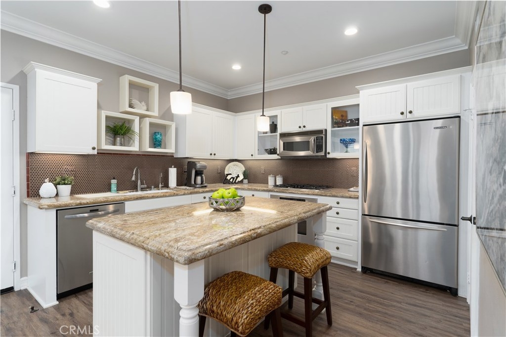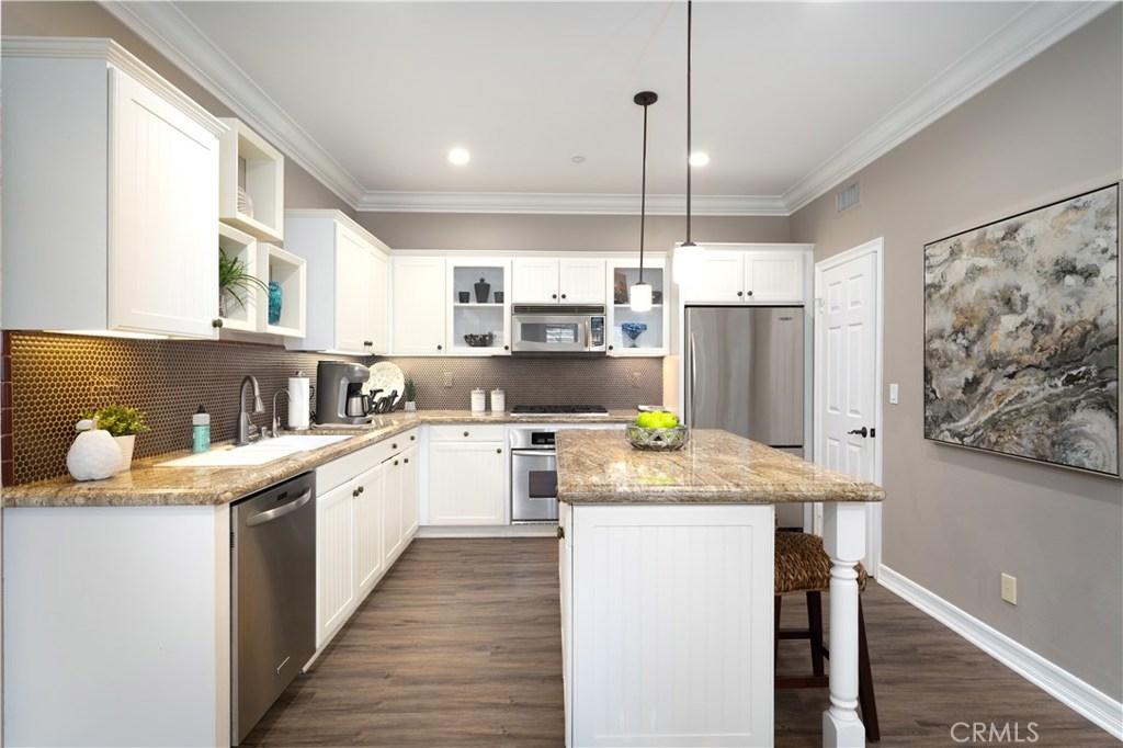 Stunning townhouse located in the popular Branches Neighborhood of Ladera Ranch. This former model home was recently upgraded with waterproof luxury vinyl flooring, new LED lights, fresh paint and new carpet. One of the absolute best locations in The Branches this corner unit is set above the street level and is directly across from Boreal Park, The Goddard School, and close proximity to the Paseo. An entertainers delight, enjoy your chefs kitchen with all Kitchen Aid appliances, granite countertops and eat in island. Multiple living spaces afford a fantastic flow to the home with one living room off your kitchen and another located at the entry way of the home. Upstairs living area consists of an oversized master bedroom and bathroom with walk in closet. Laundry is located upstairs for easy living. Come and enjoy all of the wonderful amenities Ladera Ranch has to offer by calling 33 Orange Blossom home.