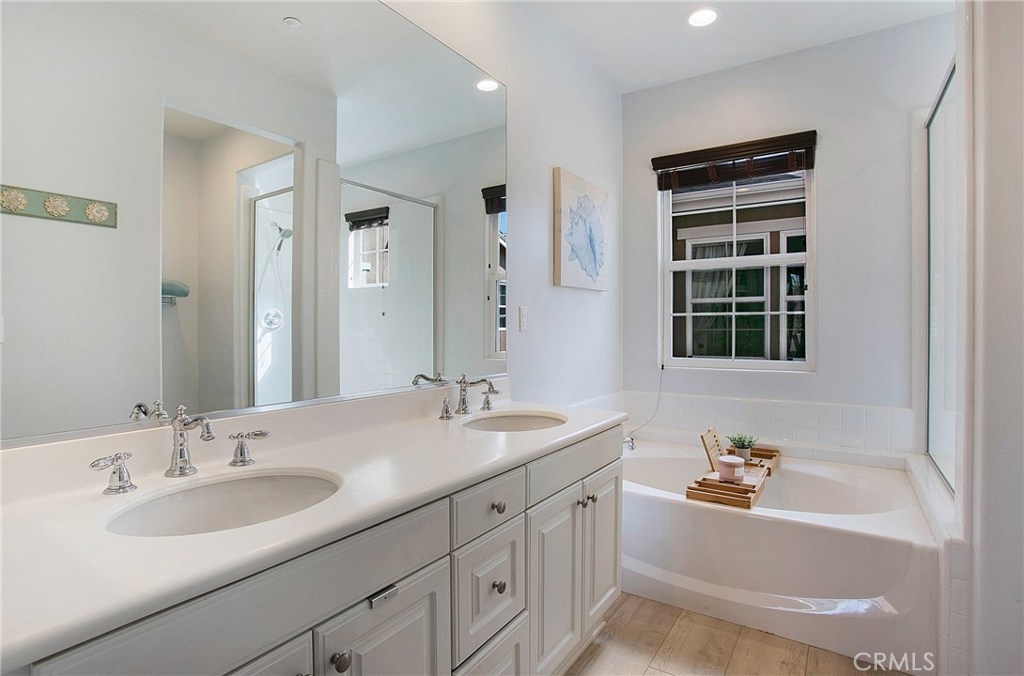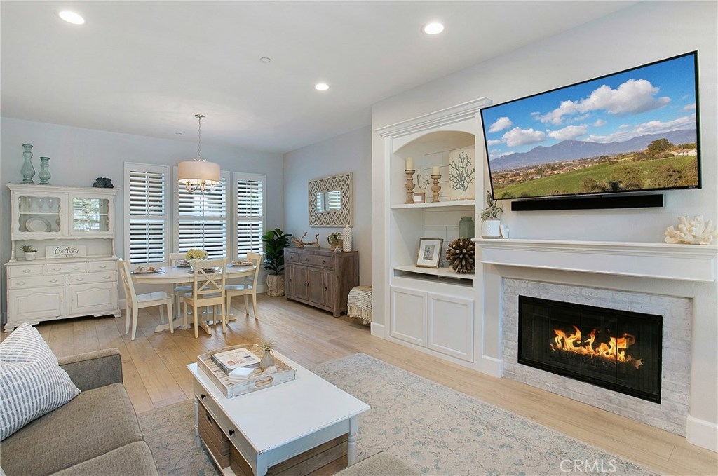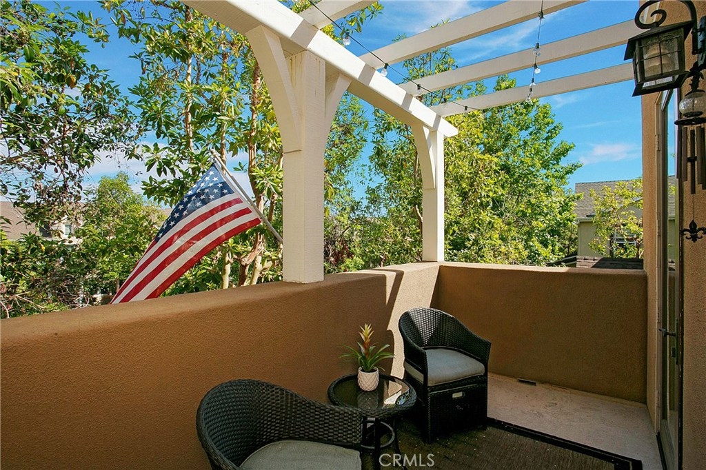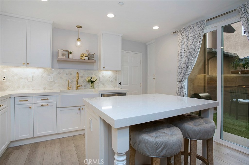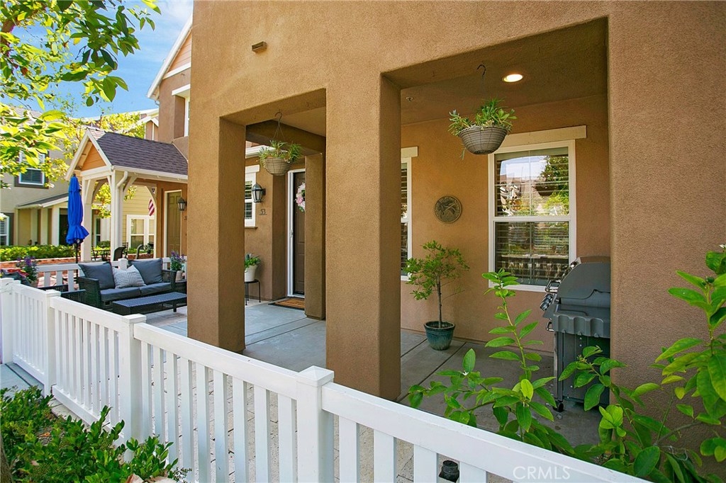 This absolutely stunning and recently updated townhome features almost 2,100 sq ft of living space with 3 BR/2.5 baths plus a bonus room/loft. Upon entering this beautifully designed and decorated home you will notice the spacious open floor plan that features a living room with built-in media niche, adjacent dining area, and a cozy fireplace to help set the perfect atmosphere for entertaining family and guests, or just relaxing. The gourmet kitchen offers quartz countertops, custom tiled full backsplash, center island, stainless steel appliances, farmhouse sink and white cabinetry accented with antiqued brass hardware and fixtures. The owner?s suite features a vaulted ceiling, en suite bathroom with separate tub and shower, private balcony, and bonus room/loft. The oversized secondary bedrooms share the second full bathroom. Other features and designer upgrades include an upstairs laundry room, private side patio/yard, enclosed front patio, window shutters and blinds, upgraded baseboards, wide plank wood-look flooring, newer carpet, shiplap accents, and a 2 car garage with lots of storage space. You'll enjoy all the amenities Ladera Ranch has to offer with this conveniently located home including award winning schools, clubhouses, community pools, dog parks, skate park, sport courts, community events, and miles of trails. Some of these amenities are located at the end of the street. Hurry, this move-in ready home is a must see.