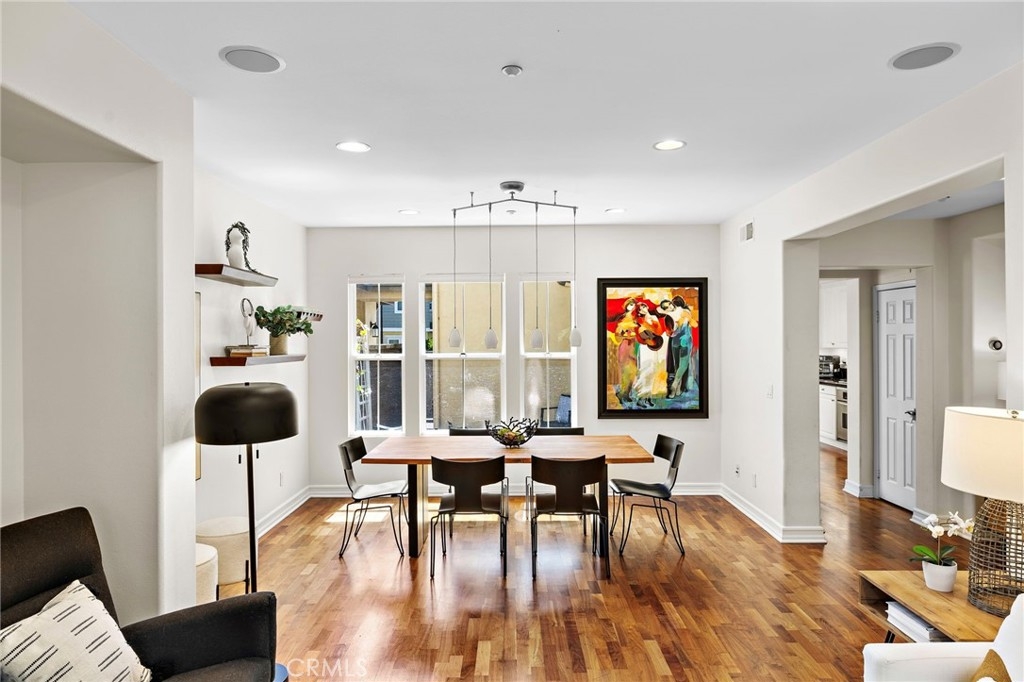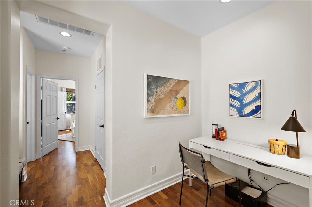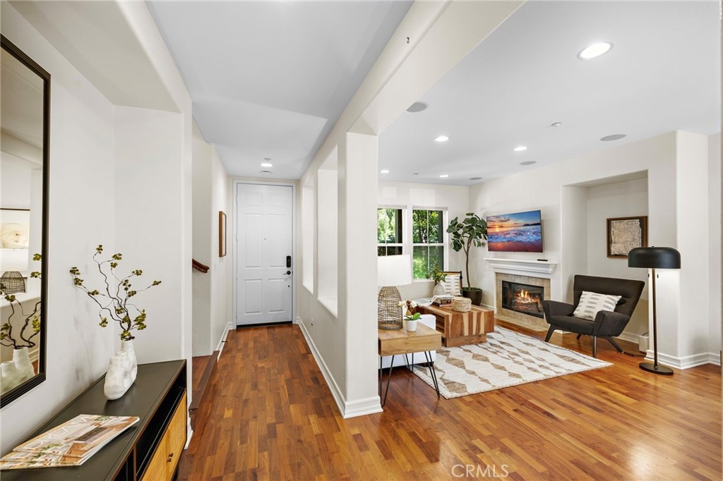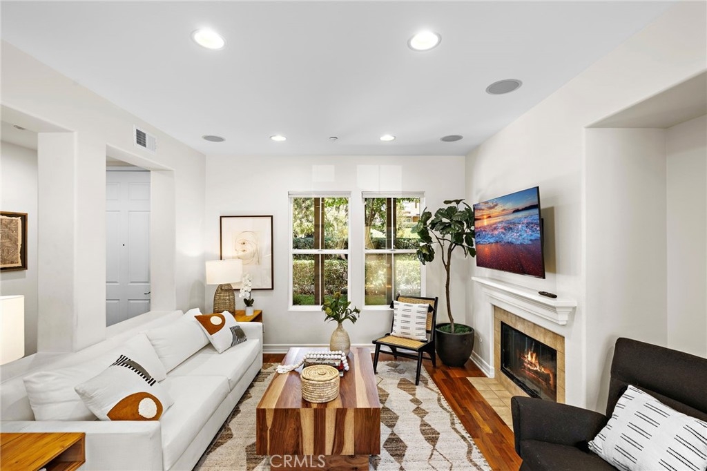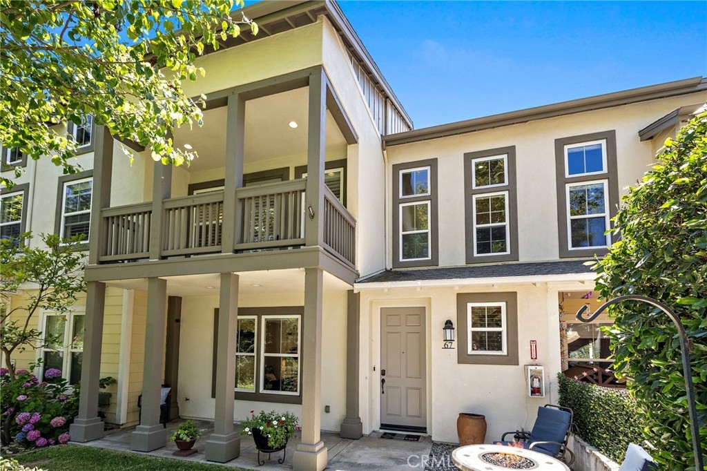 Come enjoy this beautifully enhanced townhome nestled in The Branches neighborhood of Ladera Ranch’s Terramor Village in an ideal central location full of kids and life, near greenbelts and the Paseo Walking Trail, you’re a short walk to top-rated schools, Oso Grande Elementary and Ladera Middle School, multiple parks and pools, the Terramor Aquatic Park, the Skate Park, Avendale Clubhouse, and Founders Park — home to the weekly Sunday Farmers Market and annual 4th of July Fireworks & Festival. A private front yard provides plenty of space with a covered porch and front lawn great for playing, relaxing and entertaining. Indoors, an abundance of windows welcome natural light into an open three-bedroom, two- and one-half-bath floorplan of approximately 2,071 square feet. An air of sophistication elevates the first floor, where a fireplace-warmed great room reveals a media niche and surround sound, and a bright dining room provides the perfect setting for dinners with the kids or holiday gatherings with family, friends, and neighbors. The dining area and great room flow into the kitchen, where a sliding-glass door opens to a private paver-finished courtyard. The kitchen boasts an island, granite countertops, white cabinetry with crown molding, a built-in pantry and stainless-steel appliances. For added convenience, the kitchen leads directly to an attached two-car garage with EV charger. Upstairs features three bedrooms plus a versatile loft style desk niche perfect for homework. The three bedrooms include two, larger-than-average, secondary bedrooms which make the Branches tract and floorplans unique verse other similar Ladera tracts while the primary suite is highlighted by a private covered balcony, vaulted ceiling, walk-in closet, and an ensuite bath with dual sinks, a soaking tub, separate shower and upgraded tile surrounds. Additionally, there is a third-floor loft-bonus room with custom built in shelving perfect for an office, exercise room, or kids play area. Custom hardwood flooring lends a refined aesthetic in most living areas, which are complemented by plantation shutters, newer paint, upgraded lighting fixtures and high-end base molding. Local shopping centers present cafés, services, specialty boutiques and popular dining destinations. Arroyo Trabuco Golf Club, Laguna Beach, the Dana Point Harbor, San Juan Capistrano, Mission Hospital, and The Shops at Mission Viejo Mall are all remarkably close to this move-in-ready townhome.