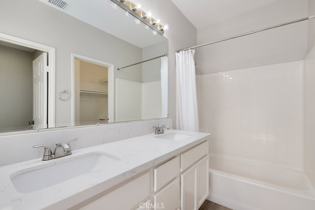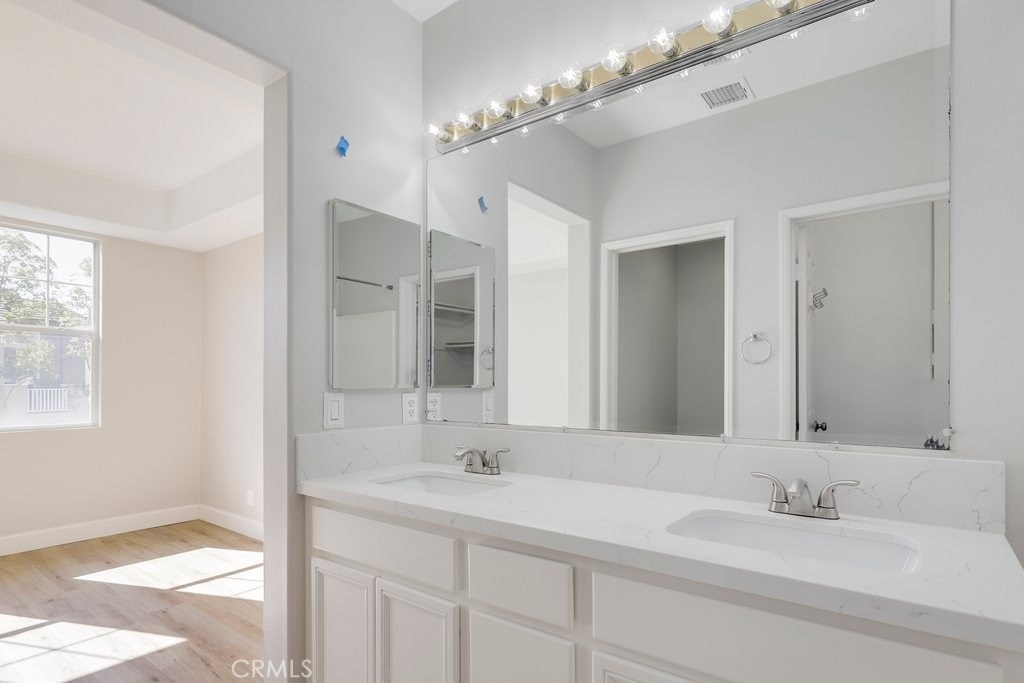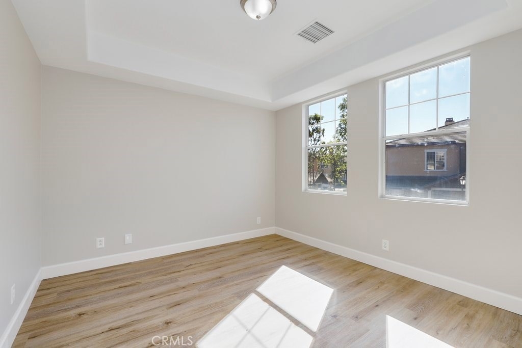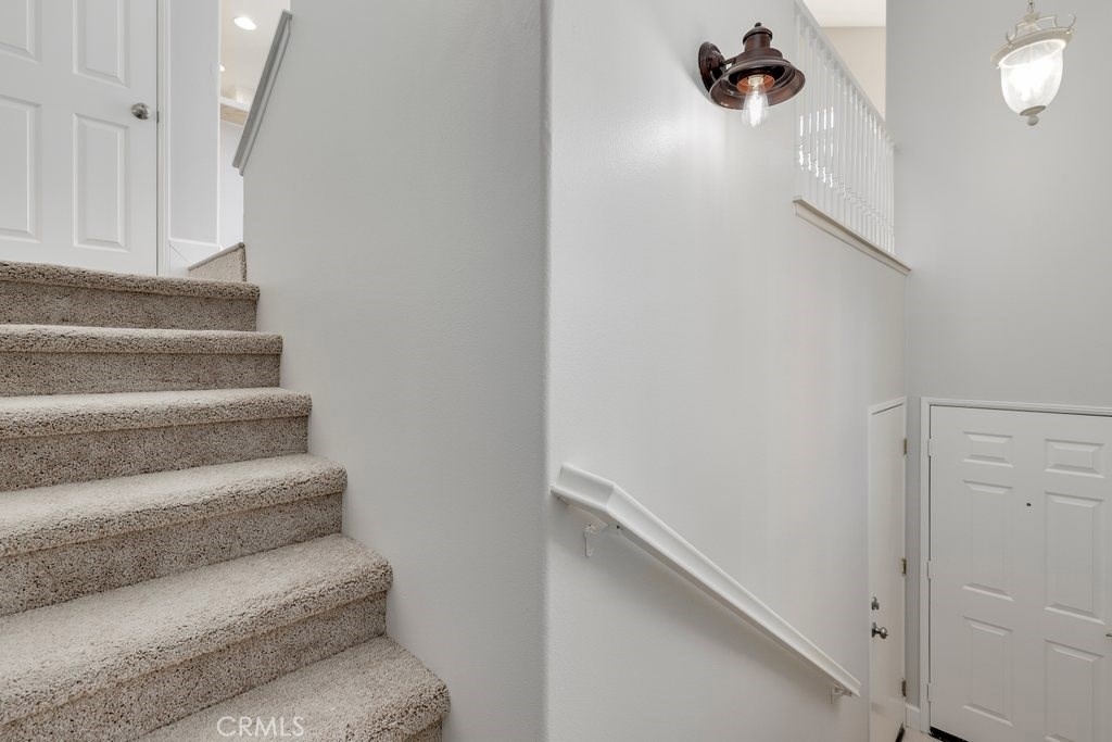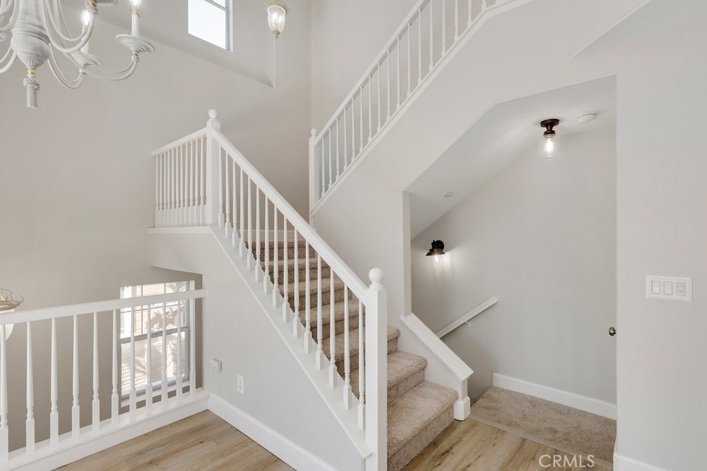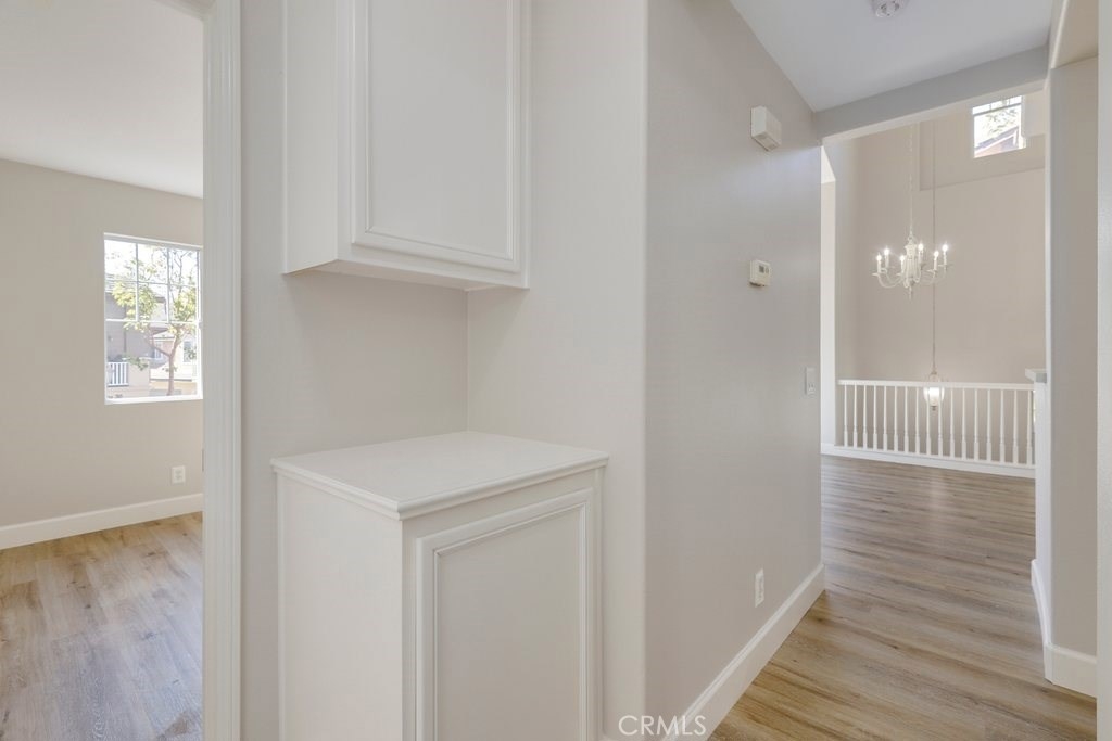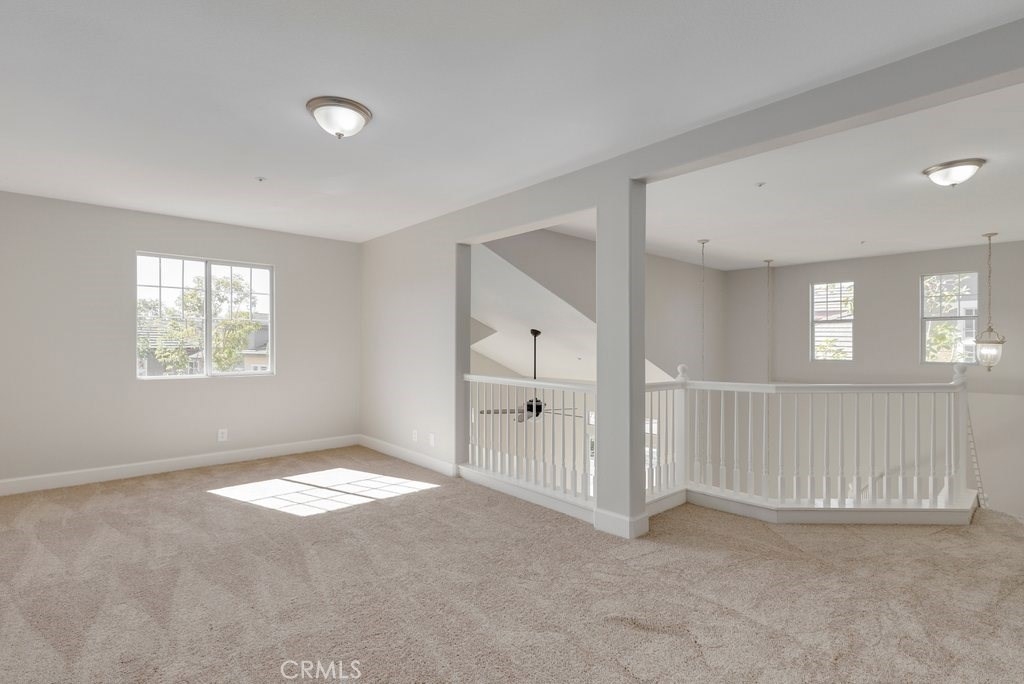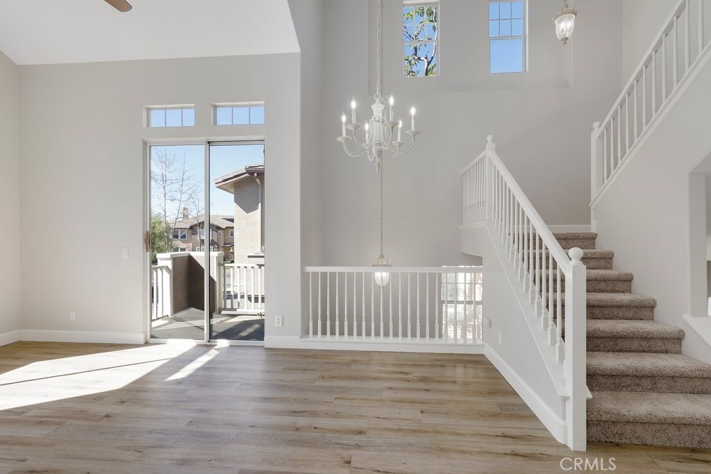 This upgraded tri-level home in the desirable community of Chambray in Ladera Ranch is ready for its new owners! New laminate wood floors, new paint and cathedral ceilings compliment the bright and open floor plan. The kitchen on the main level features fresh white cabinets, quartz counter tops, new appliances, and recessed lighting. The living/dinning room flows seamlessly from the kitchen and features a light catching slider to a private patio and ceiling fan. Down the hall the master suite features new paint, walk in closet and updated en suite master bath with dual sinks. The secondary bedroom is a generous size and shares the full hall updated bath. The third level is a huge loft with plenty of room for entertaining. Indoor laundry and attached 1 car garage in addition to one assigned parking spot make for easy living. Relax on the private balcony with neighborhood views. Enjoy the resort-like amenities of Ladera Ranch which includes high-speed internet, 15 pools, splash parks, a skate park, community garden, clubhouses and hiking and biking trails. Also enjoy concerts in the park, parades, 4th of July fireworks, a spring fair, family campout, holiday tree lightings, and a secure dog park.