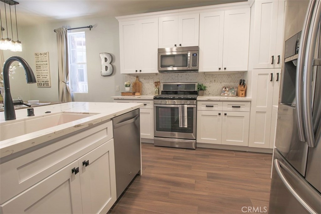 Back on Market! Shows like a model home. Turnkey and ready for your family! Located in the master-planned community of Ladera Ranch, this corner unit, farmhouse inspired, turnkey home offers modern design with warm and charming aesthetics. The residence has three bedrooms and two and one half baths, and has been renovated from top to bottom with fine attention to detail. The kitchen is open concept and complete with new shaker cabinets, stainless steel appliances, marble inspired quartz countertop and backsplash, and newly released quartz sink. Black hardware completes the look. In the spacious living room, there is a cozy fireplace, lots of bright windows, and a new mantle. Immediately next to the fireplace is an office nook perfect for helping you keep everything organized. All bathrooms in the home have been tastefully updated. Beautiful wood look tile throughout the first floor and upstairs bathrooms and new carpet on the second floor. The home is the largest floor plan for this model and unlike other models, it boasts its own covered porch. This home is within walking distance to trails, dining, grocery store and Starbucks. Ladera Ranch is known for its beautiful clubhouses, private water park and skate park, 18 community parks and many pocket parks, a dog park, 10 pools, shopping districts, its own Fourth of July fireworks show, top rated schools, and miles of hiking/biking trails that connect to Doheny Beach. This property will not last long!