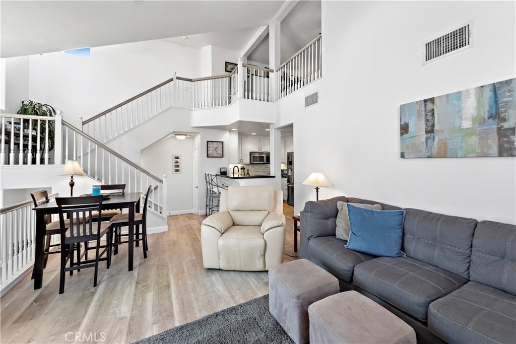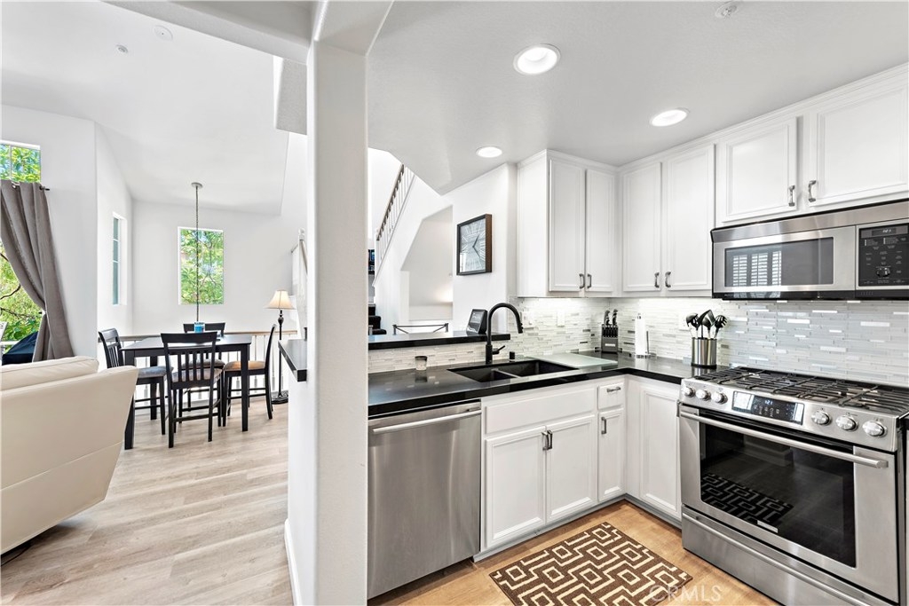 Light and Bright gorgeous end unit Townhome in the Chambray community of Ladera Ranch. 2 bedrooms and 2 full bathrooms as well as a large loft/alternative bedroom. Great Room entry with vaulted ceilings connect the Kitchen, Dining and Living Rooms. Upgraded kitchen with new fixtures, appliances, back splash and counter tops. Breakfast bar with bar stool seating. Large dining space that opens to the family room where you can relax on your private balcony. New wood laminate flooring flows seamlessly throughout the home as well as upgraded baseboards & fresh paint. Spacious master bedroom is the perfect retreat for a night of rest & relaxation with its own generous master bathroom and walk-in closet. The second bedroom is comfortable and perfect for family or guests. The upstairs loft adds the perfect space for additional privacy or an office/game room. New furnace, AC and water softening system installed. New door fixtures installed all for the benefit of the new owner of this highly upgraded home! Seller spent over $36,000 in recent upgrades!