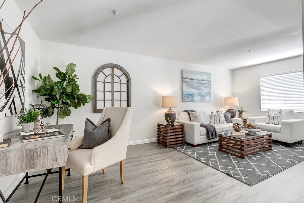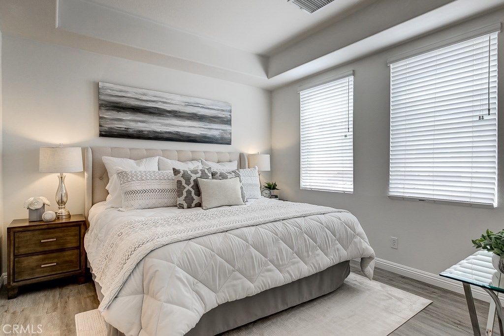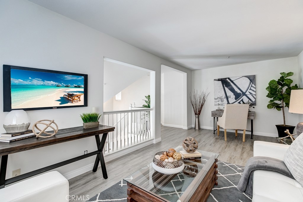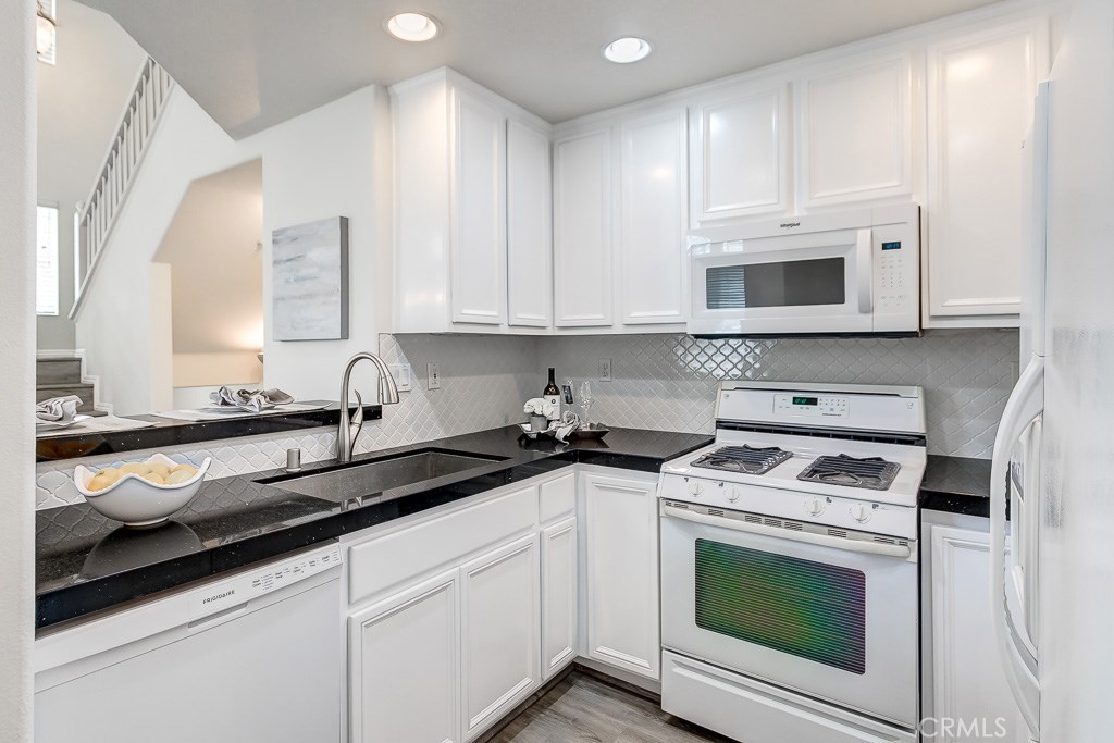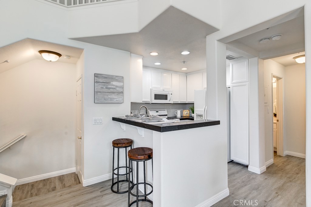 Bright and Beautiful end-unit Townhome with Attached 1-Car Garage in the delightful community of Chambray Ladera Ranch, features 2 bedrooms, 2 bathrooms + large upstairs Loft. Upon entering a lovely Great Room feel and vaulted ceilings connect the Kitchen, Dining and Living Rooms. Make a special meal for loved ones in the updated kitchen with clean white cabinetry, breakfast bar, sparkling black quartz countertops, & a large farm sink. Share your time and your meal in the charming dining space, then relax in the open family room or take the moment out onto your private balcony. New wood-look laminate flooring flows seamlessly throughout the home as well as upgraded baseboards & fresh paint—all offering you added visual appeal. The spacious master bedroom is the perfect retreat for a night of rest & relaxation with its own generous master bathroom and walk-in closet. The second bedroom is comfortable and perfect for family or guests. The upstairs Loft adds the perfect space for privacy, an ideal office environment, or would even make a wonderful Game room. Welcome Home!
