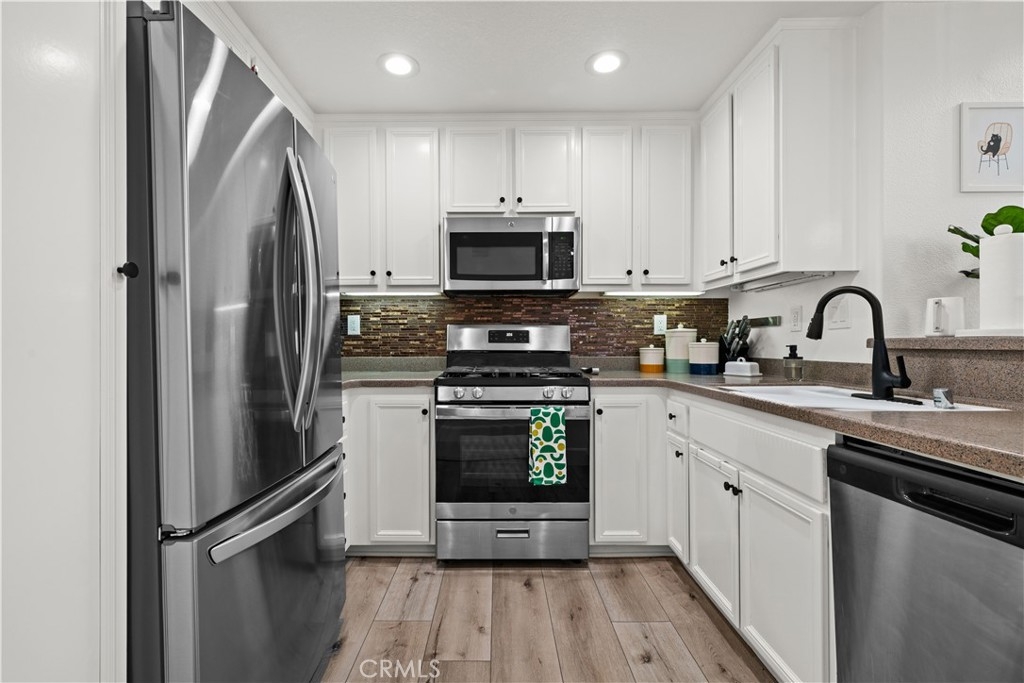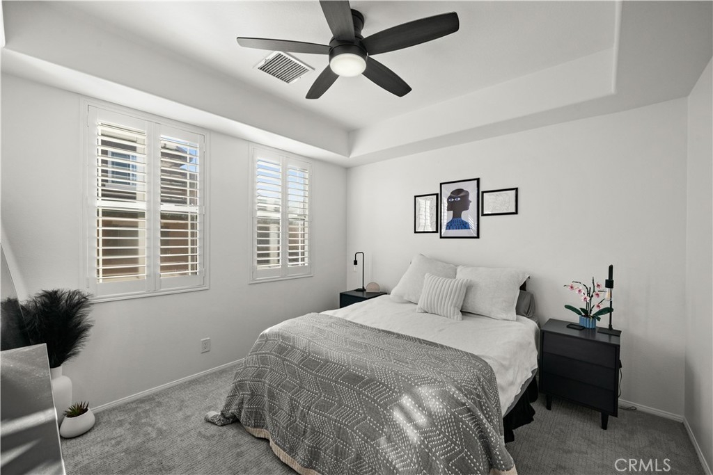 This 3 bedroom 2 baths corner unit is nestled in the heart of the charming community of Ladera Ranch. This exquisite townhouse combines modern elegance with a comfortable and inviting atmosphere. Featuring a well-designed layout with an open floor plan and high vaulted ceilings, this home offers both functionality and style. The property is adorned with tasteful finishes and an abundance of natural light with a small deck off the living room. The kitchen is equipped with stainless steel appliances, Corian countertops, and ample cabinet space. Primary master suite provides a serene retreat with its generous space and features and a beautifully appointed ensuite bathroom with dual vanities and walking closet Second bedroom offers versatility, whether for family members or guests. The upstairs bedroom/loft features a built-in office center and may function as a bedroom, office, or playroom. The townhouse boasts thoughtfully designed spaces with recessed lighting, designer fans and plantation shutters. Residents of this townhouse enjoy access to community amenities, such as parks, walking trails, and recreational facilities, creating a balanced and active lifestyle. With its proximity to local schools, shopping centers, and dining options, 7 Chadron presents an opportunity to embrace the vibrant and convenient lifestyle that Ladera Ranch has to offer. This townhouse is not just a residence; it's a place to call home, where modern living meets the tranquility of a well-established community. Don't miss the chance to experience the perfect blend of luxury and comfort in this Ladera Ranch gem.