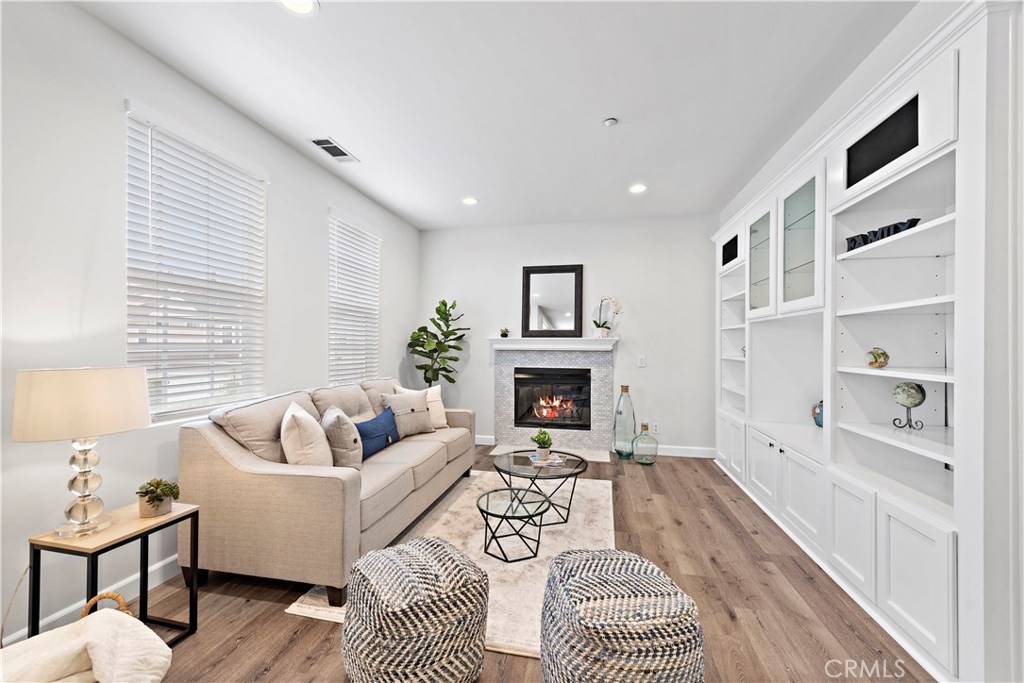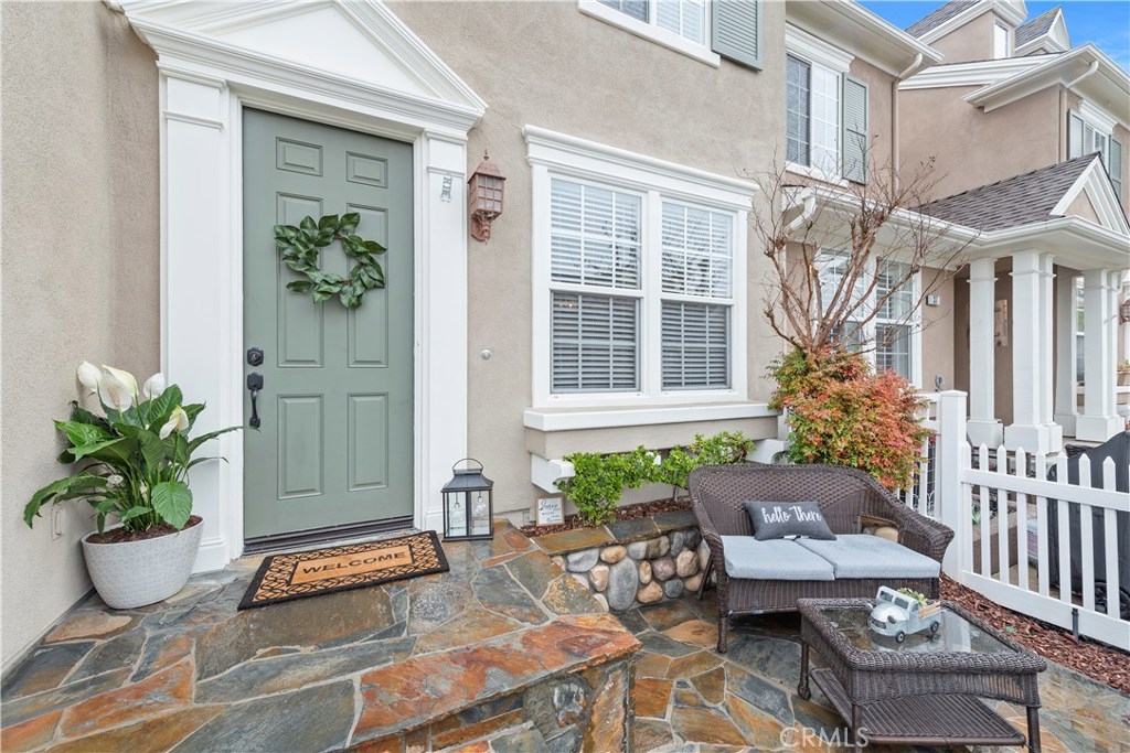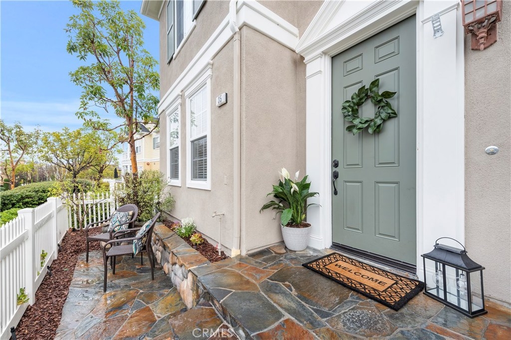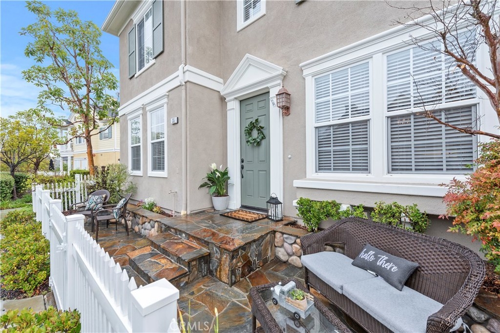 Perched on a higher elevation, this stunning 3 bedroom, 2.5 bath home provides privacy, and interior designer upgrades, and is centrally located to Community activities, schools, numerous parks and pools. Front porch entry and patio is perfect for relaxing or entertaining, featuring flagstone finishes, planters, and white picket fence. Spacious open floorplan greets you upon entry w/ brand new luxury plank flooring throughout the downstairs, upgraded baseboards throughout, recessed lighting. Open Living room w/ beautiful custom built-in Entertainment Wall, fireplace w/ marble and stacked stone surround. Large Dining Room w/ upgraded chandelier. Spacious Gourmet Kitchen w/ brand new Quartz Counters, Breakfast Bar, Large Single Basin Sink w/ upgraded Faucet, Refinished White Cabinets, Brand New Stainless Steel Appliances, abundance of cabinets, and pantry. Upstairs features 2 large secondary bedrooms w/ new plush carpeting, ceiling fans, and one w/ large walk-in closet. Spacious Master Suite w/ new plush carpeting, upgraded baseboards, large walk-in closet. Master Bath w/ dual sinks, new luxury vinyl plank flooring, new shower surround and fixtures. Secondary bath also features new luxury vinyl plank flooring, soaking tub w/ Shower. 2-Car Attached Garage w/ epoxy flooring, and additional storage. Pristine condition, amazing detail w/ upgrades, you don’t want to miss this Home and the cul de sac location. Virtual Tour Link: https://my.matterport.com/show/?m=U99FzDFCLJs&brand=0