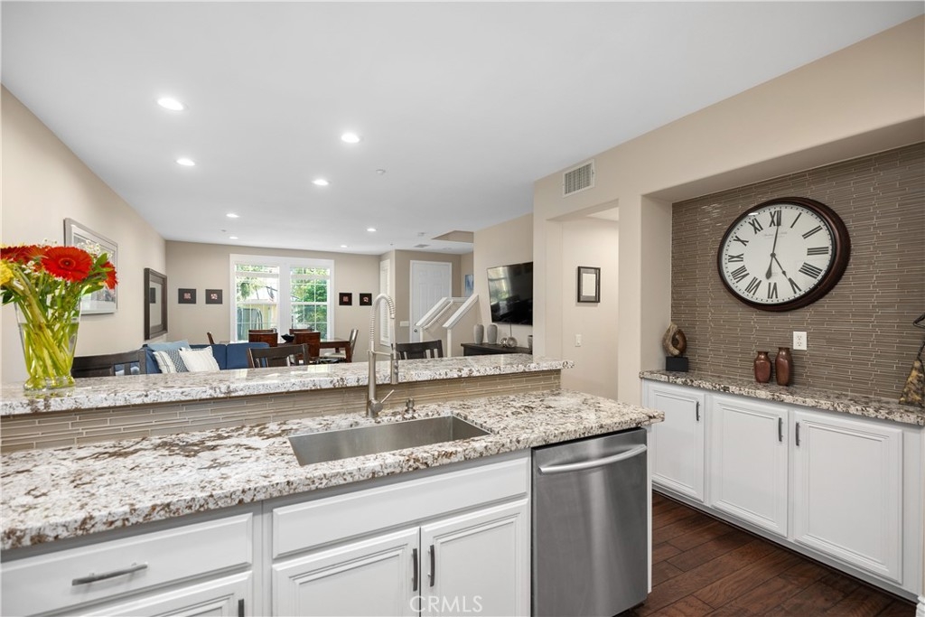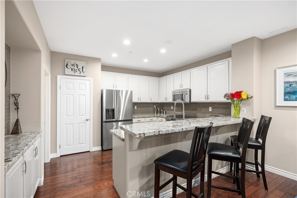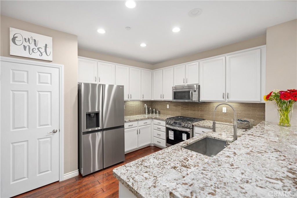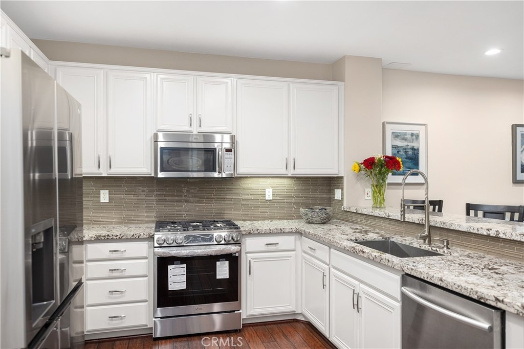Stunning home situated in the highly sought after Davenport neighborhood of Ladera Ranch.This 2 bedroom 2.5 bath plus loft/office condo has approximately 1658 sqft of living space. Step through the front door into a large, light, bright and inviting open floor plan that has cherry style engendered hardwood floors with upgraded baseboard that opens to the dining & living area leading to the highly upgraded kitchen with brand new stainless steel appliances. The designer back splash, granite counters, breakfast bar and farmhouse stainless steel kitchen sink complete the picture. This floor also features a separate laundry area, powder room, pantry and deep under stair closet. Plush neutral colored carpet adds luxury up the stairs to the second floor. At the top is a wonderful loft work space area with ample cabinetry. Matching quartz surface both the the desk top & linen cabinet as well as the main bedroom built in unit. The large main bedroom also boasts a walk-in closet with custom organizer built-ins. Marvel at the gorgeously remodeled ensuite bathroom. Double sinks with quartz countertops and brushed nickel fixtures & fittings ,private toilet, large enclosed walk-in shower and a romantic separate oval tub The large guest bedroom and tastefully remodeled guest bathroom features shower bath combination. This home oozes quality with the attention to detail. The attached double garage has been newly painted and features a brand new heavy duty garage storage system. The 2 car driveway is an added bonus. Known for it’s award winning schools and incredible amenities; 14 pools, a waterpark,,skate park, tennis/pickleball courts, dog park, hiking and biking, clubhouses and picnic and park areas. Come and enjoy all that Ladera Ranch has to offer.