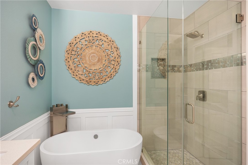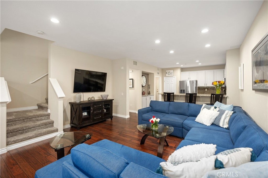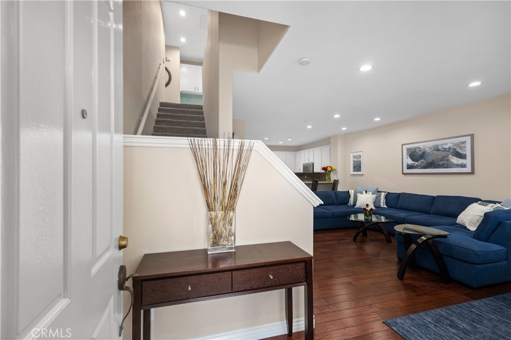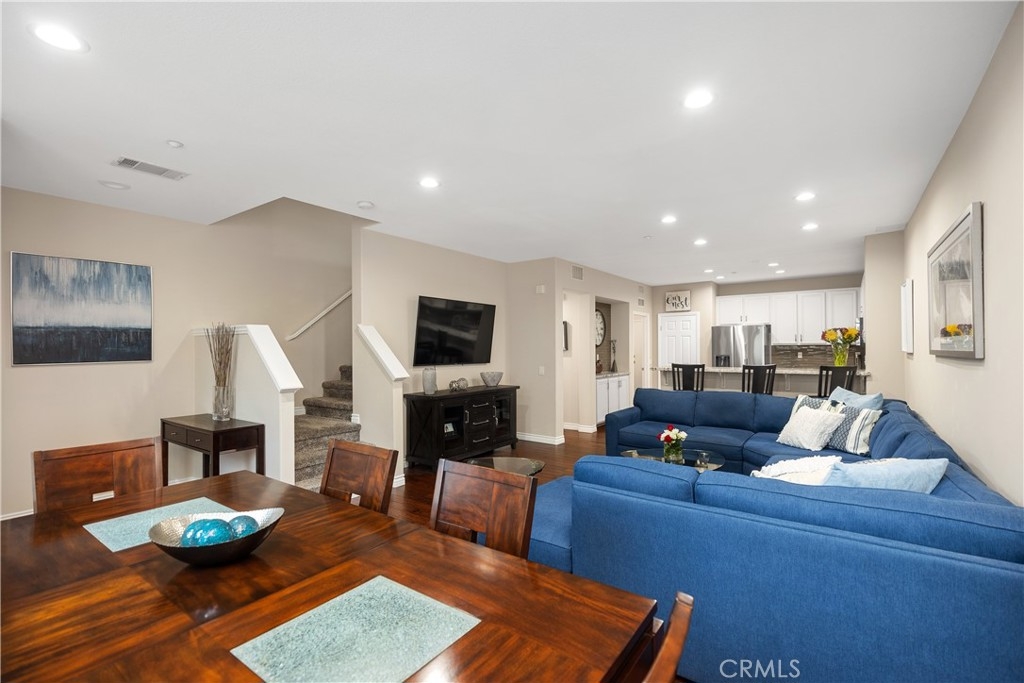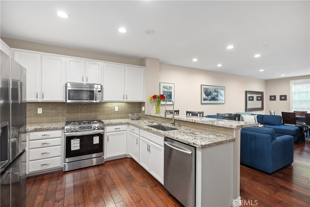 Stunning home situated in the highly sought after Davenport neighborhood of Ladera Ranch.This 2 bedroom 2.5 bath plus loft/office condo has approximately 1658 sqft of living space. Step through the front door into a large, light, bright and inviting open floor plan that has cherry style engendered hardwood floors with upgraded baseboard that opens to the dining & living area leading to the highly upgraded kitchen with brand new stainless steel appliances. The designer back splash, granite counters, breakfast bar and farmhouse stainless steel kitchen sink complete the picture. This floor also features a separate laundry area, powder room, pantry and deep under stair closet. Plush neutral colored carpet adds luxury up the stairs to the second floor. At the top is a wonderful loft work space area with ample cabinetry. Matching quartz surface both the the desk top & linen cabinet as well as the main bedroom built in unit. The large main bedroom also boasts a walk-in closet with custom organizer built-ins. Marvel at the gorgeously remodeled ensuite bathroom. Double sinks with quartz countertops and brushed nickel fixtures & fittings ,private toilet, large enclosed walk-in shower and a romantic separate oval tub The large guest bedroom and tastefully remodeled guest bathroom features shower bath combination. This home oozes quality with the attention to detail. The attached double garage has been newly painted and features a brand new heavy duty garage storage system. The 2 car driveway is an added bonus. Known for it’s award winning schools and incredible amenities; 14 pools, a waterpark,,skate park, tennis/pickleball courts, dog park, hiking and biking, clubhouses and picnic and park areas. Come and enjoy all that Ladera Ranch has to offer.