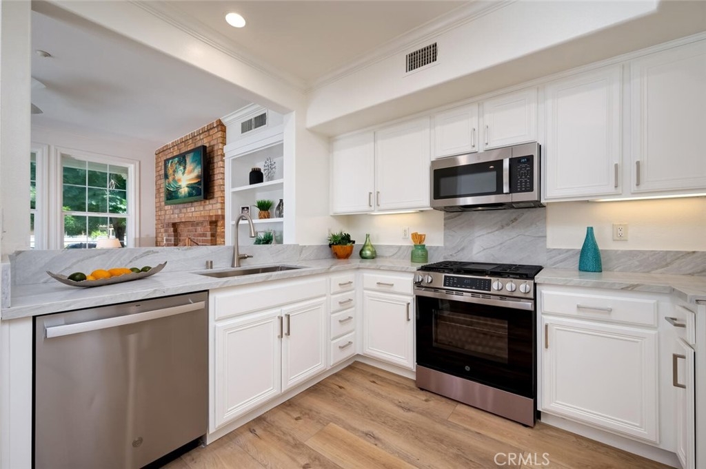Newly Renovated Home in the Heart of Ladera Ranch - Welcome to this beautifully updated 3-bedroom, 2.5-bath home located in the highly desirable community of Ladera Ranch. Perfectly positioned in a central location, this move-in ready property offers a blend of modern upgrades, timeless design, and exceptional convenience. Step inside to discover a light and bright interior featuring a fully renovated kitchen with gleaming quartz countertops, crisp white cabinetry, a new stainless steel sink, and brand-new stainless steel appliances—including a freestanding gas range/oven, dishwasher, and microwave/exhaust fan combo. Adjacent to the kitchen, a custom-built entertainment center and a custom designed weathered brick fireplace surround add warmth and charm to the main living area. Additional highlights include; Elegant crown molding and window casings, Stylish, on-trend luxury vinyl plank flooring, new designer carpet and fresh Simply White paint throughout. Upstairs, the spacious primary suite offers a peaceful retreat with direct access to a private balcony—ideal for morning coffee or evening sunsets. The en-suite primary bath features quartz counters, updated cabinetry, comfortable soaking tub, walk-in shower, and fun designer flooring. Two additional bedrooms, a full hallway bath, and a convenient upstairs laundry room complete the upper level. Enjoy outdoor living on your large, front patio that opens directly onto a beautifully landscaped greenbelt with seating areas—perfect for relaxing, playing, or entertaining. The attached 2-car garage with direct access provides added convenience and security. Just steps from neighborhood parks—without crossing busy streets—you’ll love the proximity to award-winning schools, playgrounds, pools, the famous splash park, local skate park, and the exclusive Covenant Hills clubhouse. Plus, high-speed internet is included in your HOA dues—just one more reason to fall in love with this incredible community. Don’t miss your chance to own this stylish, turnkey home in one of Orange County’s most sought-after neighborhoods. Welcome to Ladera Ranch living at its finest!