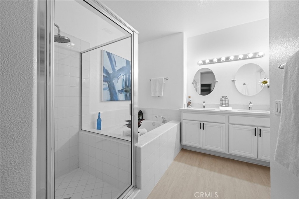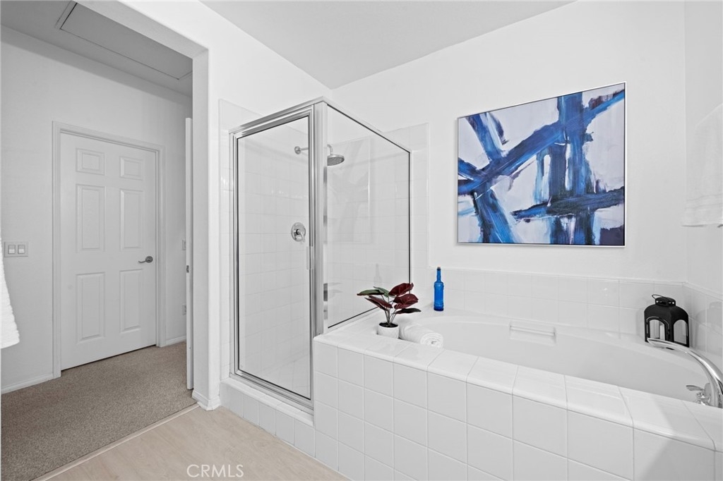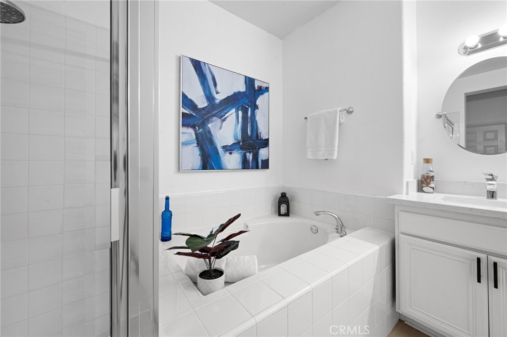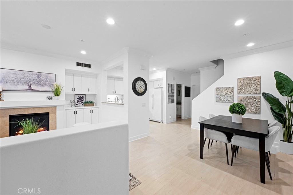 Beautifully upgraded and move-in ready, this stunning townhome is located in the highly sought-after Davenport community. The inviting open floorplan is filled with natural light, showcasing gorgeous luxury vinyl flooring throughout the downstairs areas. The kitchen is a chef’s dream, complete with granite countertops, pristine white cabinets, and plenty of counter space. Each bathroom has been enhanced with quartz counters, designer mirrors, and new fixtures. The spacious master bedroom offers a tranquil retreat, featuring a soaking tub, glass-enclosed walk-in shower, and a large walk-in closet. Plantation shutters and crown molding add an extra touch of elegance, elevating the home to another level. Enjoy added convenience with the included refrigerator, as well as a nearly-new washer and dryer. Relax on your private front porch overlooking a beautifully manicured greenbelt, and benefit from ample garage storage for all your essentials. Recent re-piping throughout the home ensures peace of mind, while extensive community amenities provide a complete lifestyle package—featuring four clubhouses, six pools, seven hiking and biking trails, a water park, skate park, dog park, and more, along with nearby Blue Ribbon award-winning schools. This is the ideal home to enjoy the best of California’s outdoor lifestyle, all in a beautiful, designer-quality setting.