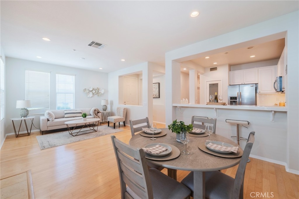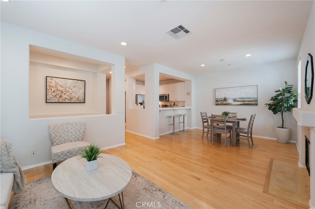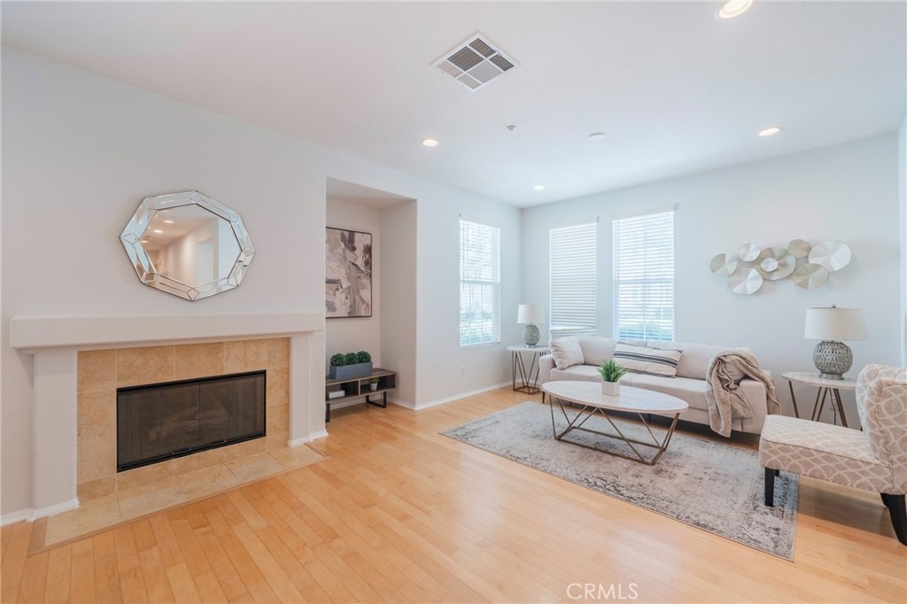 Rare end-unit townhome in the sought-after Davenport community of Ladera Ranch! This private and quiet home offers 3 bedrooms and 3 full baths with a highly functional layout that includes a downstairs bedroom and bath, plus two spacious bedrooms upstairs. The open living area features a cozy fireplace, solid maple wood floors downstairs and custom touches throughout. Recent updates include fresh interior paint and newly installed 12mm waterproof laminate plank flooring on the stairwell and upstairs. The bright kitchen with stainless steel appliances flows seamlessly into the dining area, while the inviting front porch entry welcomes guests with charm. Upstairs, the expansive primary suite impresses with vaulted ceilings, plantation shutters, a sizeable walk-in closet, and a spa-like bathroom featuring dual sinks, a separate soaking tub, and a walk-in shower. An additional upstairs bedroom and bath provide flexibility for family or guests. The convenient upstairs laundry room includes side-by-side washer and dryer hookups plus overhead cabinetry for extra storage. The freshly painted attached garage is the perfect finishing touch. Enjoy all the amenities Davenport and Ladera Ranch have to offer, including multiple pools, splash pads, a water park, playgrounds, BBQ areas, and scenic trails. Founders Park, Creighton Plunge, shopping, dining, and the OC Library are all within walking distance. Community events include concerts, fireworks, farmers markets, and holiday festivals. Cox high-speed internet is included with the HOA. Located within the highly rated Capistrano Unified School District, with elementary and middle schools just minutes away, this home blends comfort, convenience, and lifestyle.