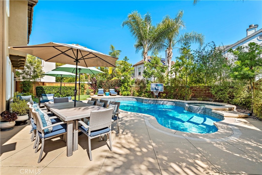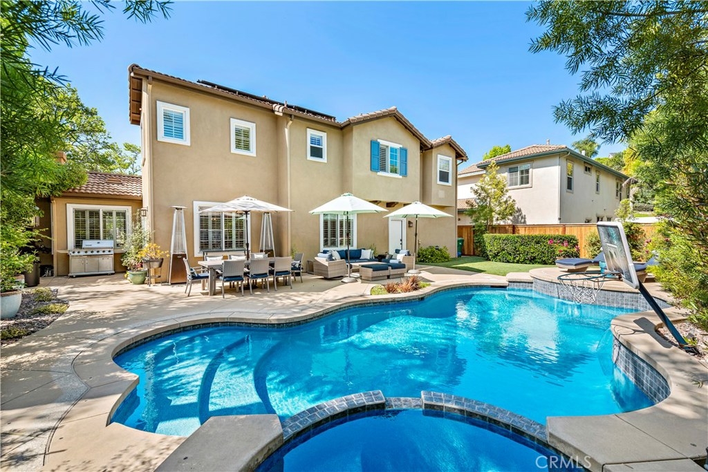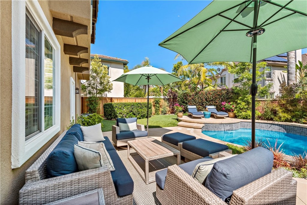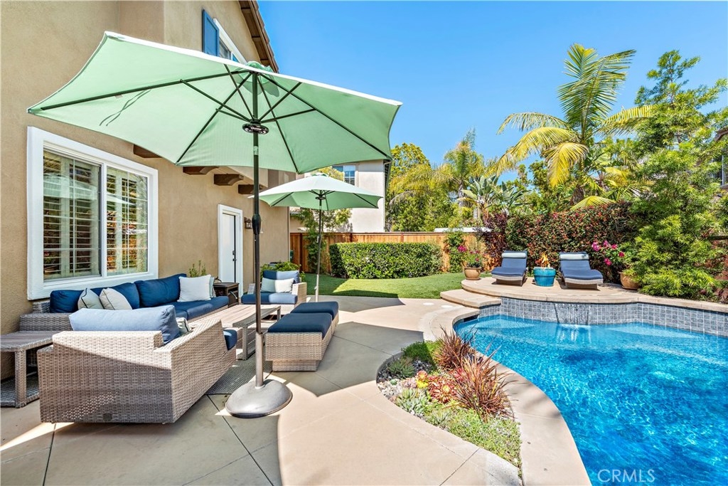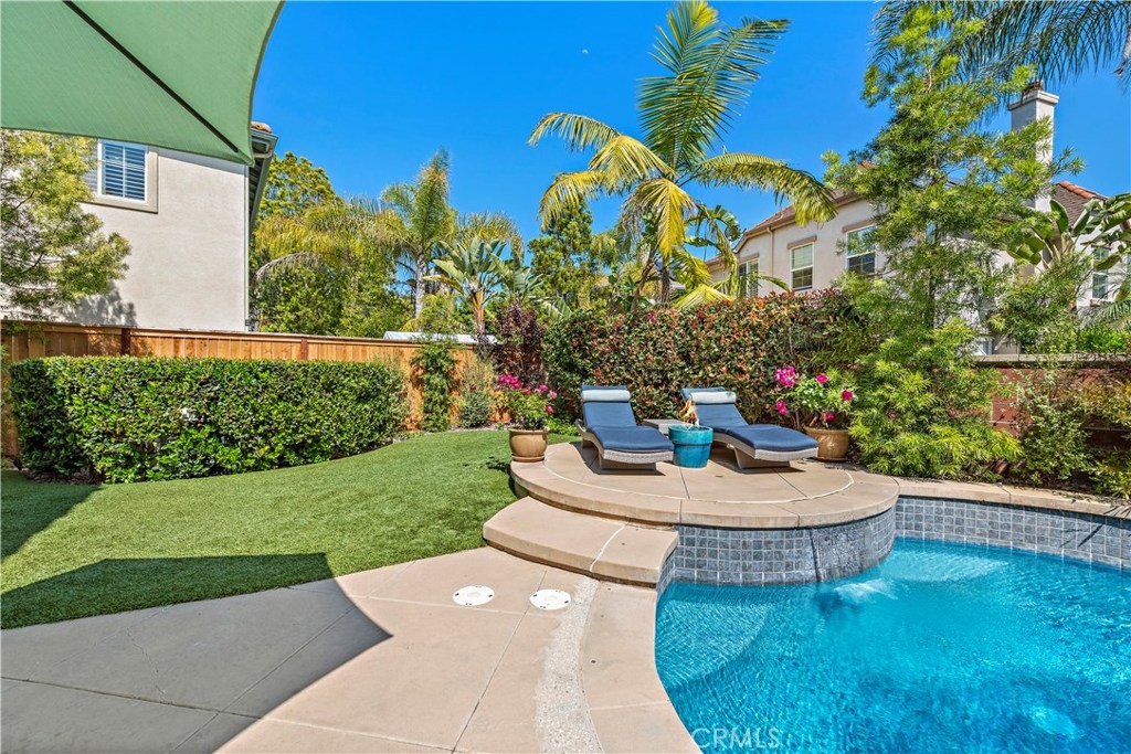 Gracing an active and family friendly locale in the heart of Ladera Ranch, this exceptional Potters Bend home elevates modern living to impressive new heights. Completely Re-Piped with PEX and with OWNED Solar for zero electric bill, this 3BD 2.5BA POOL home showcases sophisticated and forward thinking design. A warm juxtaposition of warm woods and modern materials are featured throughout the home. On the main level, an impeccable kitchen showcases white quartz counters, designer backsplash, and new single basin sink. Sliding doors invite you to an entertainers backyard on a DOUBLE LOT complete with professional hardscape, salt water pool and spa, and synthetic grass for minimalistic design and open to sunset views. Gracing the second floor, a sweeping staircase brings you to 3 spacious bedrooms and a light and bright tech area. Also featured is NEW exterior and interior paint, PEX re-piping, plantation shutters throughout, a cozy fireplace, epoxy garage flooring, engineered hardwood floors, NEW frameless glass master bath shower door, LED lighting throughout, a whole house water filter and water softener system. Walking distance to California distinguished Ladera Ranch Elementary and Middle Schools, Avendale Clubhouse, Library, Dog Park and infamous Founders Park where the hub of Ladera sports and events happen, this home is a must see! HOA includes 24 hour security and COX high speed internet! Plz see 3D tour: https://my.matterport.com/show/?m=WnukmXMyvqu&brand=0