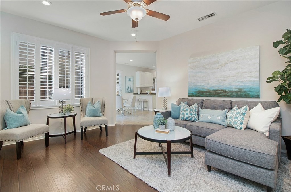 HIDDEN GEM IN THE HEART OF LADERA RANCH! This home has it all- detached condo with 3 bedrooms, 2.5 baths, attached 2 car garage with a full size driveway and a private backyard. Beautiful Plan 1 model boasts a desirable floorplan with an entry way with vaulted ceilings, large living room with picturesque windows, and a large open kitchen that has ample seating in the breakfast nook and at counter/wet bar. With lots of windows throughout, this home is light and bright with an abundance of natural night. Brand new interior paint throughout, newer plantation shutters on every window, re-glazed sinks, and updated lighting fixtures and recessed lighting. Remodeled kitchen with stainless Samsung appliances, including a 5 burner stove, microwave with sensor cooking, and a dishwasher. The upper level features a large landing with a tech center and built in desk, and an enclosed laundry room with storage cabinets. The spacious master bedroom has its own en suite master bath with dual vanities, brand new lighting fixture, separate shower and an oval tub, and a walk in closet with shelves. The secondary bedrooms share a bathroom that has been updated. Enjoy living in the highly sought after Potters Bend Neighborhood of Echo Ridge Village- a fun, friendly neighborhood. Walking distance to award winning schools, dog park, clubhouse with pool, annual summer events at Founders Park, and just steps away from hiking and biking trails. Only 1 HOA, this detached home is a rare opportunity.