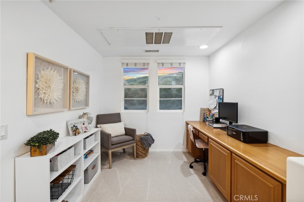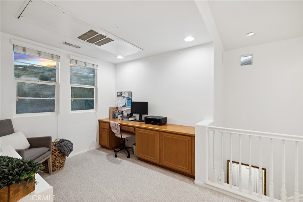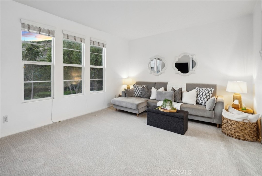 Welcome to 17 Baccus, a charming one-bedroom plus loft condo nestled in the serene community of Ladera Ranch. This meticulously maintained residence offers a perfect blend of comfort and style, ideal for those seeking a cozy retreat in a picturesque setting. Upon entry, you are greeted by an inviting living space adorned with abundant natural light and contemporary finishes including new flooring and paint. The open floor plan seamlessly connects the living room, dining area and kitchen, creating an airy atmosphere overlooking the gorgeous open space adorned with oak trees and mature landscaping. The well-appointed kitchen features ample cabinetry catering to both culinary enthusiasts and casual dining alike. Ascend the staircase to discover the versatile loft space, ideal for a home office, guest accommodation, or additional entertainment area. Retreat to the tranquil bedroom, offering a peaceful sanctuary for rest and relaxation. Ample closet space ensures storage is never an issue, while large windows frame stunning views of the surrounding landscape. The corner lot location offers a private balcony providing the quintessential spot for al fresco dining or enjoying your morning coffee amidst the gentle rustle of trees and the melody of birdsong. Residents of Ladera Ranch enjoy access to a host of amenities, including parks, pools, walking trails, and community events, fostering a vibrant and active lifestyle. Conveniently located near shopping, dining, and entertainment options, as well as top-rated schools, this condo offers an incredible balance of convenience and tranquility. Don't miss the opportunity to make this delightful condo your own and experience the best of Southern California living. Schedule your private showing today!