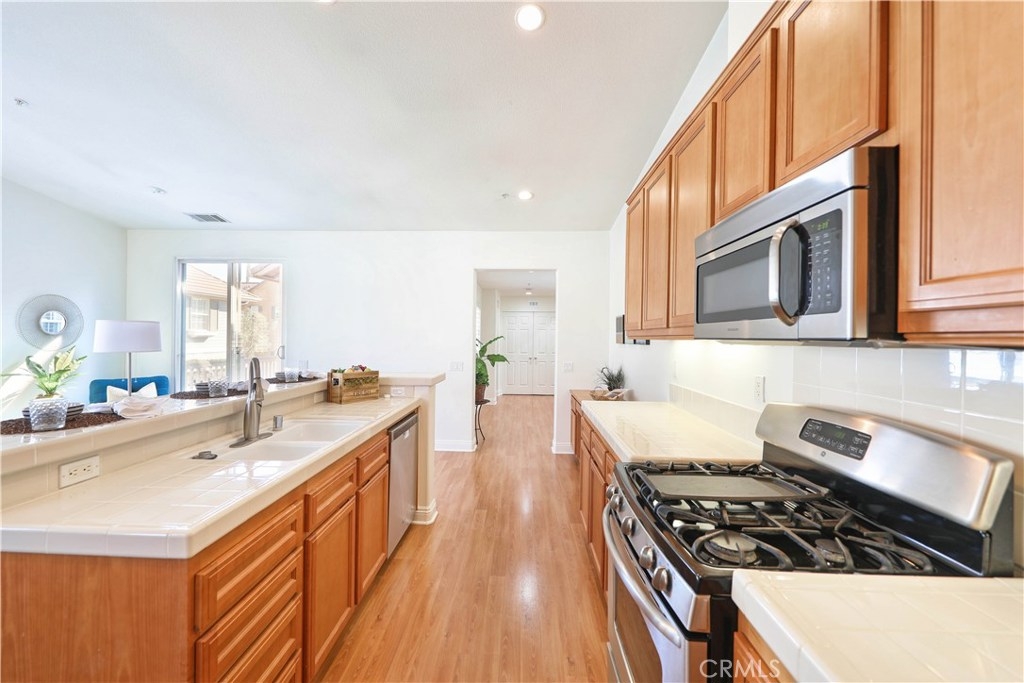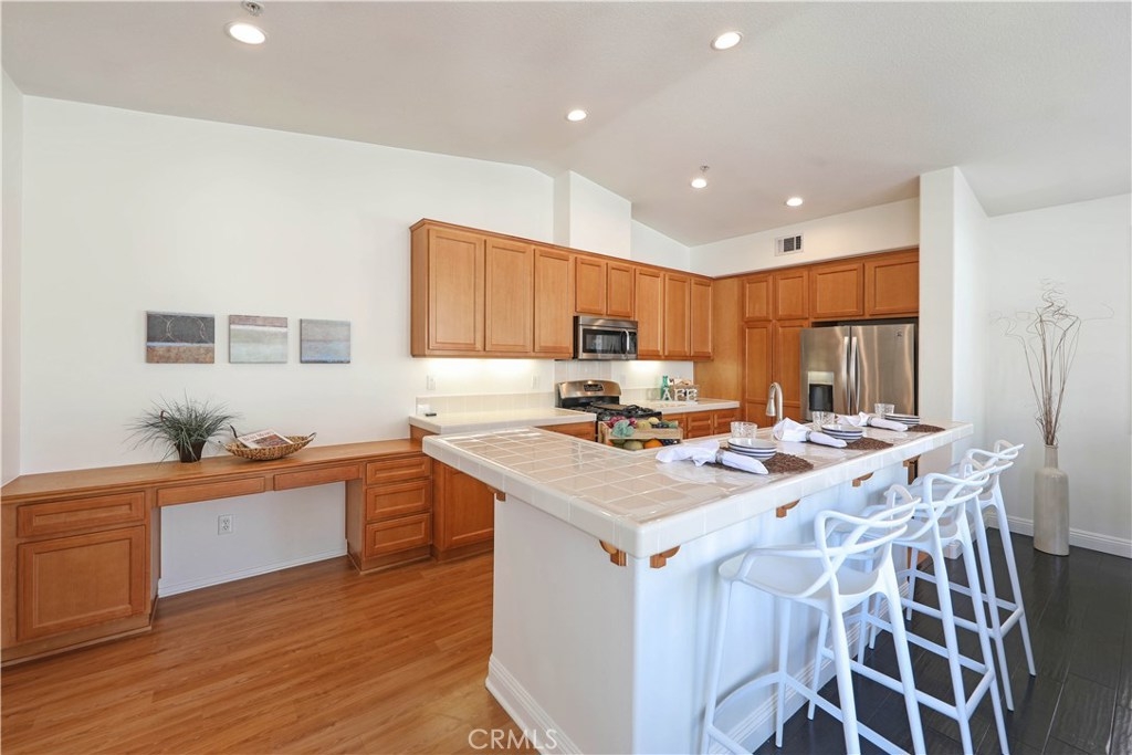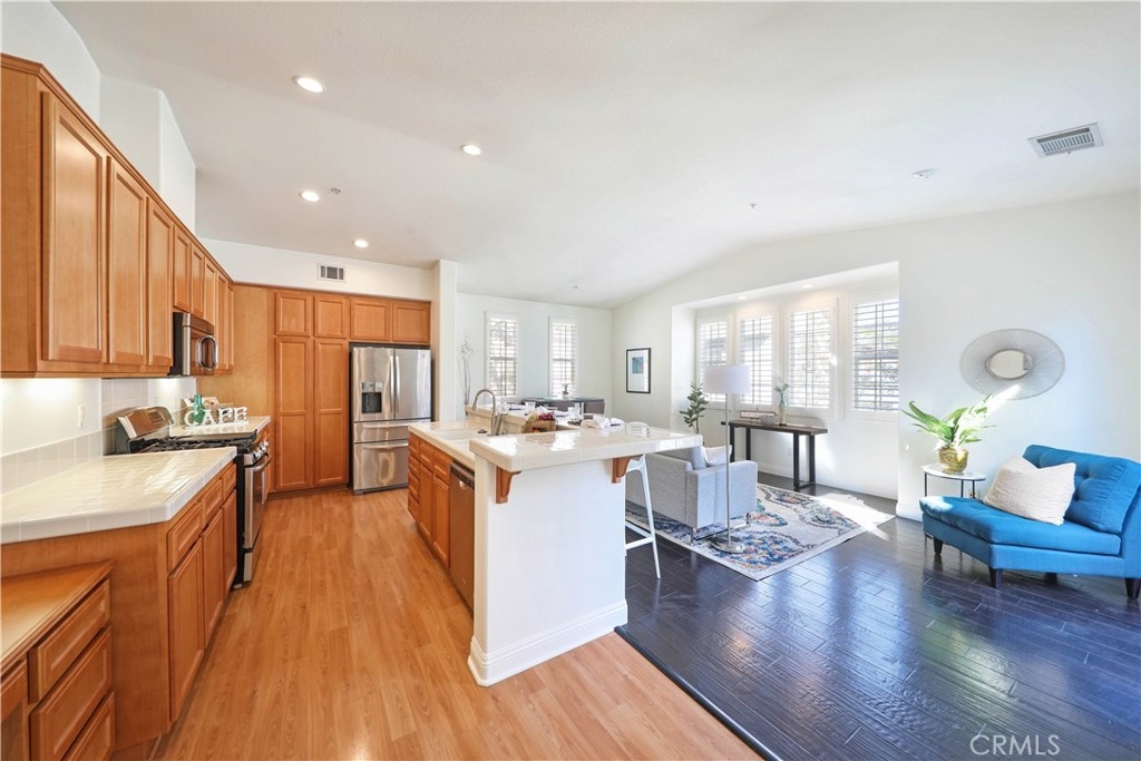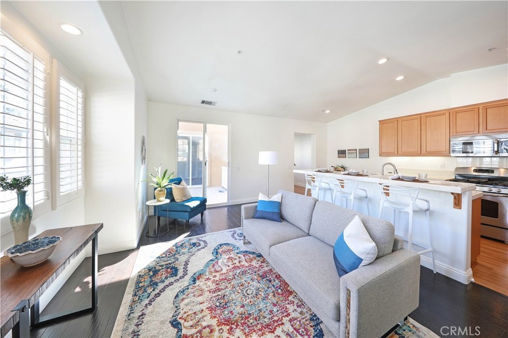 HIDDEN GEM IN THE HEART OF LADERA RANCH! This home offers Penthouse style living all on one floor featuring 1,498 square feet of open living space with 2 bedrooms and 2 full bathrooms. Beautiful hardwood floors throughout, high ceilings, large walk-in closet and lots of windows which make the home light and bright. The oversized kitchen features a long center island with attached bar top and opens directly to the spacious family room and dining area. Sliding doors lead out to the large patio, perfect for BBQ’ing and entertaining guests. The home also includes a full size washer and dryer area, new dishwasher, new nest thermostat and one car garage plus an attached carport. Enjoy living in the highly sought after Ladera Ranch - a fun, friendly neighborhood. Ladera Ranch Elementary and Middle Schools as well as the plunge/pool and tot lot are just a short walk away. Don’t miss out!!!