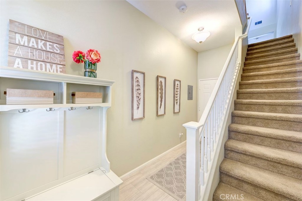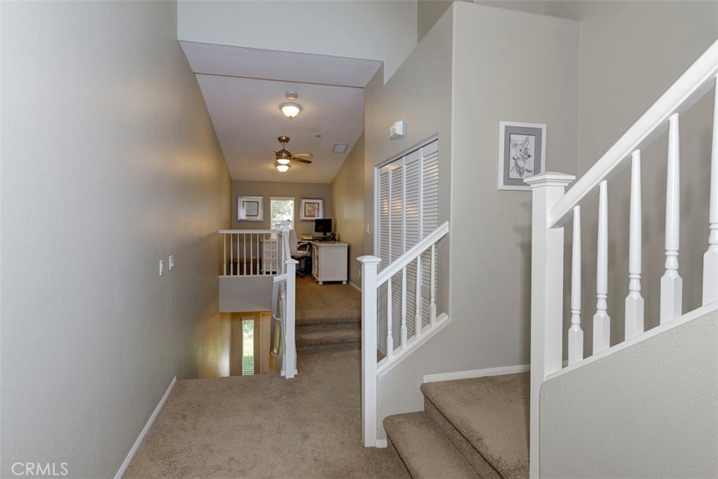 Welcome home to this turnkey townhome in the lovely Sutter’s Mill community of Ladera Ranch! This home features two bedrooms plus a loft, 2.5 bathrooms and 1449 sq ft of living space. The kitchen offers plenty of cabinet space, and features granite countertops, stainless steel appliances, a pantry and an island. The kitchen opens to the dining room and family room for that open concept feel. Lots of windows allow for a naturally light and bright interior. Custom built-ins in the family room complete the modern aesthetics of the house. A balcony off the dining room offers a private setting…and large enough for a BBQ. The guest bathroom is conveniently located on this level. Adjacent to the family room is the loft, which is currently used as an office. An upstairs laundry area is also a plus. Upstairs you’ll find two spacious bedrooms each with its own bathroom. The master bedroom includes a ceiling fan and nook area under the window. The master bedroom also has a walk in closet with built-ins for great organization. The secondary bedroom includes a ceiling fan and mirrored closet doors. You’ll find a modern paint pallet throughout the home enhances the fresh appeal. The home comes with a two car, attached, tandem garage and a driveway. The community offers multiple pools, parks, a skate park, dog park, walking trails and highly rated schools. Shops and restaurants are also in close proximity. Come and take a tour today!