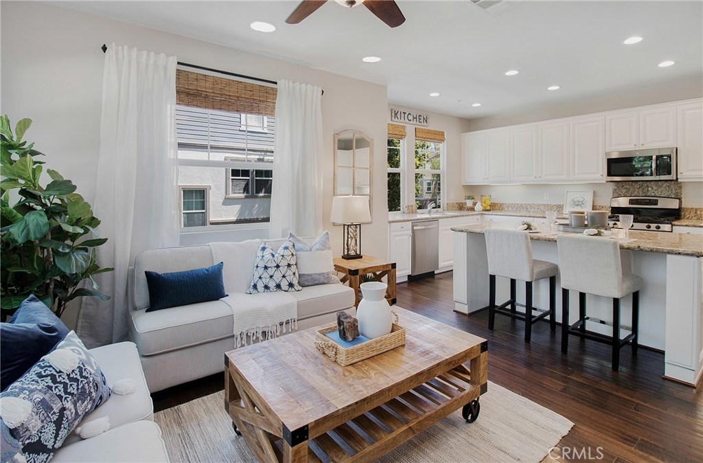 LOCATION! LOCATION! LOCATION! **END UNIT**OVERLOOKING PASEO** This spacious end unit offers an abundance of natural light, beautiful vistas, and 1,761 square feet of living space with 3 Bedrooms and 2.5 Baths. As one of the most sought-after floor plans and locations in Briar Rose, it has cathedral ceilings with a separate formal living room and dining room adjacent to the gourmet-style kitchen and family room. The spacious 2-car garage includes a bonus storage area. The kitchen features a large island perfect for entertaining and is equipped with stainless steel appliances, generous cabinet space, and beautiful granite counter tops. The master bedroom has a walk-in closet and master bath with dual sinks with separate soaking tub and shower. As you tour the home, you will also find many upgrades which include hardwood and tile flooring, newer carpet, decorative wrought iron railings, built-in surround sound in the family room, custom paint, and re-piped with Pex piping. Walking distance to Oso Grande Elementary. Enjoy the award-winning community amenities that Ladera Ranch has to offer!