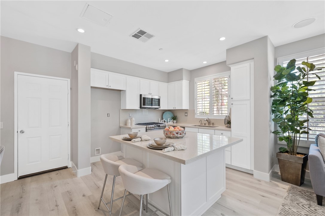 Location! Location! Stunning light and bright 3 bedroom plus loft townhome located in The Sutter's Mill neighborhood of Ladera Ranch. Ideally situated on a corner lot and across from park and nearby pool, this beautifully upgraded home is exceptional in every way and offers a host of amenities. Highlights include new vinyl wood flooring, plantation shutters throughout, custom lighting fixtures, new carpet, designer paint, and large baseboards. The gourmet kitchen has been completely remodeled and has been accented with quartz countertops, new cabinets with soft close drawers, stainless appliances, and re-designed center island that has been enlarged and offers additional seating, which overlooks the family room with fireplace that leads out to the front patio providing the perfect flow for entertaining. Upstairs features 2 spacious secondary bedrooms both with mirrored closet doors, and share a Jack-n-Jill bathroom. The master suite has it's own private balcony with views, along with a with spiral staircase that leads up to the loft which can be used as a home office, exercise room or media nook. The master bathroom is equipped with an oversized walk-in closet, dual vanities, separate shower, and large soaking tub perfect for relaxing. Laundry room is also conveniently located on the second level. 2 car garage completes this incredible home. Ladera Ranch amenities include high speed internet, award winning schools, pools, club houses, tennis, water parks, skate park, community events, and miles of biking & hiking trails. This home is a must see!