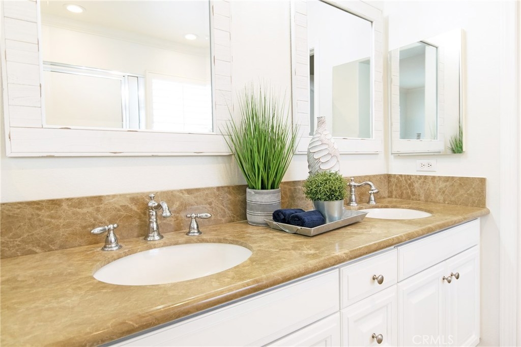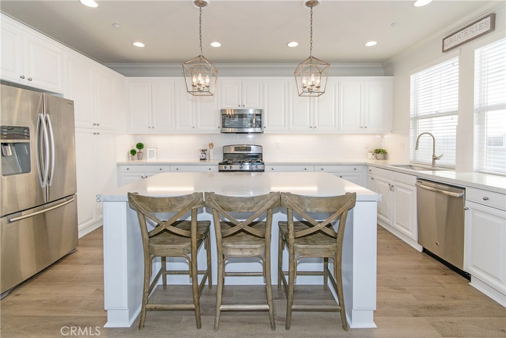 Stunning Briar Rose 3 bedroom 2 1/2 bath end unit - just like a model home! Briar Rose's most desirable plan 3 with spacious open kitchen, large quartz island & ample cabinets. Recently remodeled with luxury vinyl plank floors throughout the home, quartz counter tops, subway tile back splash, shaker style base boards and freshly painted. The house has been re-piped and has a new water heater. Ideal end unit location, ample windows & open floor plan with vaulted ceilings make this property light & bright throughout. Huge bonus storage area in oversized 2 car attached garage. Covered porch is perfect for entertaining. Located close to many of Ladera's amenities including the Paseo & Celestial Plunge. Don't miss the opportunity to take advantage of Ladera's award winning schools, water park, skate park, 4 clubhouses, 10 pools, and many other amenities.