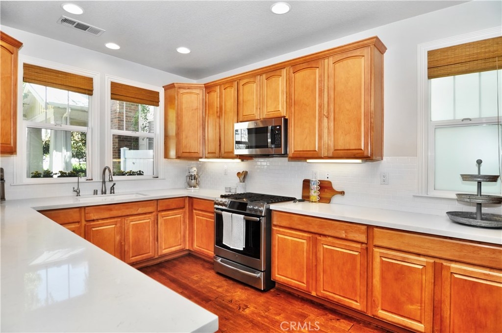 FREESTANDING 3-BED/3-BATH HOME measuring 1,873 square feet in one of the most coveted areas in Ladera Ranch. Great family friendly neighborhood known for holiday block parties, July 4th inflatable water slides and Friday night happy hours while kids play safely in the streets, parks and pools. Equipped with 100% owned solar. Recent kitchen updates include white quartz counter tops, new fixtures and sink, decorative subway tile back splash and stainless steel appliances. The spacious kitchen opens to a large dining area and separate family room with built-in-media and cozy fireplace. The large upstairs master suite includes a walk-in closet and double vanities, plus oversized soaking tub. Two large secondary bedrooms, desk niche and laundry room complete the upstairs. Quality finishes include new wood floors, upgraded tiles, new carpet, custom window blinds, crown molding, and a wrought iron staircase. The private side yard features natural stone hardscape and built-in gas barbecue plus outdoor fridge. Brand new exterior paint. Epoxy flooring and built-in storage in the 2-car garage. Water softener and reverse osmosis kitchen faucet. Nearby access to several of Ladera Ranch's wonderful amenities: neighborhood pools, open park space, tot-lot playground, water park, skate park, dog park, club houses, miles of walking trails and award winning schools (Oso Grande Elementary, Ladera Ranch Middle and San Juan Hills High). Free high speed internet also included with the HOA.