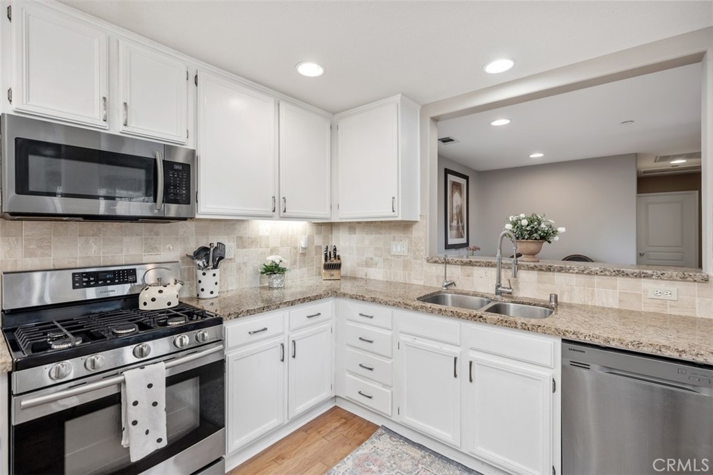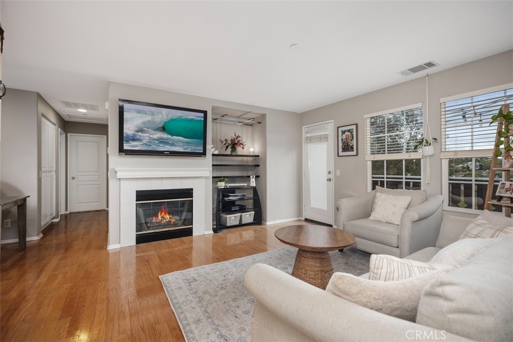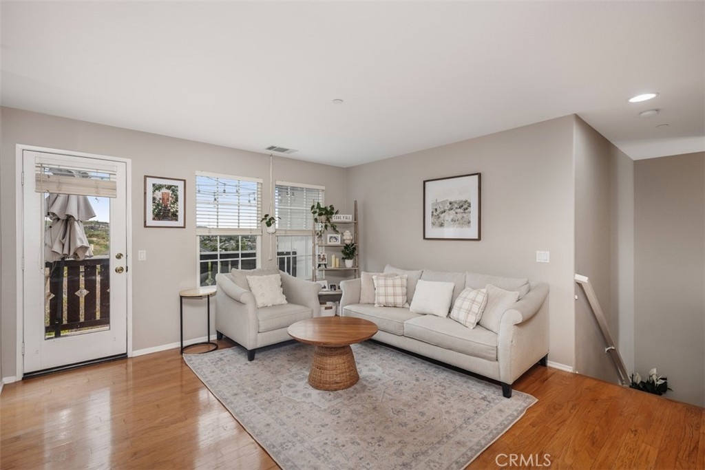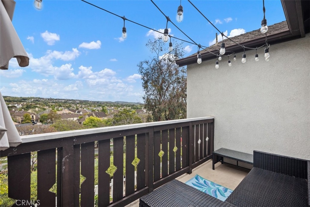 Charming Tudor-style home located in the highly sought-after Three Vines community of Ladera Ranch. Set in a serene hillside location with beautiful views, this move-in ready residence offers a spacious and thoughtfully designed floor plan featuring two large bedrooms and a versatile den on the main level—ideal for a home office or additional living space. The open-concept interior is enhanced by rich hardwood flooring, custom designer paint, and recessed lighting throughout. A bright dining area seamlessly connects to the welcoming family room with a cozy fireplace, while the expansive kitchen impresses with stainless steel appliances, sleek white cabinetry, granite countertops, and a stylish tumbled stone backsplash—perfect for everyday living or entertaining guests. Upstairs, the generous primary suite showcases picturesque views, a walk-in closet, and a luxurious en-suite bath complete with dual sinks, quartz countertops, white cabinetry, a soaking tub, and ceramic tile flooring. The second bedroom also includes a walk-in closet and a full bathroom with a quartz-top vanity. Enjoy the outdoors on your private patio—perfect for relaxing or dining under the stars. Additional features include an upstairs laundry room and a 2-car attached garage. Living in Ladera Ranch means enjoying a lifestyle rich in amenities, including award-winning schools, high-speed Cox internet, multiple pools and spas, parks, clubhouses, a water park, tennis and volleyball courts, community events like concerts in the park, and miles of scenic walking and biking trails.