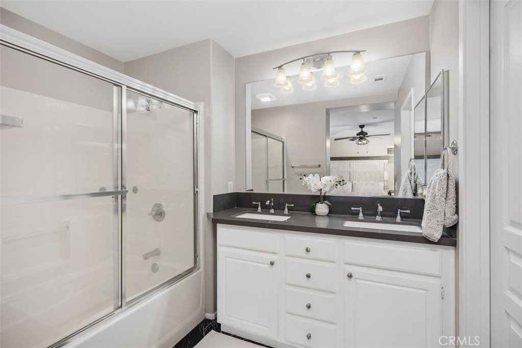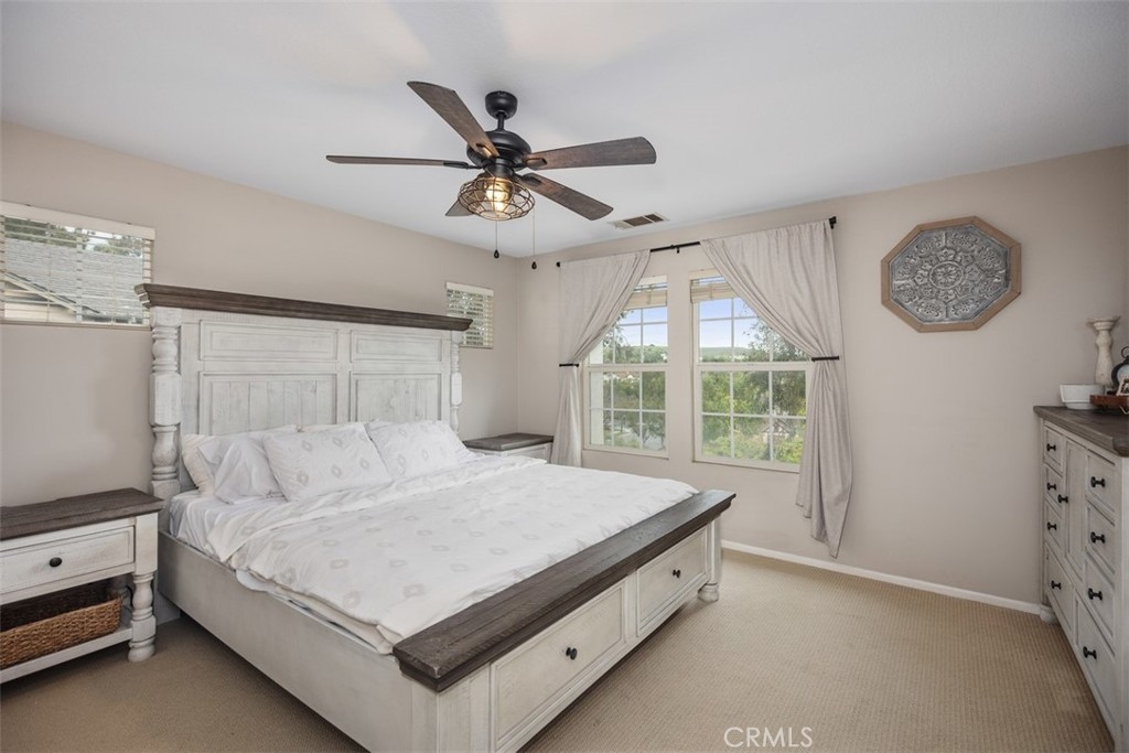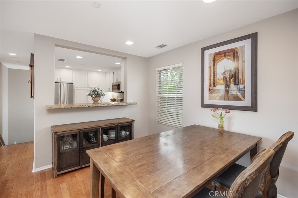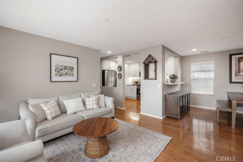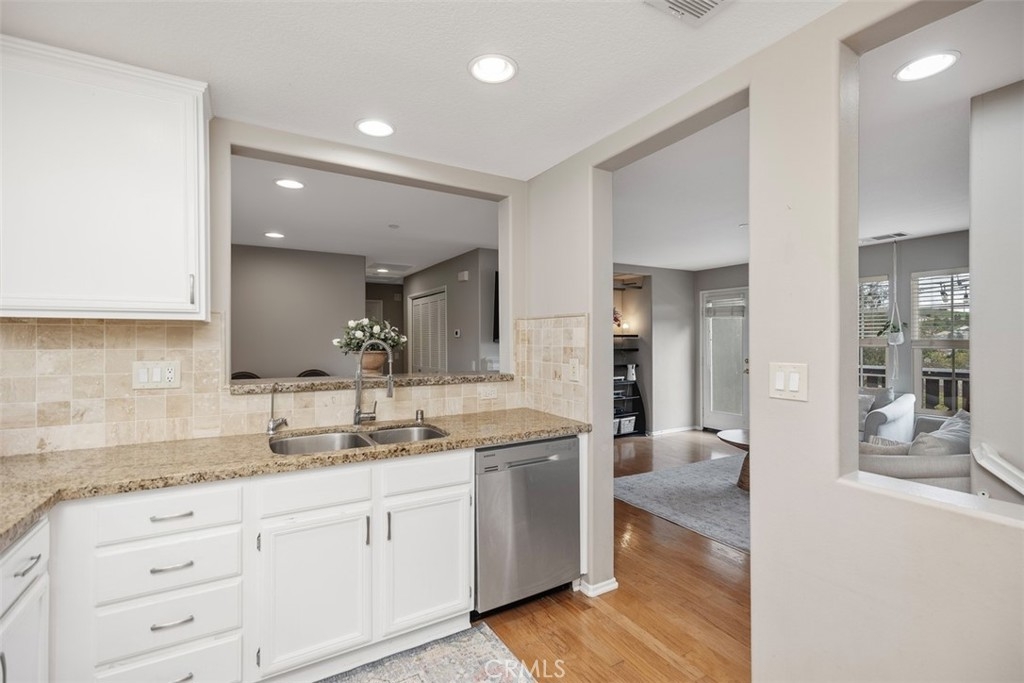 Charming Tudor-style home located in the highly sought-after Three Vines community of Ladera Ranch. Set in a serene hillside location with beautiful views, this move-in ready residence offers a spacious and thoughtfully designed floor plan featuring two large bedrooms and a versatile den on the main level—ideal for a home office or additional living space. The open-concept interior is enhanced by rich hardwood flooring, custom designer paint, and recessed lighting throughout. A bright dining area seamlessly connects to the welcoming family room with a cozy fireplace, while the expansive kitchen impresses with stainless steel appliances, sleek white cabinetry, granite countertops, and a stylish tumbled stone backsplash—perfect for everyday living or entertaining guests. Upstairs, the generous primary suite showcases picturesque views, a walk-in closet, and a luxurious en-suite bath complete with dual sinks, quartz countertops, white cabinetry, a soaking tub, and ceramic tile flooring. The second bedroom also includes a walk-in closet and a full bathroom with a quartz-top vanity. Enjoy the outdoors on your private patio—perfect for relaxing or dining under the stars. Additional features include an upstairs laundry room and a 2-car attached garage. Living in Ladera Ranch means enjoying a lifestyle rich in amenities, including award-winning schools, high-speed Cox internet, multiple pools and spas, parks, clubhouses, a water park, tennis and volleyball courts, community events like concerts in the park, and miles of scenic walking and biking trails.
