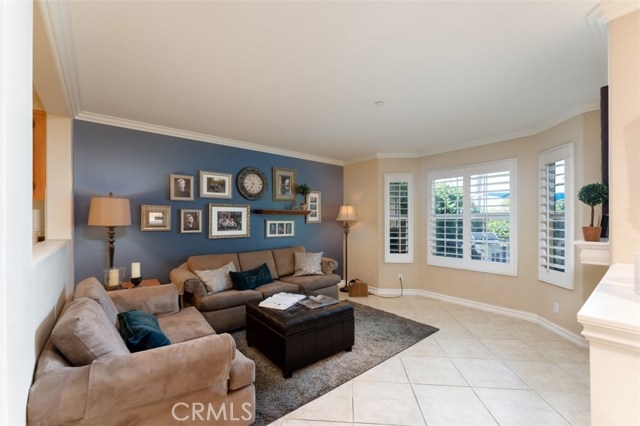 Clean, quiet condo in Ladera Ranch! Three bedroom two and a half bath home with an attached double car garage, just waiting for new owners. The living area is open and bright with a neutral paint scheme, and neutral colored tile floors. Large pass through window between the kitchen and living area gives the two sections their own distinct space, while remaining open at the same time! Nice sized kitchen with plenty of tile counter tops, and a pantry for all your storage needs. Upscale plantation shutters throughout for added privacy. Base and crown molding throughout. Neutral carpet in the bedrooms, which are all located upstairs. Private, fenced patio area surrounded by shrubbery for a secluded, warm feel. Plenty of space for a BBQ, patio table, or outdoor living area. This unit is one of the few with a view. Come enjoy all that Ladera Ranch has to offer! This condo will not last! Act fast!