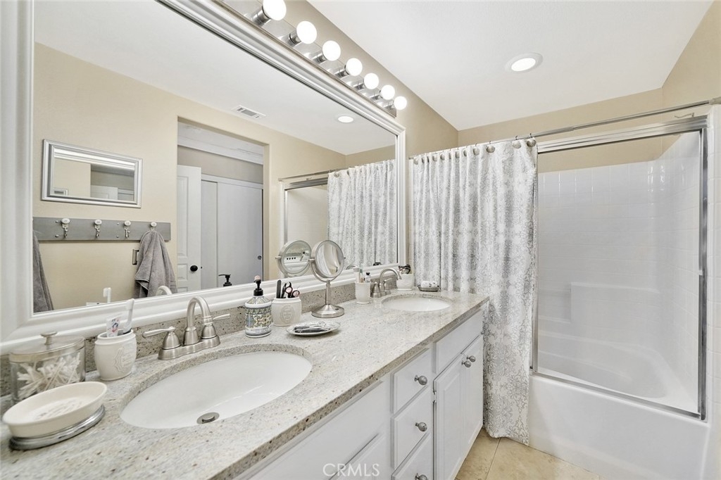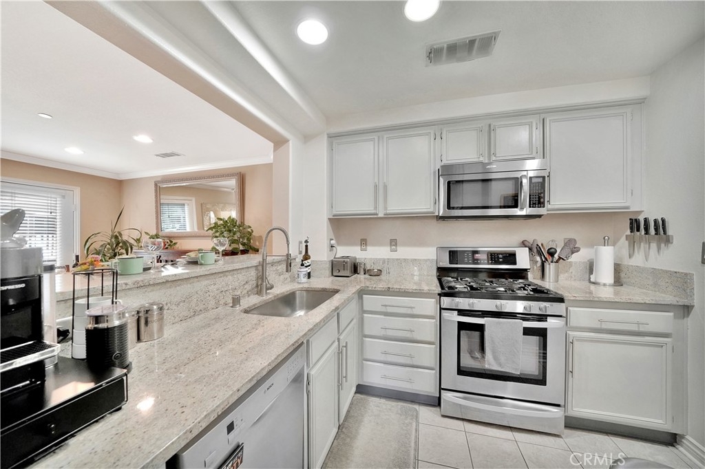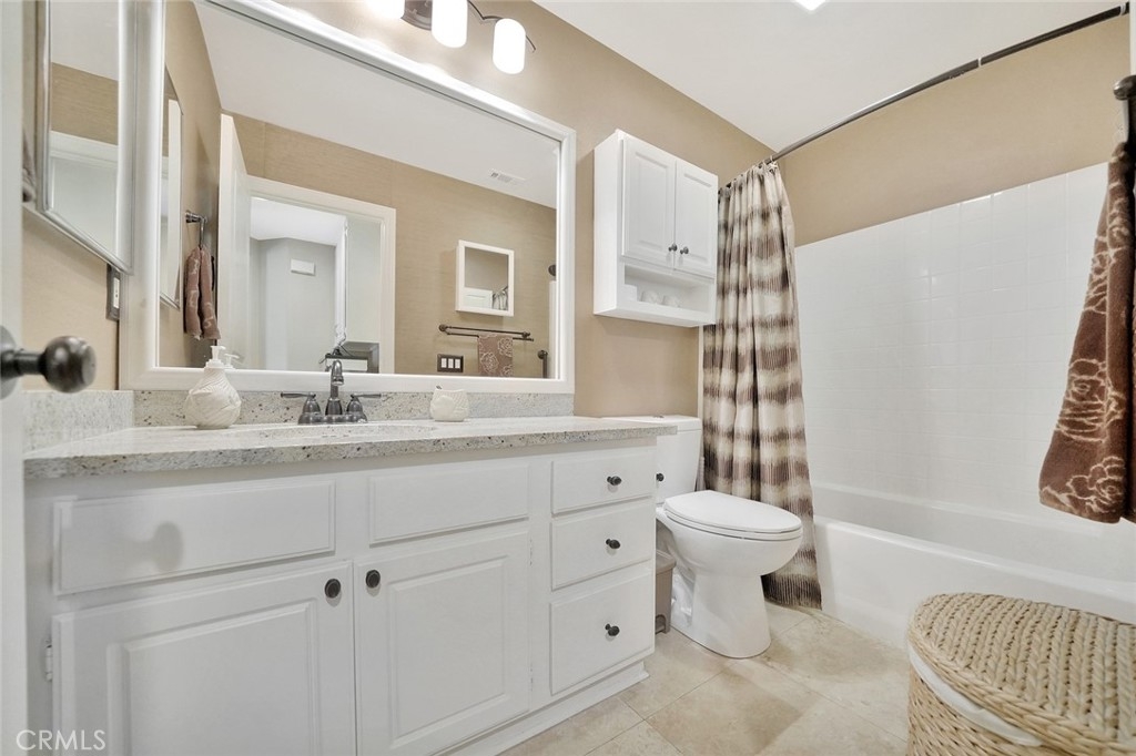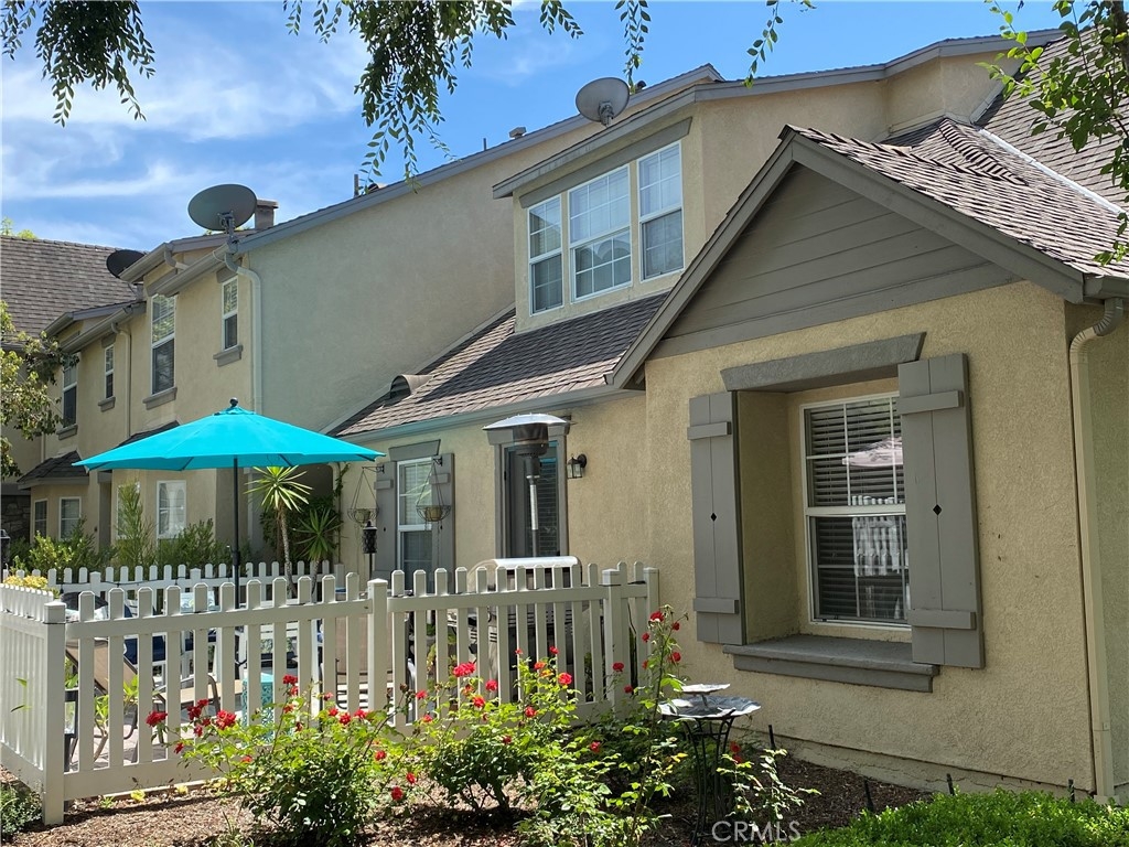 A lovely quiet private tree-lined community awaits you in Three Vines. The location for this home is ideally and highly desirable with a sidewalk front entrance, side entry garage, and courtyard patio. This is a Wonderful floor-plan with Master downstairs and a secondary bedroom, plus a fullsized loft converted to a bedroom with a closet and storage plus bath upstairs. Essentially this has two Master bedrooms. The kitchen has been upgraded with stone counters and a built out breakfast bar. Built-in's in the loft with home office space and storage. Only a short walk to schools parks and recreation areas. Enjoy the California lifestyle walking to Chapparal Park or the many areas of recreation and only minutes to the 405, the 5 or the 241 making this an ideal location for commuters. The patio has a lovely garden and fenced all around for pet or child security. With added storage units in the garage, this home is ready for your active lifestyle.