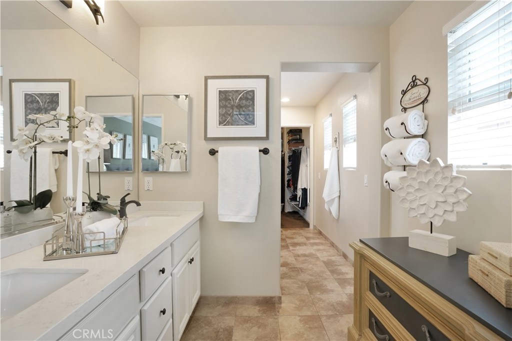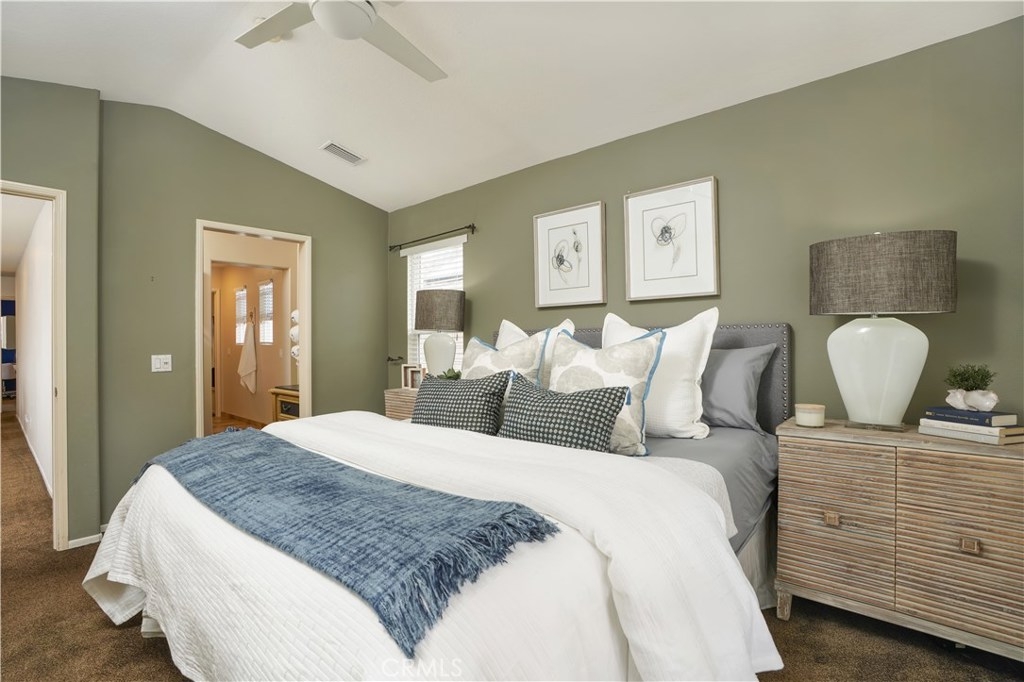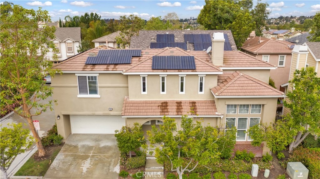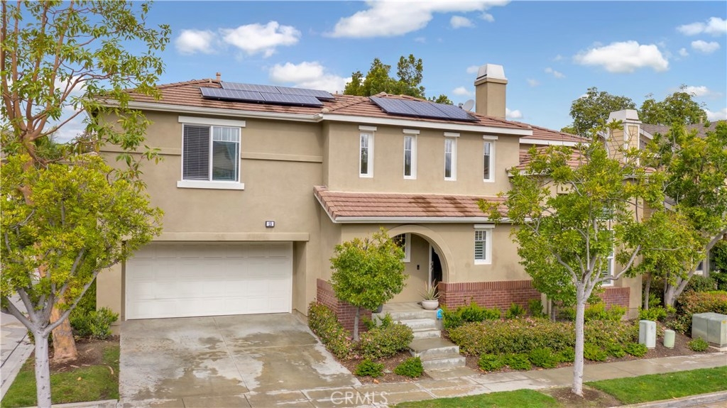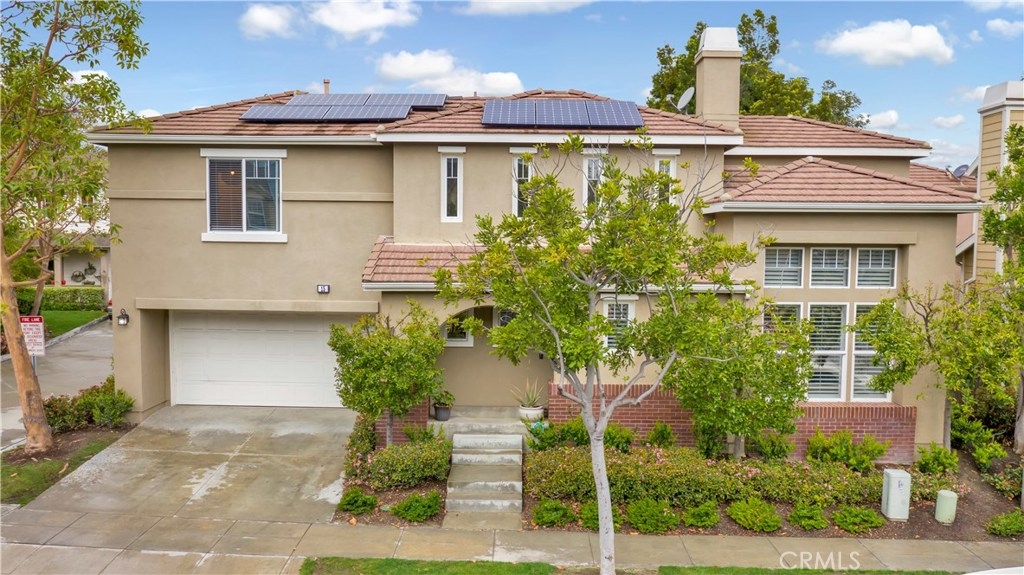 PRICE REDUCED!! This elegant home has it all! Corner & free standing, full driveway in the popular Trails community! Lovely curb appeal,you will love the beautiful living room w/ vaulted ceiling, lots of natural light coming through oversized windows, plantation shutters, built-in cabinets, laminate wood planks flooring, stunning fireplace w/ stone surround. The L/R is open to the dining room,flowing to the gorgeous kitchen featuring white cabinets, glass doors to showcase your china, hardware, quartz countertop & sliding door to give you a view of the backyard. Past the kitchen is a separate laundry room w/ builtin cabinets. A guest bath is conveniently located by the front door. At the top of the stairs, walk into the inviting master bedroom w/ an accent wall, ceiling fan & fixture. Master bath features 2 sinks, new quartz countertop, good size bath tub/shower & large W/I closet. There is a quaint office space w/ a built in desk in the hallway. 2 adorable secondary bedrooms share a jack & jill bath. Low maintenance backyard is perfect for entertaining & for the dog, kids to play in! 2 car garage has more storage. Leased solar w/ smart battery back-up will save you thousands in power bills, entire home has been repiped, new A/C installed last year & water R/O system will stay! Walking distance to a comm pool, clubhouse & parks.Ladera has top notch schools and amenities inc 10+ pools, clubhouses, walking/biking trails, parks & events throughout the year!