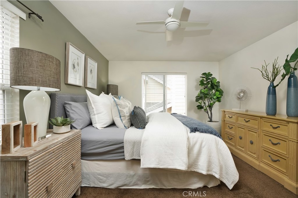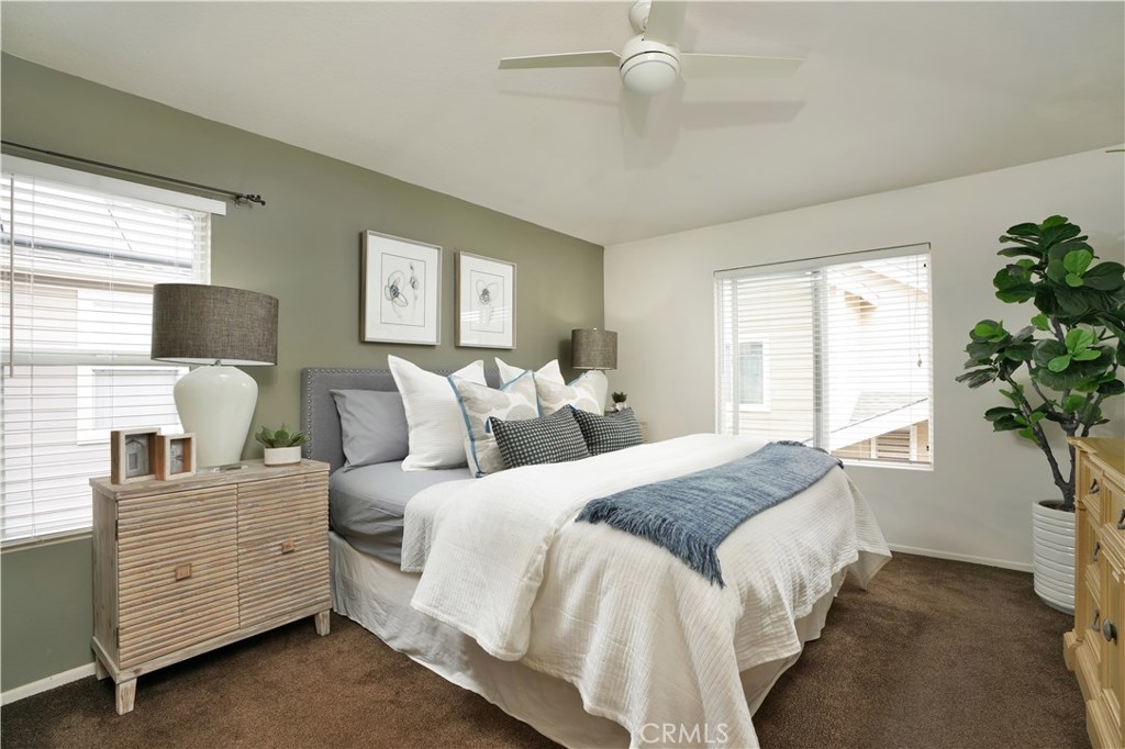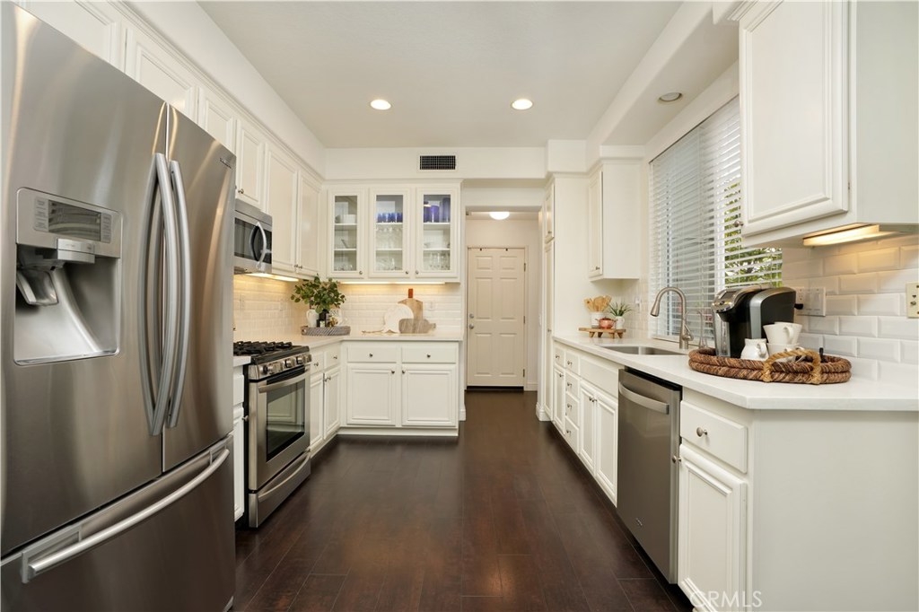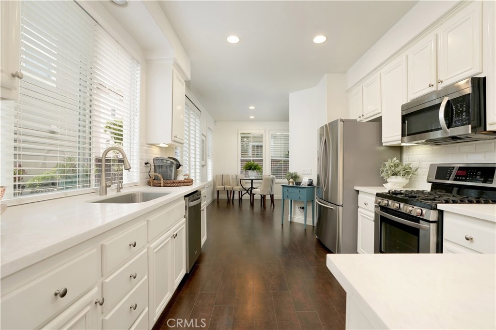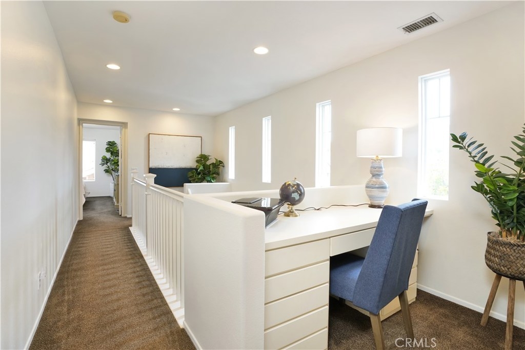PRICE REDUCED!! This elegant home has it all! Corner & free standing, full driveway in the popular Trails community! Lovely curb appeal,you will love the beautiful living room w/ vaulted ceiling, lots of natural light coming through oversized windows, plantation shutters, built-in cabinets, laminate wood planks flooring, stunning fireplace w/ stone surround. The L/R is open to the dining room,flowing to the gorgeous kitchen featuring white cabinets, glass doors to showcase your china, hardware, quartz countertop & sliding door to give you a view of the backyard. Past the kitchen is a separate laundry room w/ builtin cabinets. A guest bath is conveniently located by the front door. At the top of the stairs, walk into the inviting master bedroom w/ an accent wall, ceiling fan & fixture. Master bath features 2 sinks, new quartz countertop, good size bath tub/shower & large W/I closet. There is a quaint office space w/ a built in desk in the hallway. 2 adorable secondary bedrooms share a jack & jill bath. Low maintenance backyard is perfect for entertaining & for the dog, kids to play in! 2 car garage has more storage. Leased solar w/ smart battery back-up will save you thousands in power bills, entire home has been repiped, new A/C installed last year & water R/O system will stay! Walking distance to a comm pool, clubhouse & parks.Ladera has top notch schools and amenities inc 10+ pools, clubhouses, walking/biking trails, parks & events throughout the year!