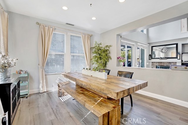 3D VIRTUAL TOUR AVAILABLE. Enjoy the upgraded kitchen, with a large island, in this three bedroom home - the largest model of four in the Trails Neighborhood in Oak Knoll Village. PRIME LOCATION: This corner lot, detached home is situated directly across the street from the neighborhood pocket park! The home faces East providing afternoon sun in the yard - featuring a pergola over a patio large enough for a dedicated seating area and outdoor dining, plus grassy area for play that wraps around to a small side area perfect for gardening. The remodeled kitchen is complete with all stainless steel appliances, quartz counter for the island, and a concrete like counter and sink with tile backsplash. Just off the kitchen is a built-in desk/study area followed by a large dinning room. The living room features extra tall ceilings which brings a great amount of light into the living area. Newer light grey/wood tone flooring throughout most of the home. At the top of the stair landing there is an additional, larger built-in work/study space and two bedrooms with a jack and jill bathroom. The hall leading to the master suite provides the buyer the OPTION TO ADD A LOFT OR ADDITIONAL BEDROOM! The master bedroom features a separate tub and shower, dual vanities, and a large walk-in closet. The laundry room is also conveniently located on the second floor. Plumbing for home has been re-routed, so no pipes remain in the foundation. A must see in a great neighborhood!