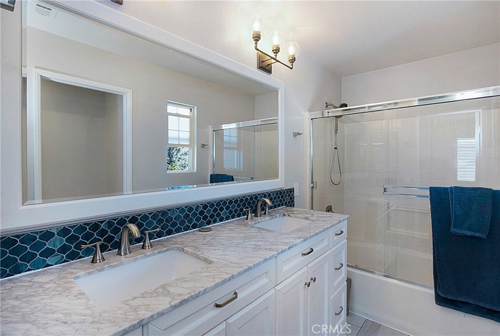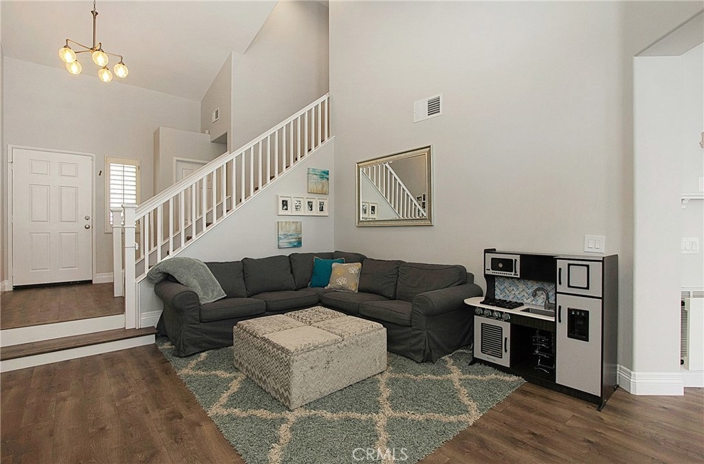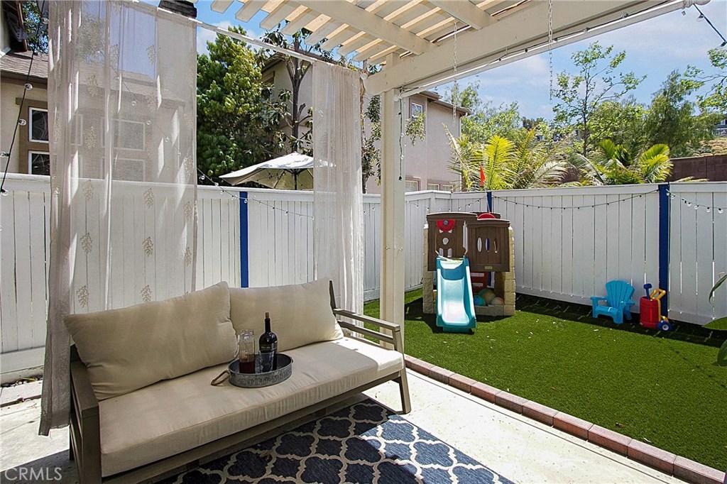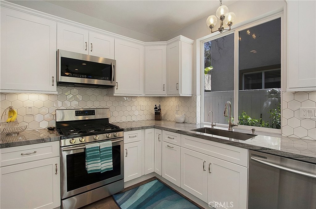 Completely remodeled 3-bedroom home in Ladera Ranch is a must see. This detached home features high ceilings, expansive windows, shutters, gas fireplace, a family kitchen with a breakfast nook, and large pantry. Remodeled kitchen with quartzite countertops, tile backsplash, custom wood cabinetry with soft-close hinges, and Culligan reverse osmosis water filter system. Natural light and sliding door to the spacious backyard with low-maintenance artificial turf and pergola. Home remodel added Luxury Laminate Wood Flooring by Pergo, custom tile flooring in bathrooms, re-piped with Pex piping, Culligan water softener unit, LED lights, Nest Wifi thermostat, all new paint and new stainless steel appliances. The second level features large closet, a convenient laundry room with cabinets, and three bedrooms. The Master Suite has en suite bath, large dual vanity with marble countertops, custom glass tile backsplash, and large walk-in closet. Hidden Gem - 2-car garage with driveway, private backyard, new family kitchen and appliances, top rated schools, energy-saving inexpensive Solar Lease from Sunrun which will dramatically reduce your electrical cost for cool summers. This home is less expensive than other Ladera homes due to 1 HOA payment (condos have 2) and lowest Mello Roos tax rates in Ladera Ranch. Walk to Oak Knoll Clubhouse with 2 resort pools, splash play area or enjoy Ladera's 13 pools and plunges, dog park, clubhouses, hiking trails, skatepark, and waterpark.