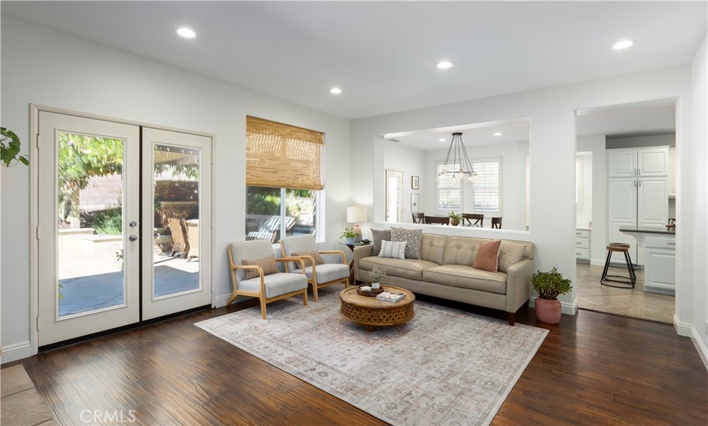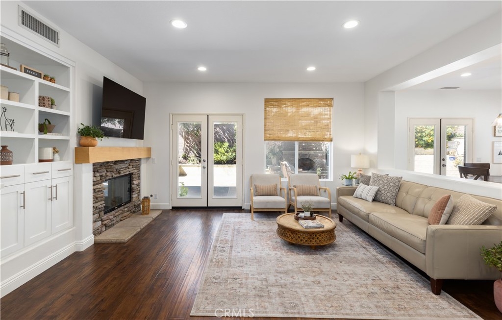 A HIDDEN GEM IN ALL OF LADERA RANCH! This detached home offers the largest floorplan in the desirable Trails neighborhood with a large oversized lot that features a built in outdoor fireplace, tranquil fountain, covered patio, and a custom designed garden slope with native California plants, an abundance of fruit trees, and a private sunning area to enjoy the afternoon sunlight and breezes. Remodeled throughout from floor to ceiling, including new Pex piping, a brand new water heater, custom paint, new light fixtures and hardwood flooring throughout. A true four bedroom home, this Sage Brush model (built by John Laing Homes) features a large first level living area with a family room with a stone fireplace, built in niche, and French door entry to backyard. The large family kitchen features Bosch stainless steel appliances, white cabinetry, ample counter and storage space, pantry, and a center island. Enjoy the light morning sun and privacy that this kitchen provides! Featuring newer windows, plantation shutters, a built in desk area and a large dining area that can also be used as a separate sitting area. The second level living area has one of the most sought out designs in Ladera Ranch. Builder upgraded to enclose the open space and create a 4th bedroom. The spacious master suite features a spa-like master bath with a separate tub and shower, dual vanities and a walk in closet. The large secondary bedrooms share a Jack n Jill bathroom. Professionally designed and updated throughout with up to date neutral colors and decor. Located on a corner lot and tucked away from street traffic, this home is truly a HIDDEN GEM! Large detached home with 2001 square footage of living space, an oversized lot, only 1 HOA, and one of the lowest Mello Roos in all of Ladera Ranch. Don't miss this UNIQUE AND DISTINCTIVE HOME with fruit trees that include plantain, lime, peaches, pomegranate, naval orange, and mandarin orange.