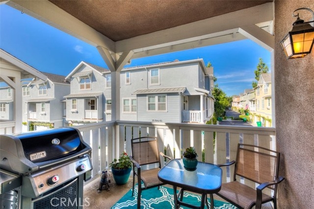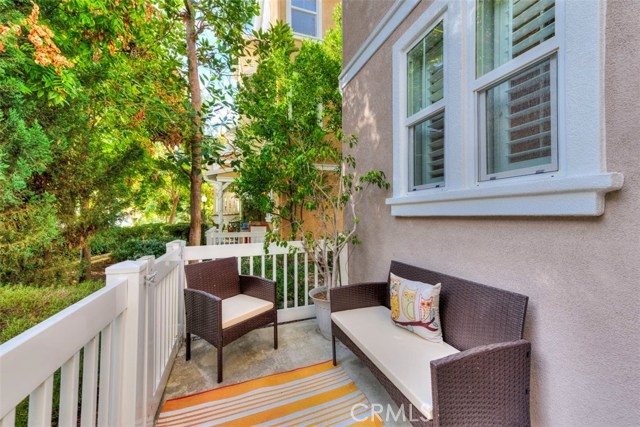 Gorgeous views and brisk breezes astonish in this 2 bedroom + office niche, 2 bath condo. Upgraded with neutral wood grain laminate throughout and Plantation Shutters. Wonderful floor plan with a large family room accented by a cozy fireplace and tree top views. The kitchen has been upgraded with stainless steel appliances, granite counter tops and white wood cabinetry. Dining area is open to the balcony, great for afternoon BBQ's or sunset relaxing. 2 private master suites and linen storage complete the upstairs. 2 car direct access garage parking add to this wonderful home. Enjoy Ladera Ranch parks, pools, skate park, water park, basketball & tennis courts, hiking & biking trails and a walk on the paseo. Cox high speed internet included in the HOA dues. Get in quick before its gone!