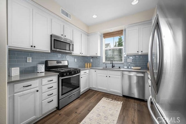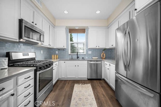Executive 1BR/1.5BA Townhome in Ladera Ranch – Upgraded & Move-In Ready. Beautiful and spacious 1 bedroom, 1.5 bath townhome in the heart of Ladera Ranch! This executive-style home features high ceilings, LVP flooring, recessed lighting, and carpeted stairs. The upgraded kitchen boasts stone countertops, tile backsplash, and ample cabinet storage. The oversized primary suite with skyline/hills view includes a walk-in closet, en-suite bath with stone counters, and abundant cabinet space. Enjoy outdoor living on your private balcony overlooking mature trees and walking paths leading to Terramor Aquatic Park. Additional features: 1-car attached garage with direct access, Refrigerator, washer & dryer included. Located in a well-maintained community with access to pools, parks, trails, and top-rated schools Low-maintenance, stylish, and move-in ready—this home offers resort-style living in one of Orange County’s most sought-after neighborhoods.