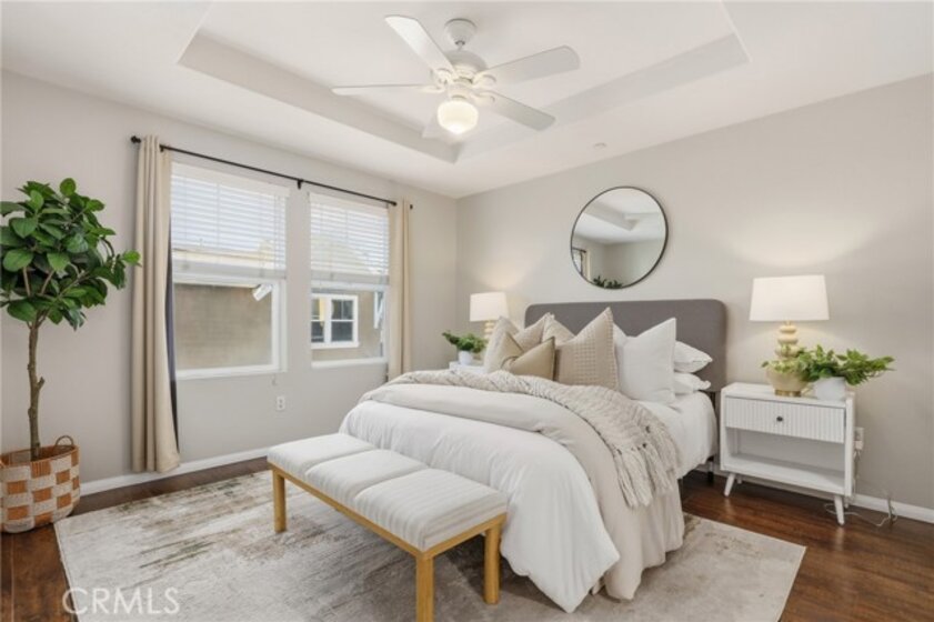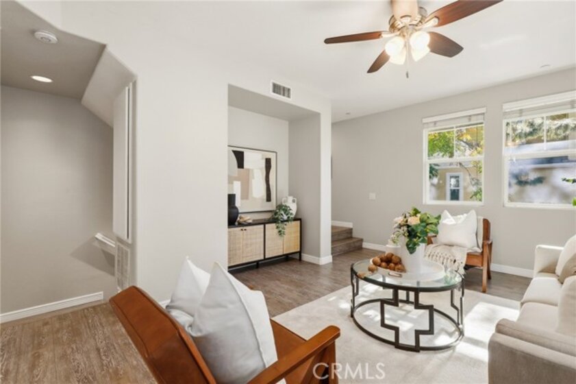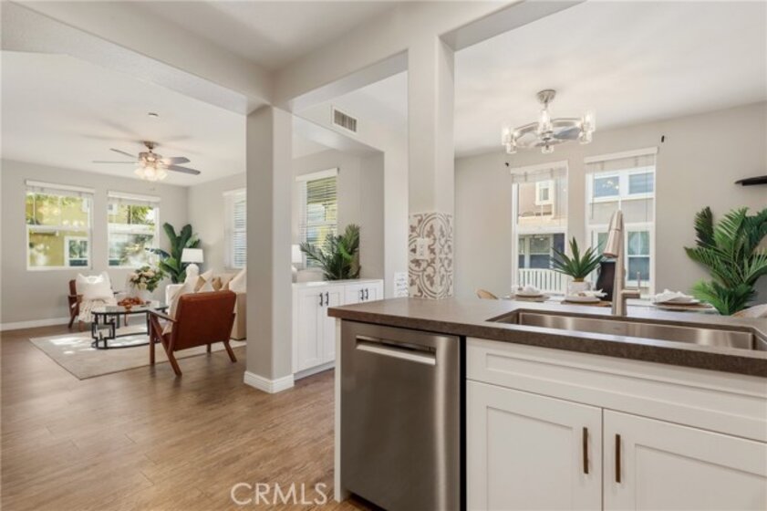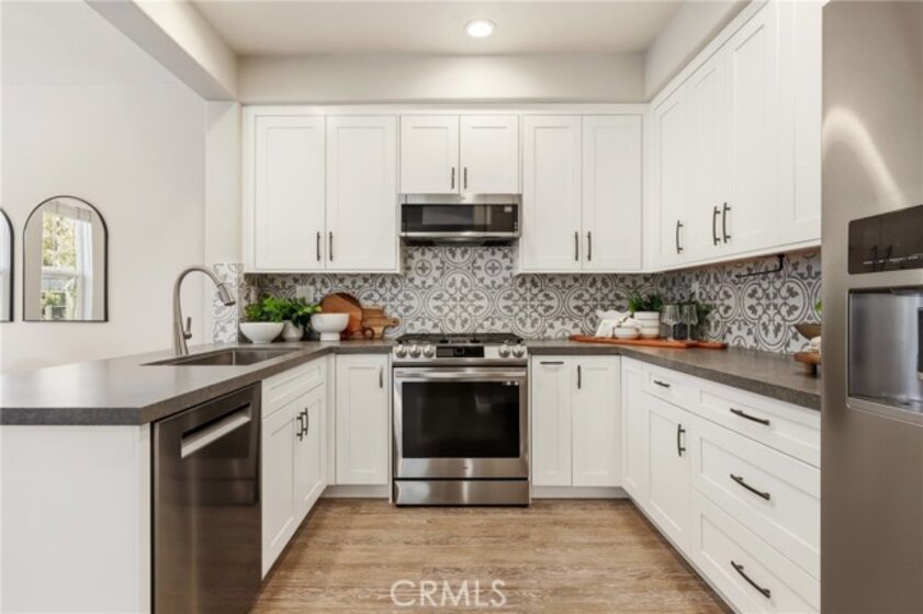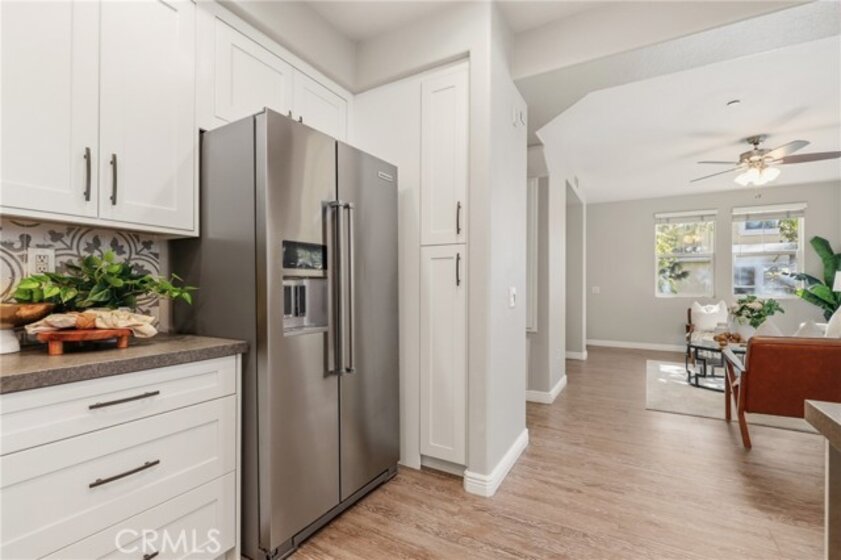 Updated 2 Bed, 2.5 Bath End-Unit Carriage Townhome in Ladera Ranch. Features include a remodeled kitchen with quartz countertops, updated cabinetry, and open-concept main level with luxury vinyl flooring. Bedrooms feature laminate flooring, each with its own bath, and convenient upstairs laundry. Enjoy a private balcony, plus attached 1-car garage and separate detached 1-car garage. Recently upgraded with new heat pump HVAC for energy-efficient comfort. Located steps from community amenities including pools, parks, trails, and clubhouses. Move-in ready and impeccably maintained.