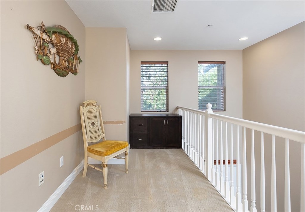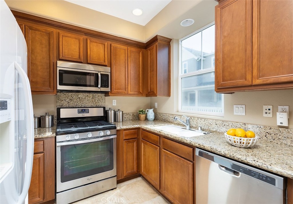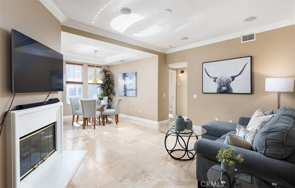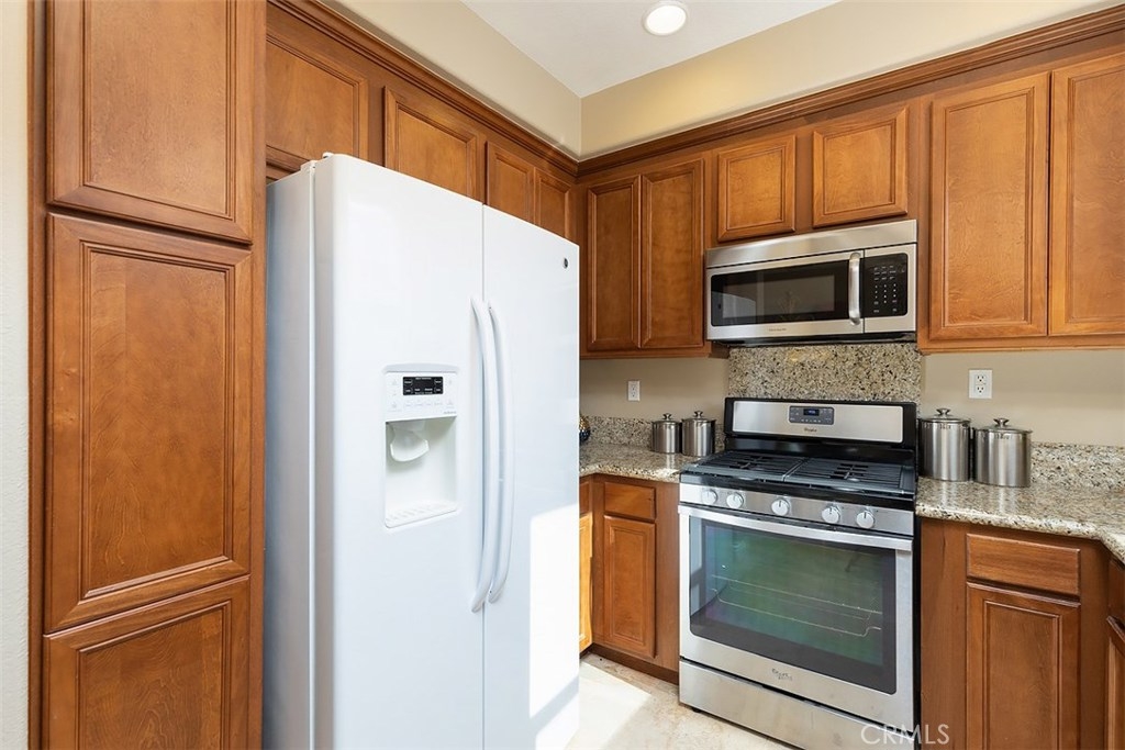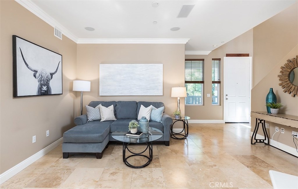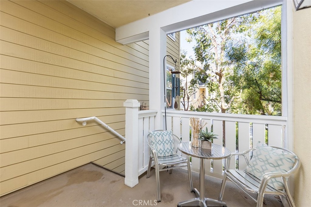Immaculate and ready to move in! Two bedroom, two bathroom Valmont condo with a loft area that's perfect for a home office or studio. Enjoy living in this light and bright home with an excellent courtyard location near many greenbelts and Ladera's Paseo walking and biking path. Built by DR Horton, this home features a built in wine rack, artistic ceilings with moldings and recessed lighting, 4 inch baseboards, travertine flooring throughout, and a brand new air conditioner condenser. The first level living space includes a spacious living and dining room area, a mainfloor bedroom, full bath, laundry area and ample storage. The beautiful kitchen features designer wood cabinetry, stainless appliances and granite countertops. Spacious living/family room area has a gas fireplace and wired theater style speakers. The private second level features a large master suite plus a loft area with a tech center. The master suite boasts a large walk in closet, plus a spacious en suite bath with dual vanities and a separate shower and tub. Enjoy the breeze and privacy relaxing on the porch/deck area. Also includes an oversized garage and assigned parking space. Valmont neighborhood is located in the highly desirable Terramor Village of Ladera Ranch, multiple pocket parks and neighborhoods pools. Walking distance to school, skate park and waterpark.