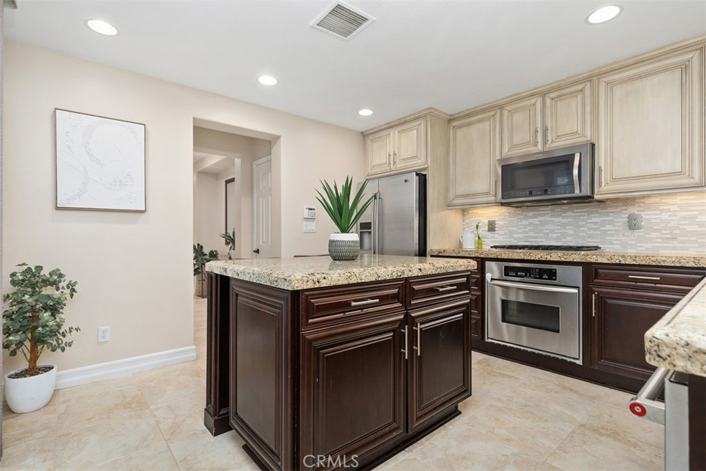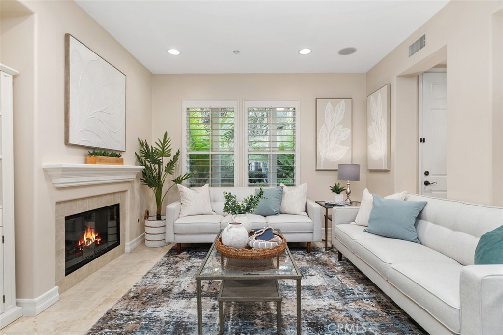 Exceptional value in the heart of Ladera Ranch—priced $100,000 below a recent comparable sale! This beautifully upgraded 3-bedroom + loft, 2.5-bath townhome is ideally located in the desirable Branches neighborhood of Terramor Village, just a short walk to top-rated schools, the Terramor Aquatic Park, playgrounds, skate parks, pools, trails, and community clubhouses. A private front yard with a covered porch leads into a light-filled, open-concept home offering approximately 2,071 square feet of living space, enhanced by plantation shutters and a cozy fireplace with a built-in media niche. The chef’s kitchen features quartz and granite countertops, shaker cabinetry, stainless steel appliances, a farmhouse sink, subway tile backsplash, center island, walk-in pantry, and reverse-osmosis system. It opens seamlessly to a private paver courtyard with a gas hookup—ideal for outdoor entertaining. On the second floor you’ll find three spacious bedrooms, a loft or desk niche, and a serene primary suite with vaulted ceilings, a walk-in closet, ensuite bath, and a private covered spacious balcony. A third-floor loft or bonus room provides flexible space for a home office, gym, or playroom. Additional highlights include an attached two-car garage facing a quiet cul-de-sac, a newer water heater, full repiping with PEX and meticulous upkeep with no deferred maintenance. Enjoy resort-style amenities, award-winning schools, nearby shopping and dining, and convenient access to Laguna Beach, Dana Point Harbor, and Mission Viejo Mall. Move-in ready and priced to sell—this opportunity won’t last!