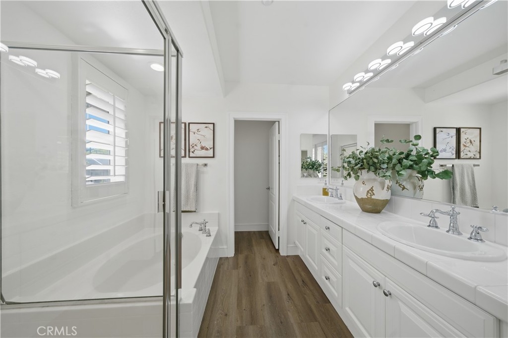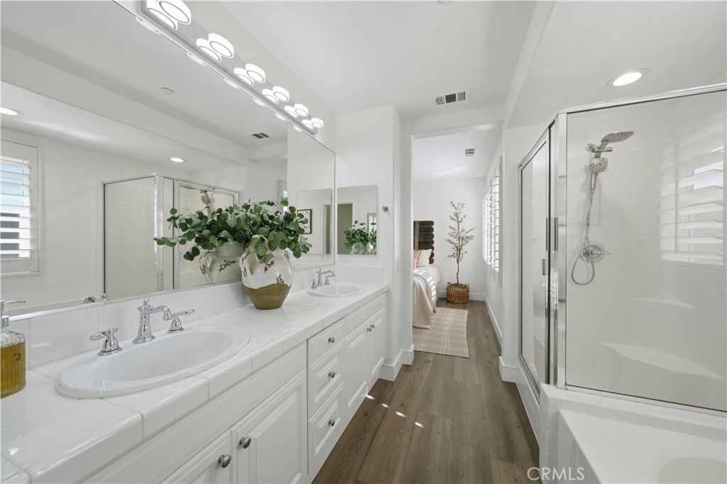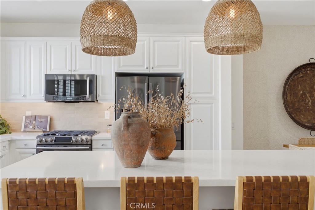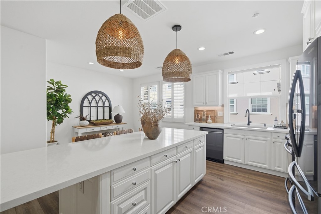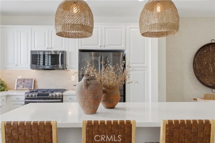 Welcome to this beautifully upgraded Briar Rose home in the heart of Ladera Ranch, offering 1,620 square feet of thoughtfully designed living space and a charming private front porch perfect for morning coffee or evening relaxation. Step inside to an inviting open-concept kitchen featuring a custom tile backsplash, generous cabinetry, and a spacious center island ideal for entertaining and everyday living. The kitchen opens effortlessly into the living space, highlighted by vaulted ceilings and a custom tile fireplace that adds warmth and character. This home offers two generously sized ensuite bedrooms, providing comfort and privacy, along with a beautifully upgraded powder room for guests. Upstairs, a large open landing offers flexible space that is perfect for a reading nook, home office, or play area. The two-car garage is fully finished with epoxy floors and includes a large storage area, making it ideal for organization, hobbies, and all your storage needs. Located in one of Ladera Ranch’s most desirable communities, residents enjoy exceptional amenities, including multiple pools and clubhouses, scenic walking trails, a skate park, BBQ areas, and abundant outdoor spaces for recreation and relaxation. This home combines style, functionality, and community living, an exceptional opportunity to enjoy the Ladera Ranch lifestyle at its finest!