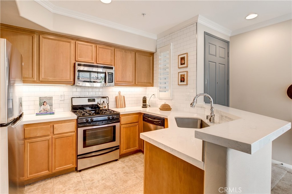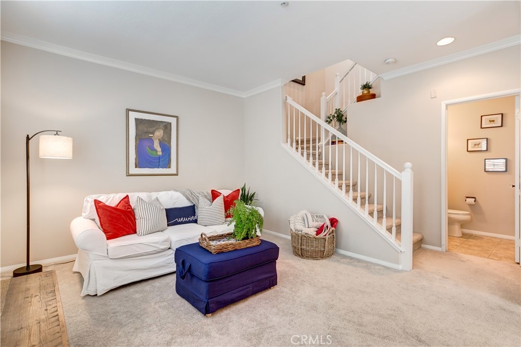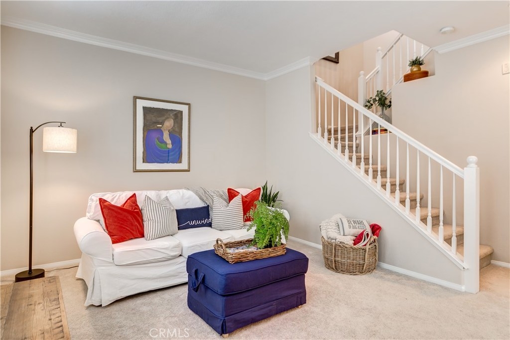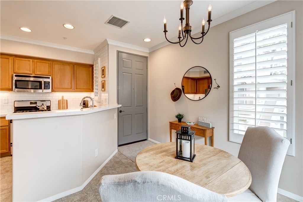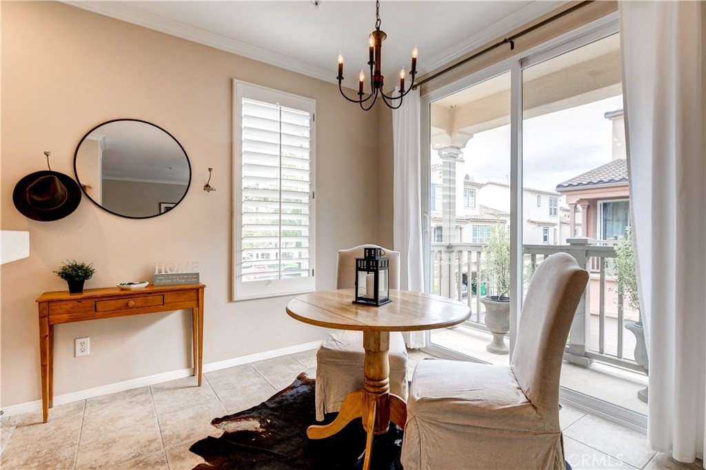 LOWEST PRICE IN LADERA RANCH!! A charming home with a dream location, this end unit in the desirable Sansovino neighborhood welcomes you. Walk into a freshly updated kitchen and nice dining area with a balcony for relaxing on warm summer nights and a living room with a cozy fireplace. Upstairs is a master bedroom and bath as well as a loft that can be either a nursery, bedroom, or home office. The washer and dryer are located upstairs, and everything has been professionally painted. You will have parking for 2 CARS: your private garage and your assigned parking spot. The garage has loads of storage shelves and cupboards. Enjoy living with no one above or below you. Conveniently around the corner are several restaurants, a Starbucks, bagel place, sandwich shop, groceries, drug store, banks, a gas station — everything you need, whether driving or walking. Just up the street is the dog park. And of course, you will also enjoy all Ladera Ranch has to offer: Great schools, library, parks, pools and spas, sport park, trails, and the many celebrations happening all year. Come see for yourself!