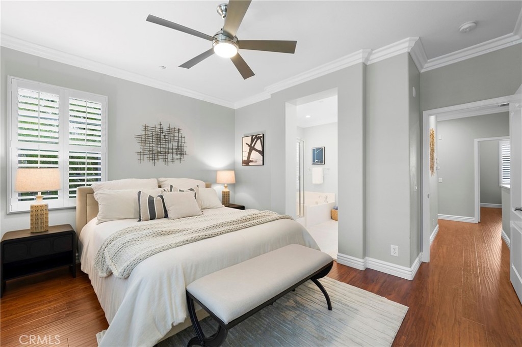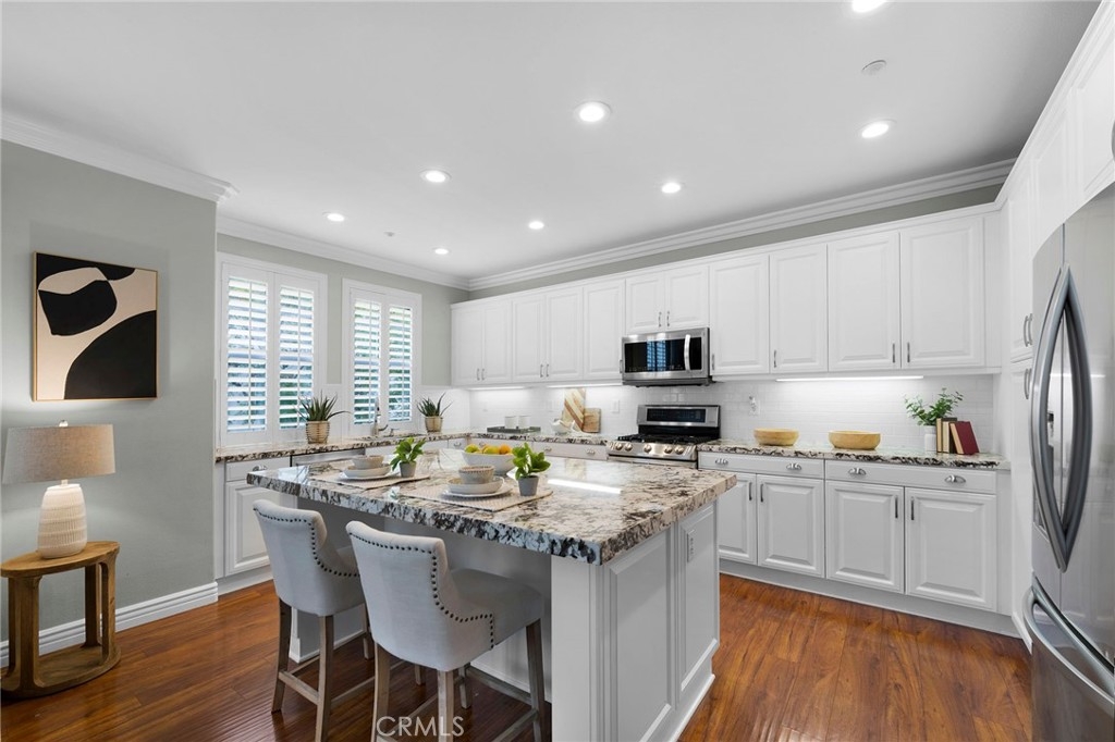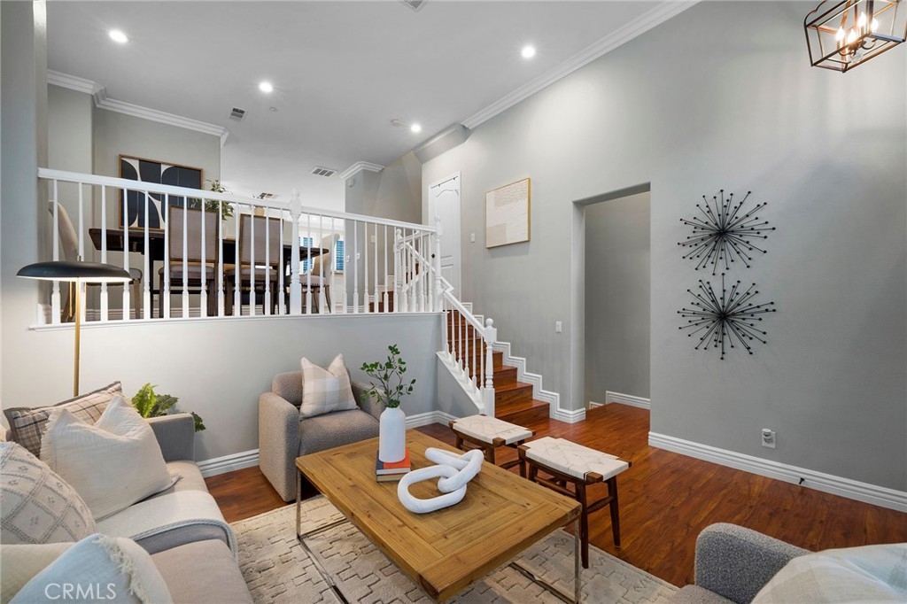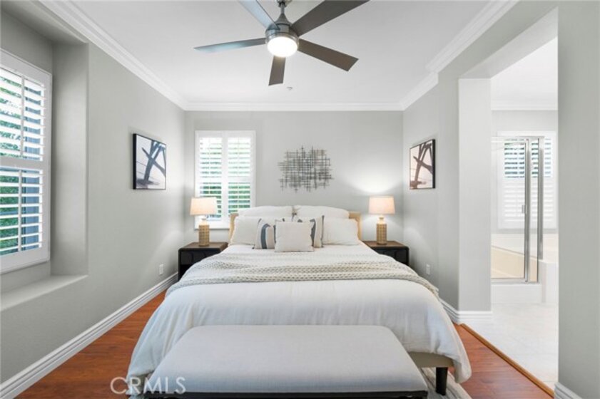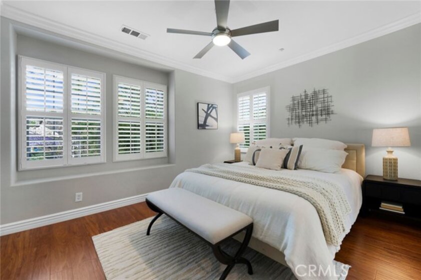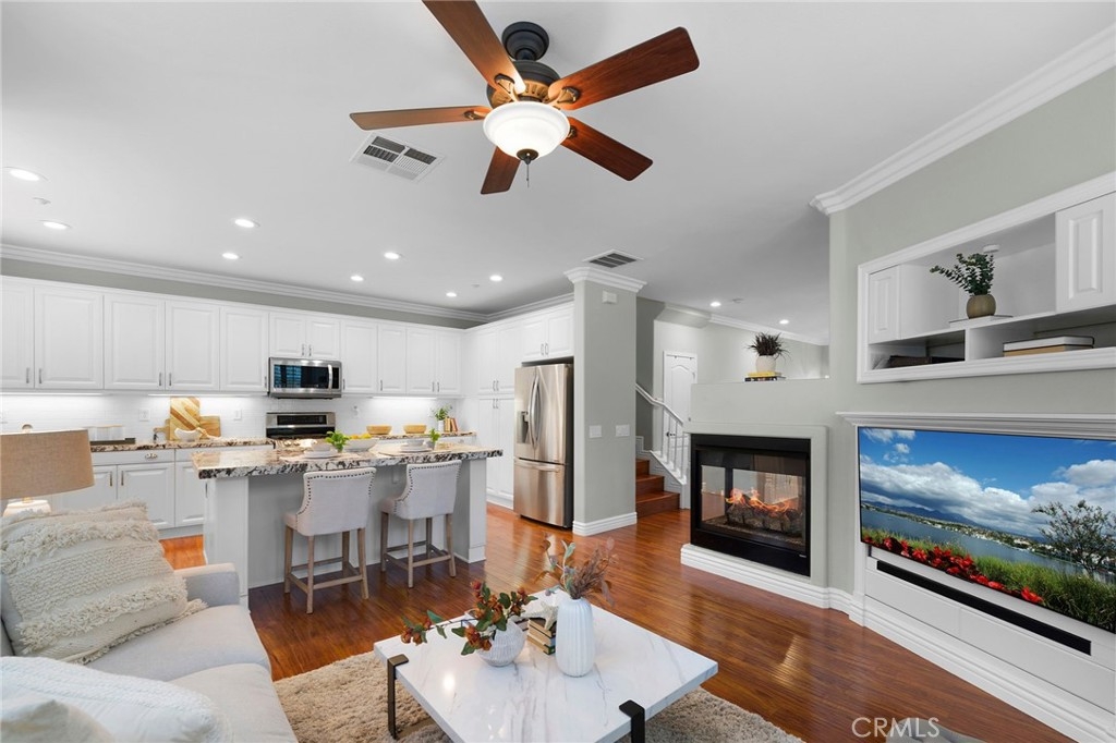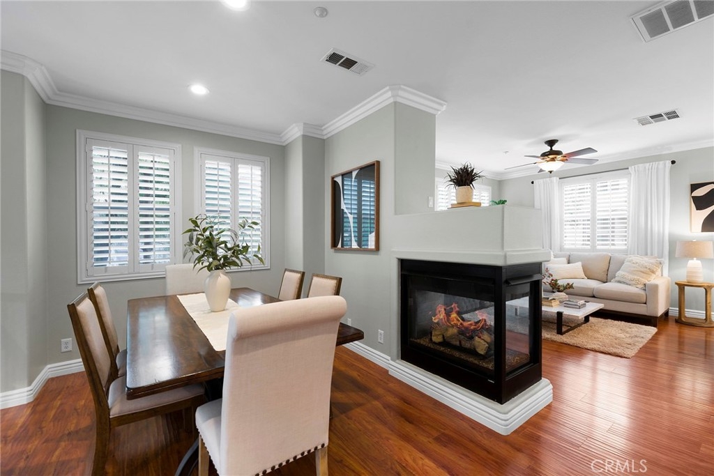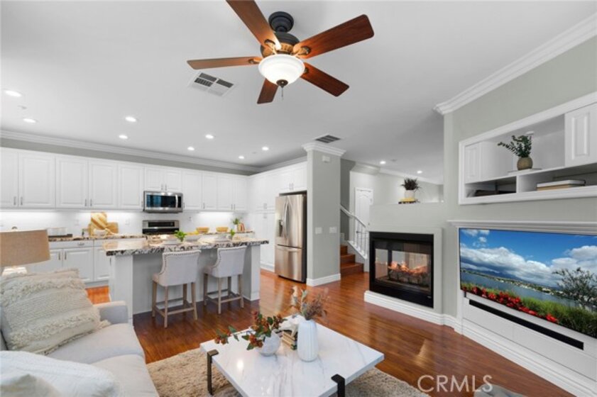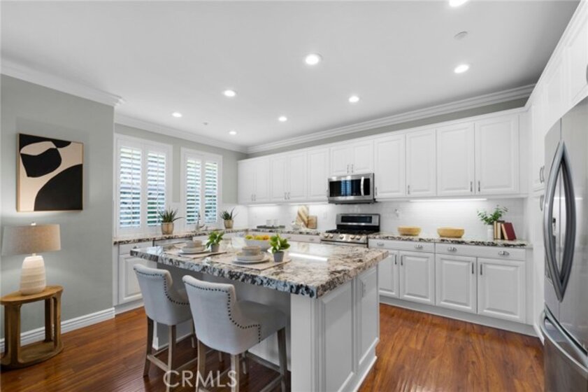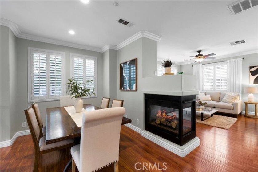 **HIGHLY DESIRABLE END UNIT and RARELY AVAILBLE PARK-FACING LOCATION** This timeless style home offers an abundance of natural light, park-facing, and 1,761 square feet of living space with 3 Bedrooms and 2.5 Baths. As one of the most sought-after floor plans and locations in Briar Rose, it has high ceilings with a separate formal living room and dining room featuring a peninsula fireplace adjacent to the family room and gourmet-style kitchen. The kitchen features an oversized island perfect for entertaining and is equipped with stainless steel appliances, generous cabinet space, subway tile backsplash and beautiful granite counter tops. The primary bedroom has a dual entry walk-in closet and primary bath with dual sinks with separate soaking tub and shower. Charming secondary bedrooms are both light and bright with generous closet space; full hallway bath adjacent. Dedicated upstairs laundry room with linen cabinet and folding counter offer ample storage space. The generously sized 2-car garage includes a bonus storage area. As you tour the home, you will also find many upgrades which include crown molding, tall baseboards, quartz counter tops in bathrooms, hardwood style and ceramic flooring, plantation shutters, recessed lighting, custom paint, tankless water heater and re-piped with Pex piping. Walking distance to Oso Grande Elementary. Enjoy the award-winning community amenities that Ladera Ranch has to offer!