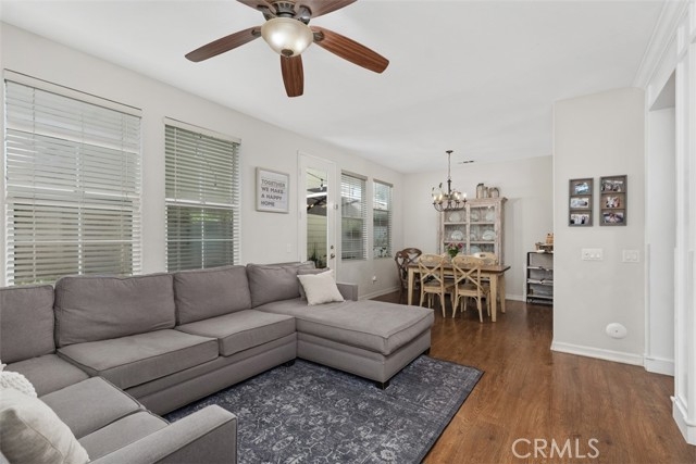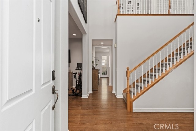 This tastefully updated, detached home is set on a private lot backing to a lush greenbelt in the sought-after Tarleton neighborhood. The open floor plan offers 3 bedrooms, 2.5 baths, and a flexible downstairs room ideal as a formal dining room, office, or playroom. The light-filled main level features gorgeous laminate wood flooring, a remodeled kitchen with stainless steel appliances, granite countertops, and a breakfast bar that opens to the dining area and family room with a cozy fireplace. Upstairs, a spacious loft provides the perfect study or lounge space. The primary suite is a true retreat with panoramic greenbelt views, an attached office nook, and a spa-inspired bathroom recently updated with a custom vanity topped with white counters, dual sinks, walk-in closet, soaking tub, and separate frameless glass shower. Enjoy outdoor living with a private oversized patio, plus a generous front deck ideal for entertaining or relaxing. Ladera Ranch residents enjoy resort-style amenities including water parks, multiple clubhouses, pools, tennis courts, scenic trails, and award-winning schools—all just steps from your door.