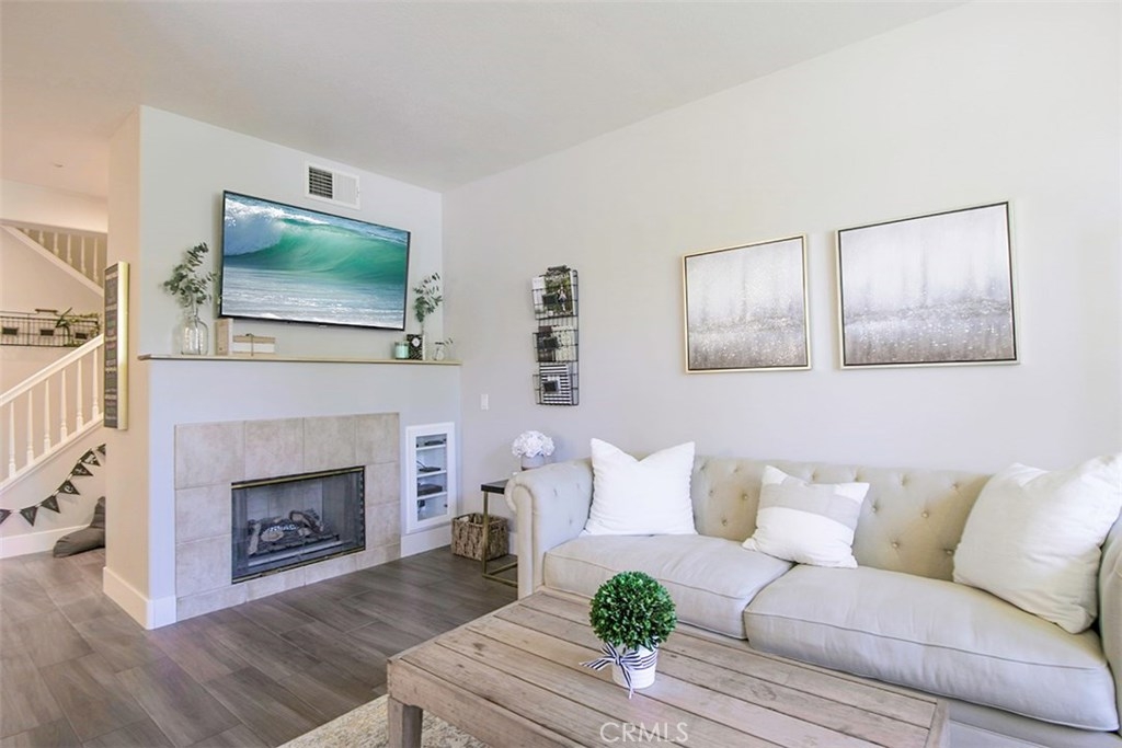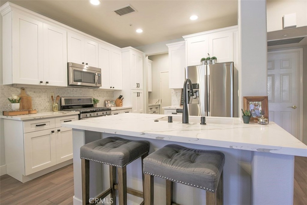 Back on Market! Shows like a model home. Turnkey and ready for your family! Located in the master-planned community of Ladera Ranch, this corner unit, farmhouse inspired, turnkey home offers modern design with warm and charming aesthetics. The residence has three bedrooms and two and one half baths, and has been renovated from top to bottom with fine attention to detail. The kitchen is open concept and complete with new shaker cabinets, stainless steel appliances, marble inspired quartz countertop and backsplash, and newly released quartz sink. Black hardware completes the look. In the spacious living room, there is a cozy fireplace, lots of bright windows, and a new mantle. Immediately next to the fireplace is an office nook perfect for helping you keep everything organized. All bathrooms in the home have been tastefully updated. Beautiful wood look tile throughout the first floor and upstairs bathrooms and new carpet on the second floor. The home is the largest floor plan for this model and unlike other models, it boasts its own covered porch. This home is within walking distance to trails, dining, grocery store and Starbucks. Ladera Ranch is known for its beautiful clubhouses, private water park and skate park, 18 community parks and many pocket parks, a dog park, 10 pools, shopping districts, its own Fourth of July fireworks show, top rated schools, and miles of hiking/biking trails that connect to Doheny Beach. This property will not last long!